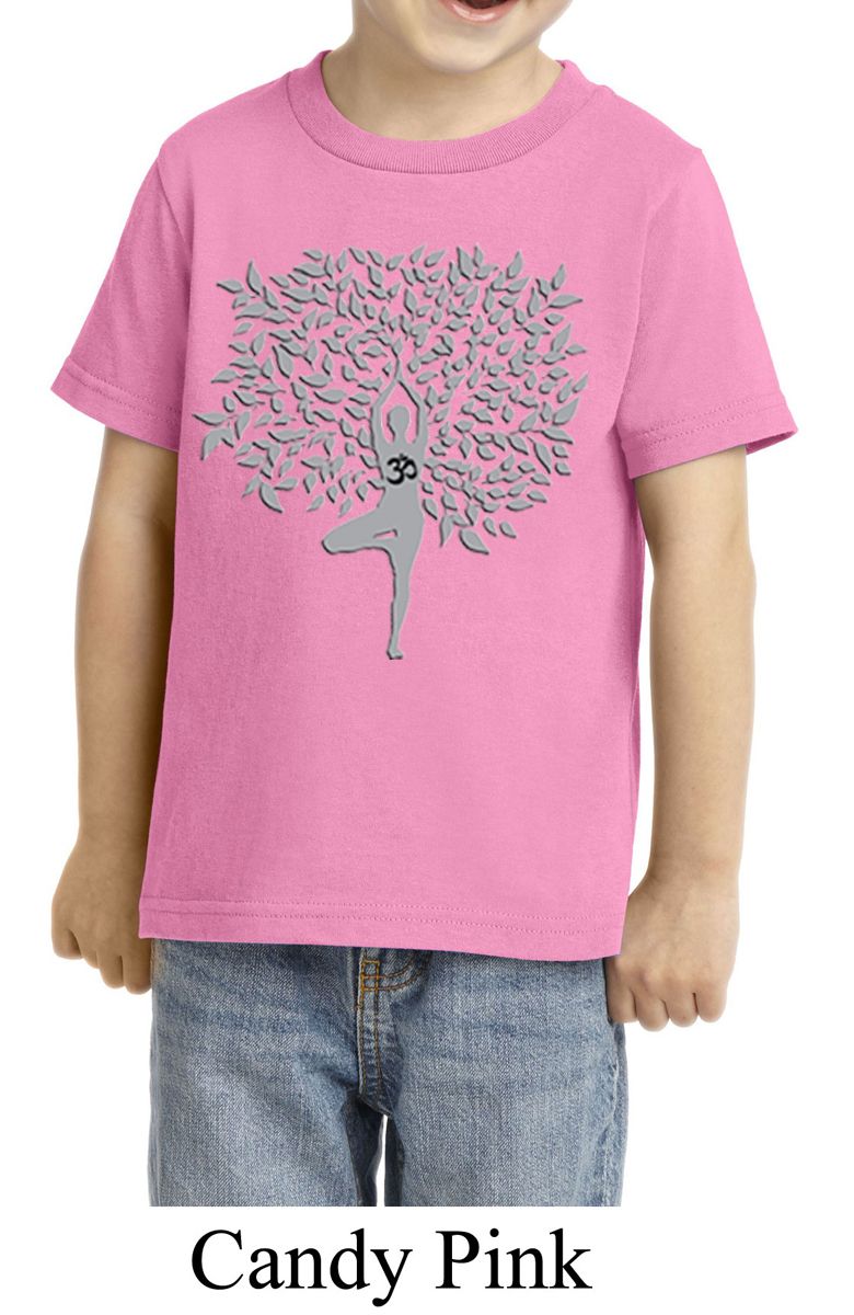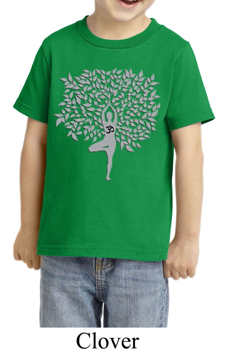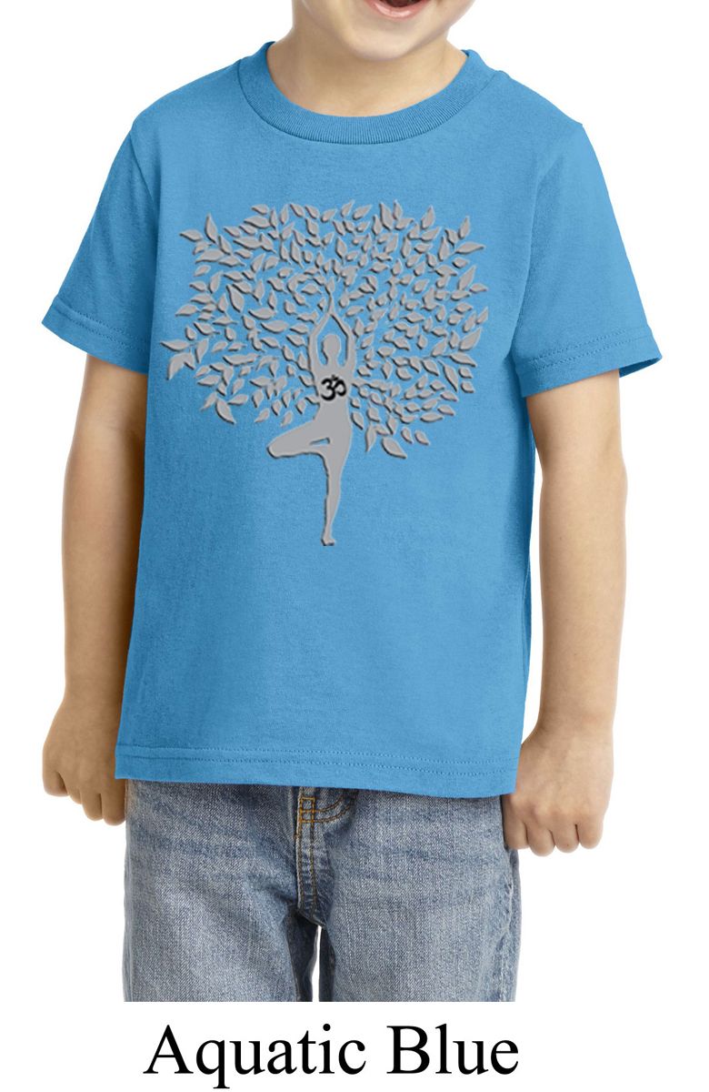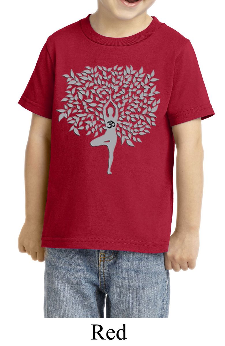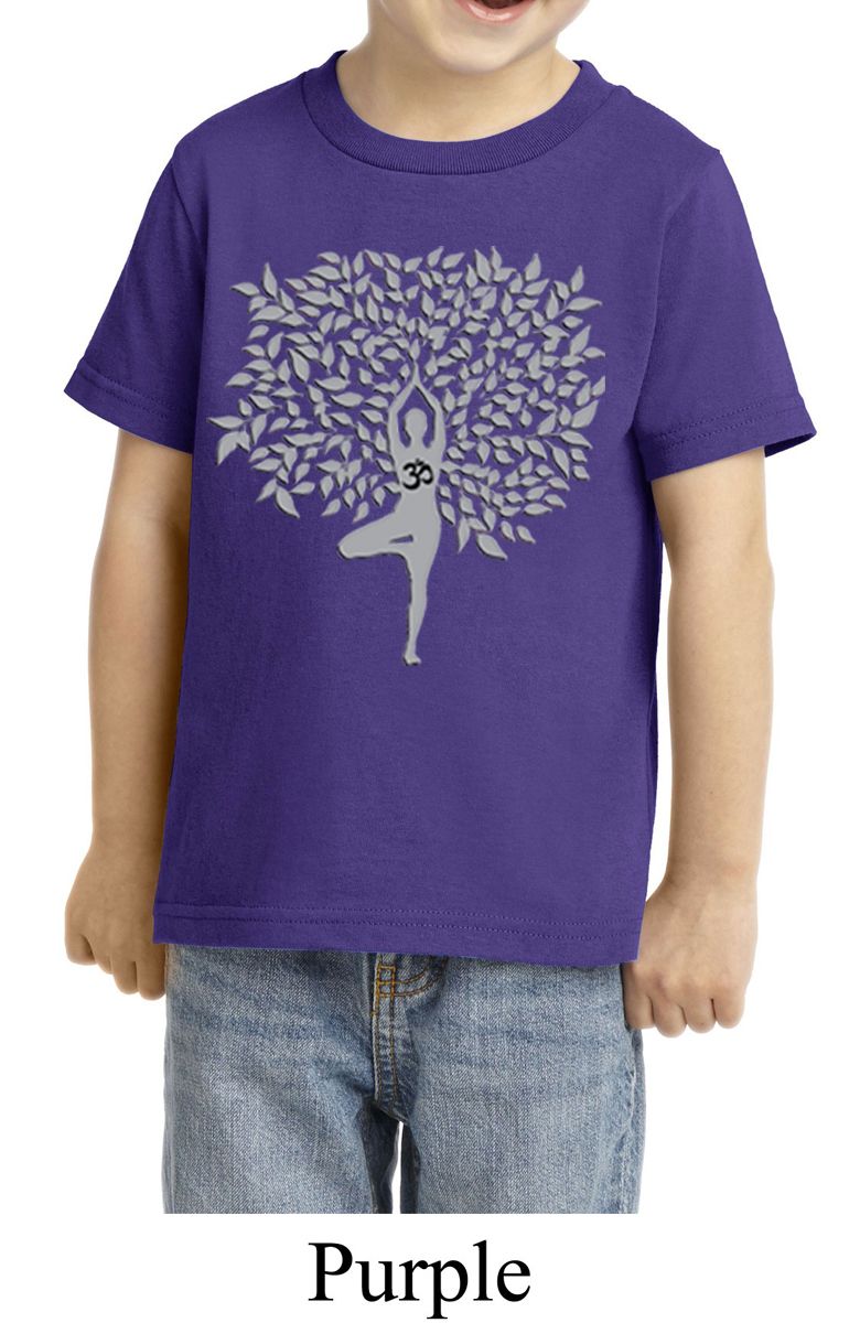 Kids Yoga Shirt Grey Tree Pose Toddler Tee T-Shirt 100% cotton Available in 2T, 3T, & 4T Also available in colors Aquatic Blue, Black, Candy Pink, Clover, Navy, Purple, Red, Royal, Sangria, and White  |