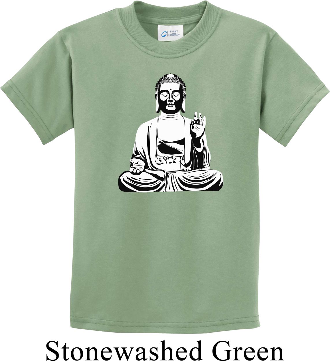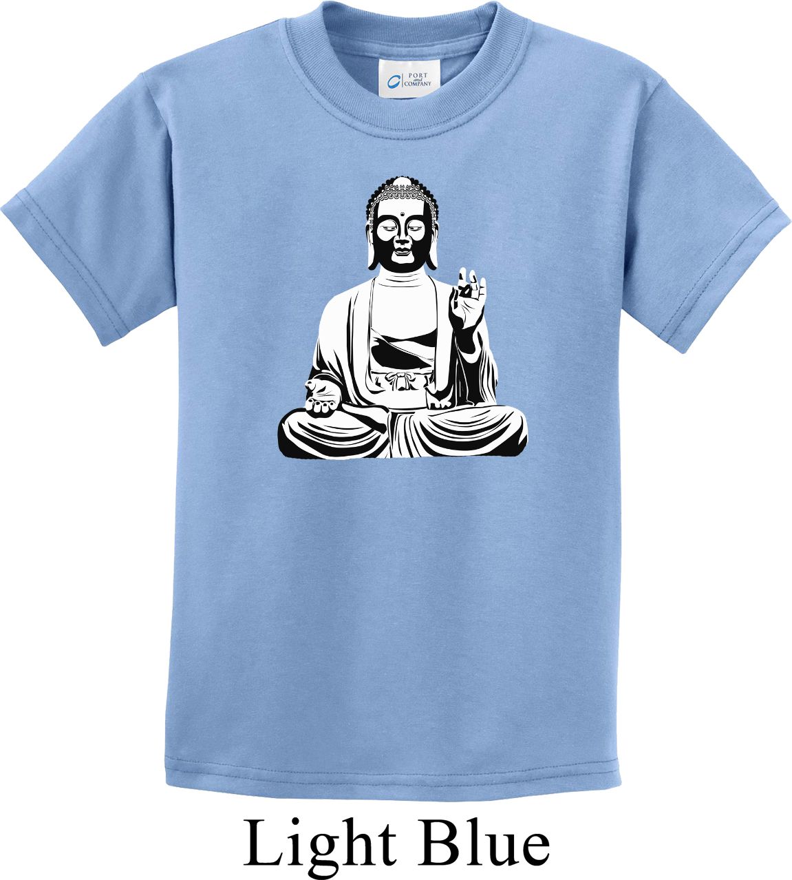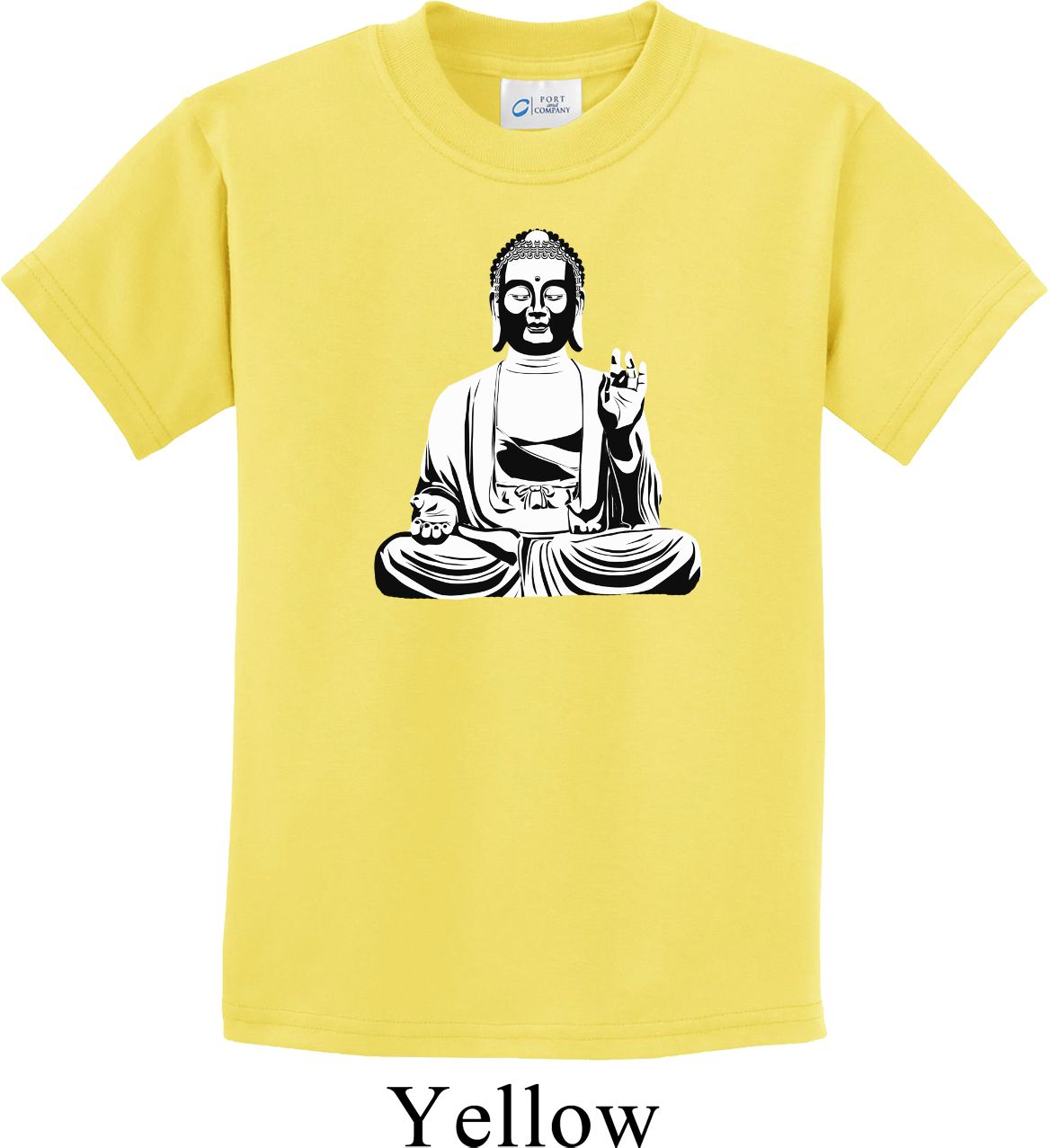 | | Kids Yoga Tee At Peace Buddha Youth T-shirtA youth t-shirt featuring Buddha illustrating the fundamental goal of Buddhism, Peace. Our kids tee is made of 100% cotton. (Ash and Athletic Heather are made with a blend of cotton/poly) Available in sizes Small through XL. Machine wash cold with like colors; dry low heat. ![]() |