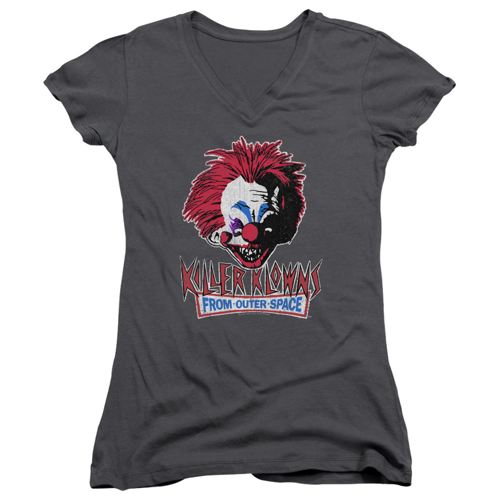 | | Killer Klowns From Outer Space Juniors V Neck Shirt Rough Clown Charcoal T-ShirtKiller Klowns From Outer Space Juniors V Neck Shirt Rough Clown Charcoal T-Shirt Bring back a camp classic from the 1980s when you wear this cool Killer Klowns from Outer Space Juniors V Neck t shirt! When teenagers Mike and Debbie see a comet crash outside their sleepy small town, they investigate and discover a pack of murderous aliens who look very much like circus clowns. They try to warn the local authorities, but everyone assumes their story is a prank. Meanwhile, the clowns set about harvesting and eating as many people as they can. It's not until they kidnap Debbie that Mike decides it's up to him to stop the clowns' bloody rampage. 100% Cotton, Pre-Shrunk And Machine Washable Officially Licensed Available in Small, Medium, Large, XL & 2XL ![]() |