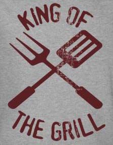 Show everyone who's King of the Grill with this cool 100% cotton tee. Great for the master of the big outdoor barbecue or even the George Forman Grill user!