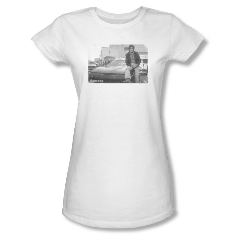 Knight Rider Shirt Juniors Black And White Photo White T-Shirt