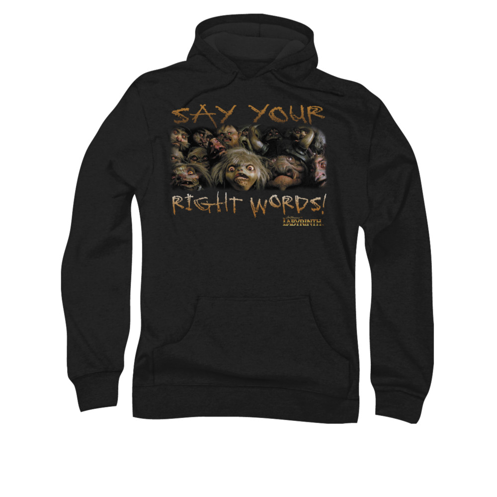 | | Labyrinth Hoodie Sweatshirt Say Your Right Words Black Adult Hoody Sweat ShirtLabyrinth Hoodie Sweatshirt Say Your Right Words Black Adult Hoody Sweat Shirt Officially Licensed Available in Small, Medium, Large, XL & 2XL Our Labyrinth shirts is a 1986 British-American musical adventure fantasy film perfect for any fans of this movie. ![]() |