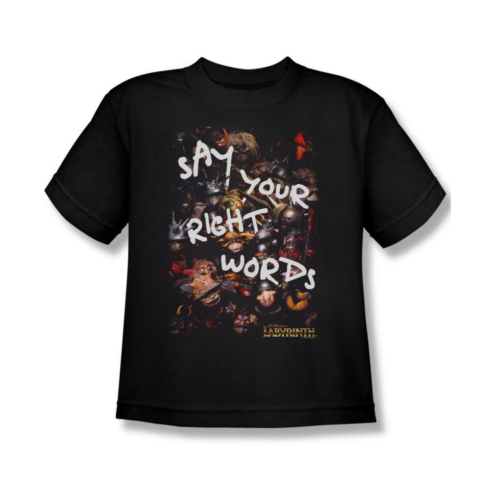 | | Labyrinth Shirt Kids Right Words Black Youth Tee T-ShirtLabyrinth Shirt Kids Right Words Black Youth Tee T-Shirt Officially Licensed Available in Small(6-8), Medium(10-12), Large(14-16), & XL(18-20), Also available in Toddler sizes: Small (4), Medium (5/6), & Large (7) Our Labyrinth shirts is a 1986 British-American musical adventure fantasy film perfect for any fans of this movie. ![]() |