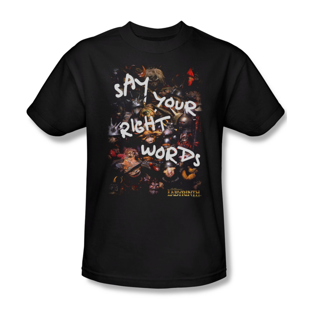 | | Labyrinth Shirt Right Words Adult Black Tee T-ShirtLabyrinth Shirt Right Words Adult Black Tee T-Shirt Officially Licensed Available in Small, Medium, Large, XL, 2XL & 3XL Our Labyrinth shirts is a 1986 British-American musical adventure fantasy film perfect for any fans of this movie. ![]() |