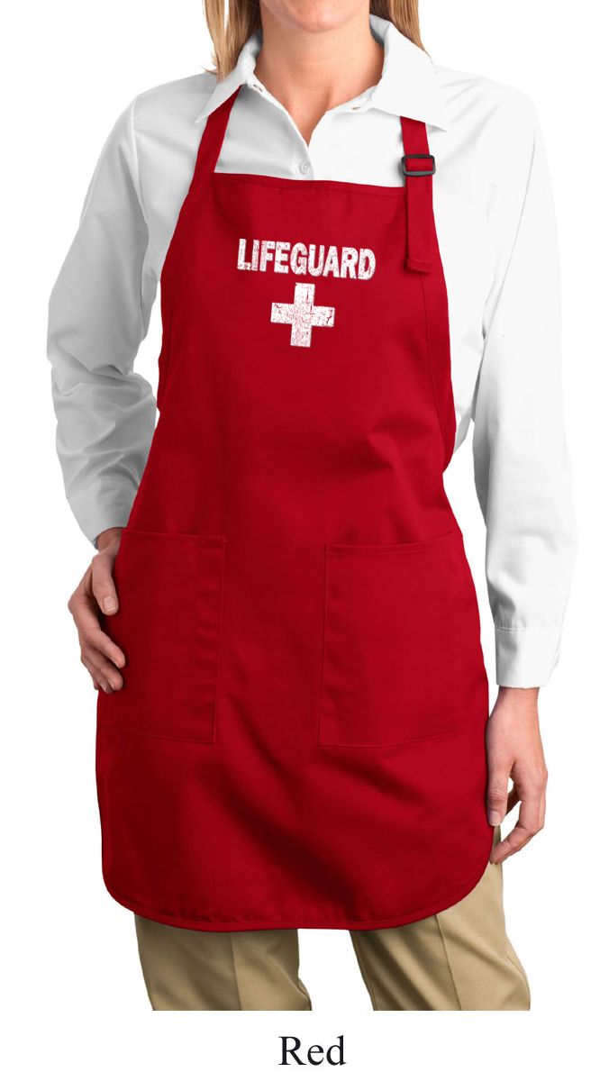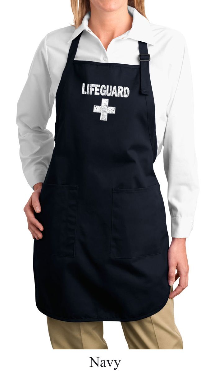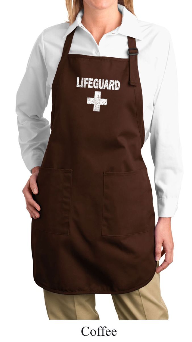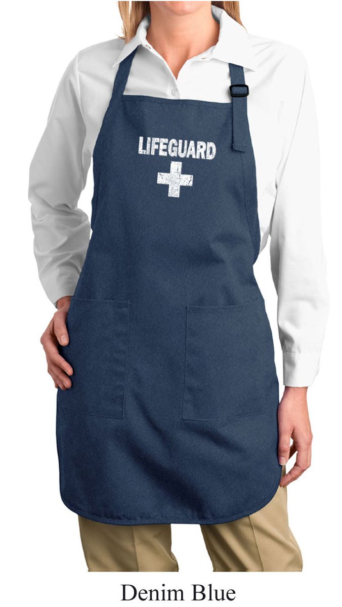 | | Ladies Apron Distressed Lifeguard Full Length Apron with PocketsLadies Apron Distressed Lifeguard Full Length Apron with Pockets A 100% cotton twill One Size Also available in colors Black, Coffee, Denim Blue, Hunter Green, Maroon, Navy, Red, Royal, and Stone |