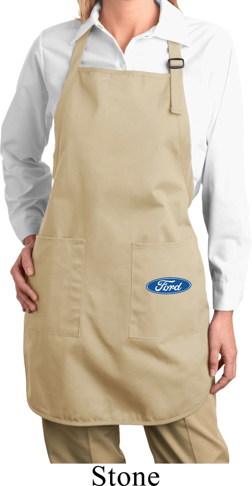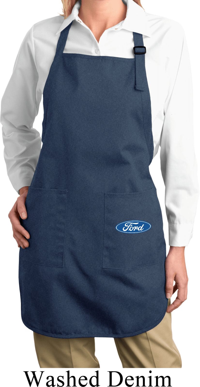 | | Ladies Apron Ford Oval Bottom Print Full Length Apron with PocketsLadies Apron Ford Oval Bottom Print Full Length Apron with Pockets A 100% cotton twill One Size Also available in colors Black, Coffee, Hunter Green, Maroon, Navy, Red, Royal, Stone, Washed Denim, and White |