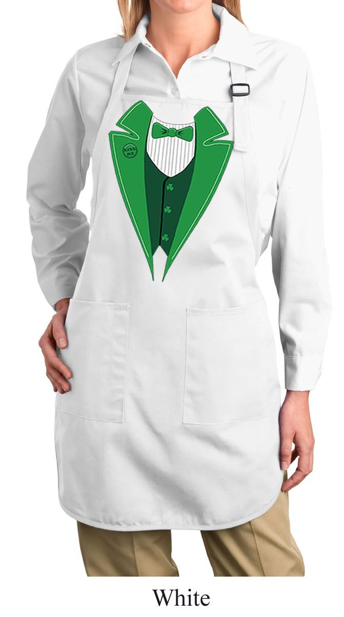 Ladies Apron Irish Tuxedo Full Length Apron with Pockets
