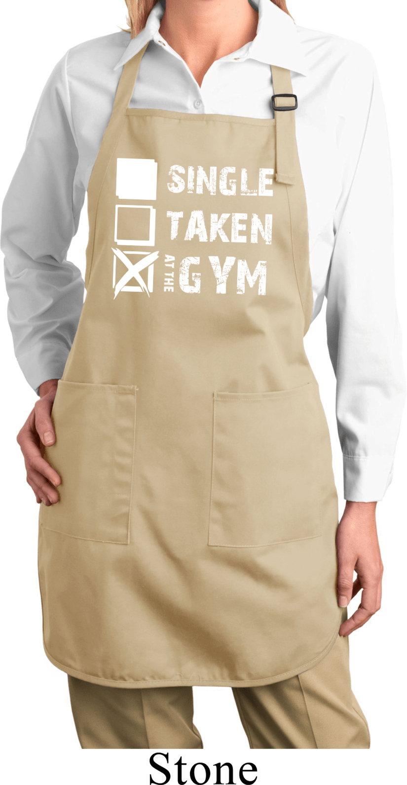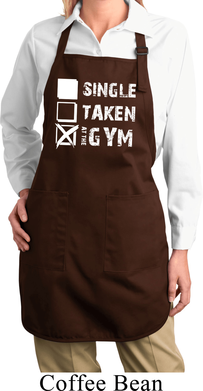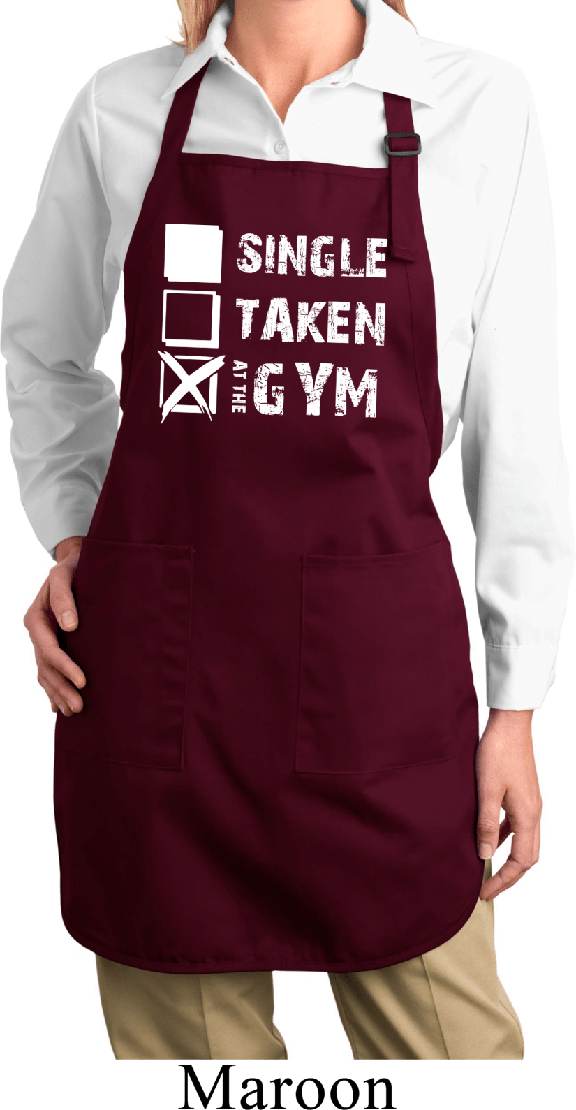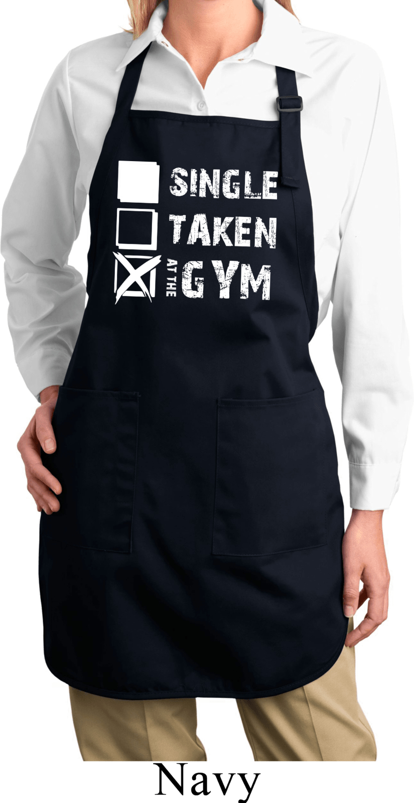| | Ladies Apron Single Taken At The Gym Full Length Apron with PocketsLadies Apron Single Taken At The Gym Full Length Apron with Pockets A 100% cotton twill One Size Also available in colors Black, Coffee, Hunter Green, Maroon, Navy, Red, Royal, Stone, and Washed Denim |