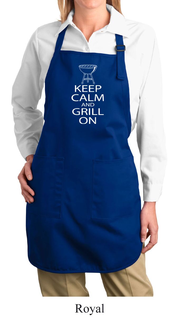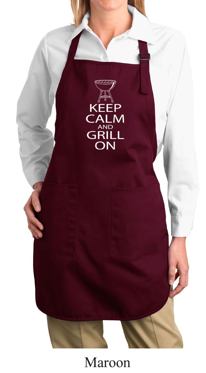 | | Ladies Apron White Keep Calm Grill On Full Length Apron with PocketsLadies Apron White Keep Calm Grill On Full Length Apron with Pockets A 100% cotton twill One Size Also available in colors Black, Coffee, Denim Blue, Hunter Green, Maroon, Navy, Red, and Royal |