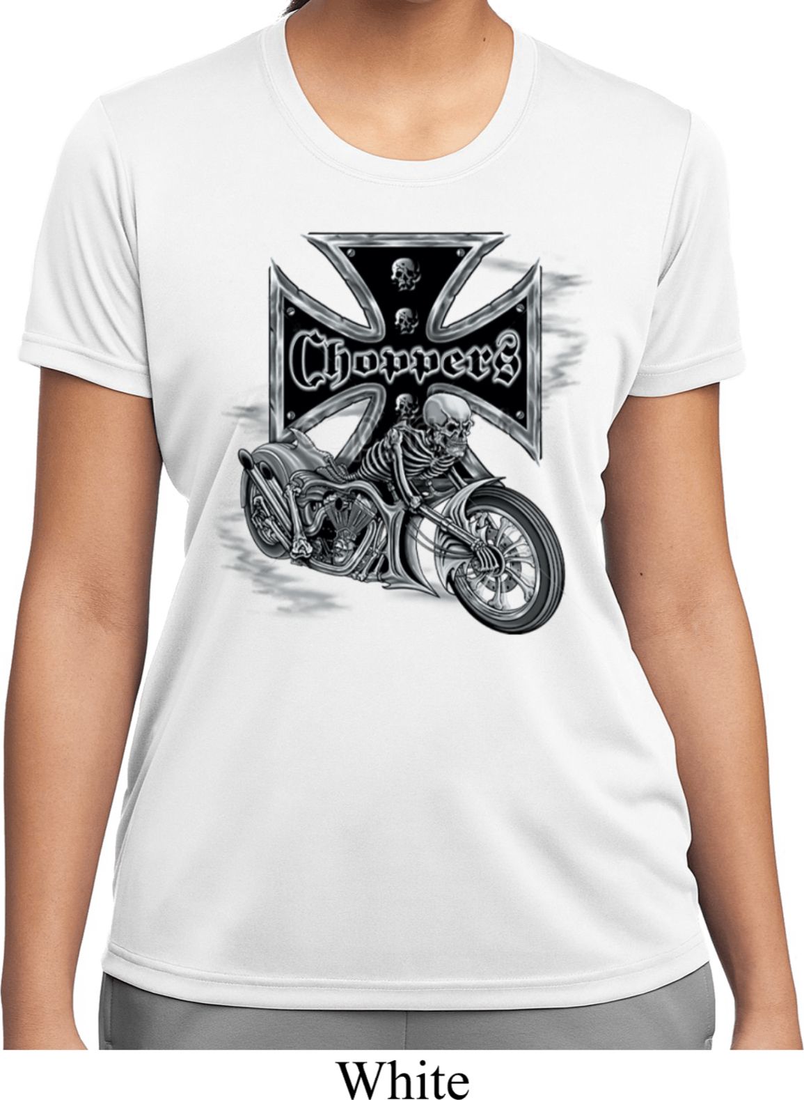| | Ladies Biker Shirt Chopper Cross Skeleton Moisture Wicking Tee T-ShirtLadies Biker Shirt Chopper Cross Skeleton Moisture Wicking Tee T-Shirt 100% polyester Available in Ladies Small, Ladies Medium, Ladies Large, Ladies XL, Ladies 2XL & Ladies 3XL Also available in colors Black, Cardinal, Carolina Blue, Deep Orange, Forest, Gold, Kelly, Light Pink, Lime, Maroon, Navy, Purple, Red, Royal, Silver, Texas Orange, Tropic Blue, and White |