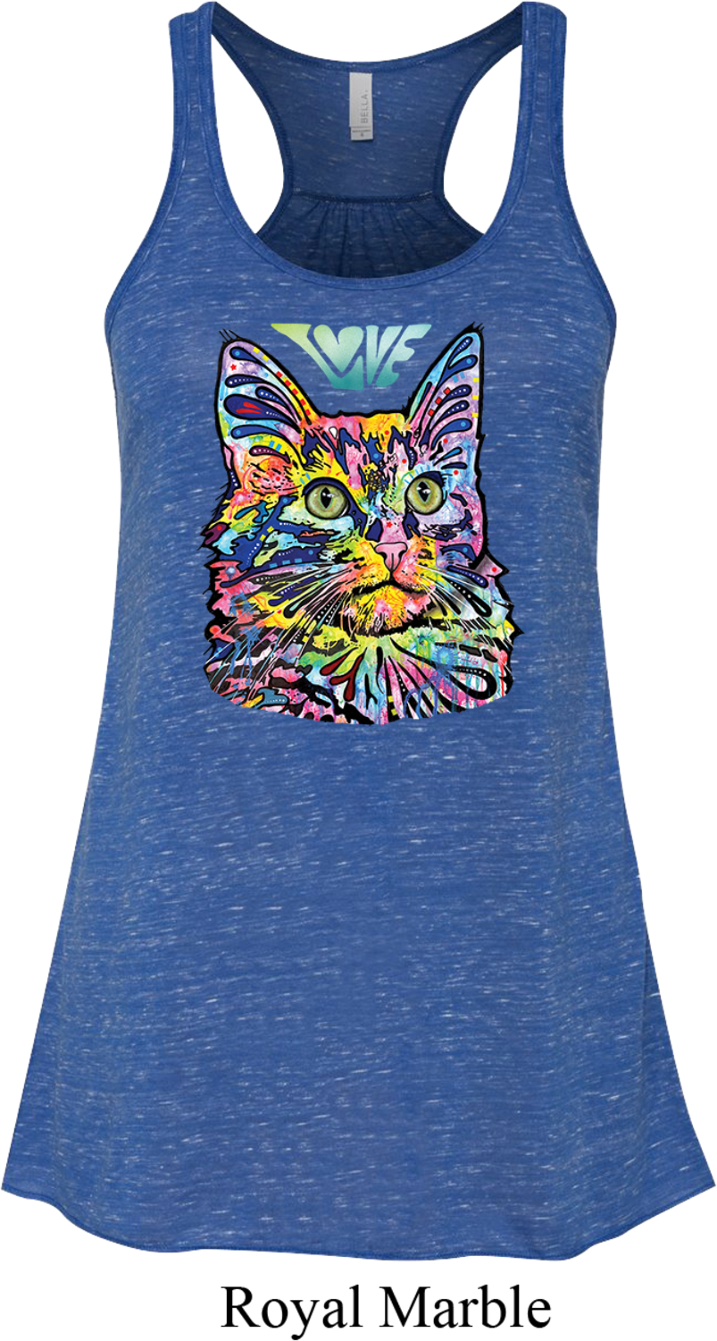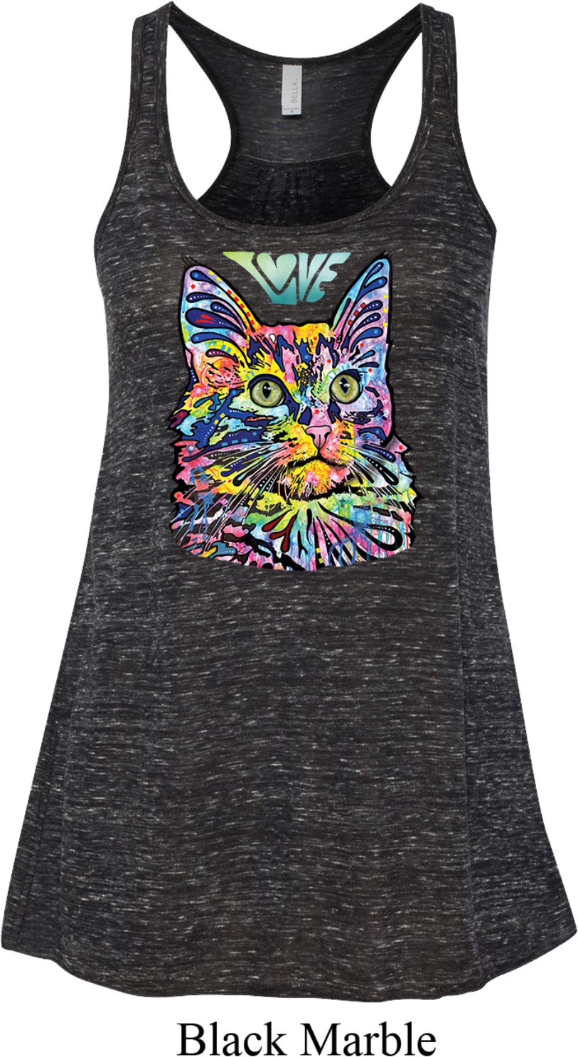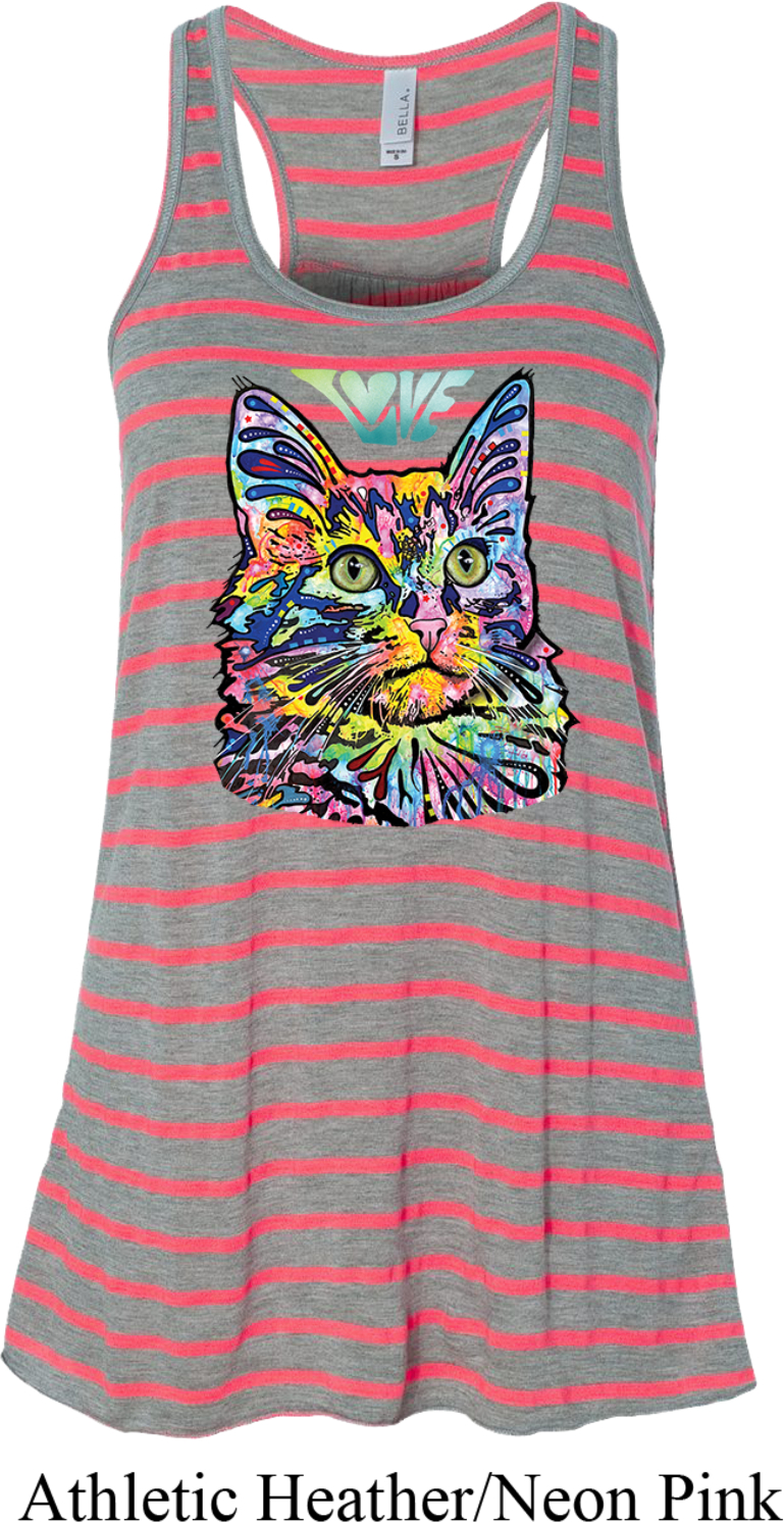| | Ladies Cat Tank Top Love Cat Flowy RacerbackA ladies flowy racerback featuring a colorful cat portrait with Love written above. Our ladies tank top makes a perfect gift for cat lovers! Solid colors are made of poly/rayon; Marble colors are made of poly/cotton; Stripe colors are made of rayon/poly. Available in sizes Small through 2XL. Machine wash cold with like colors; dry low heat. ![]() |