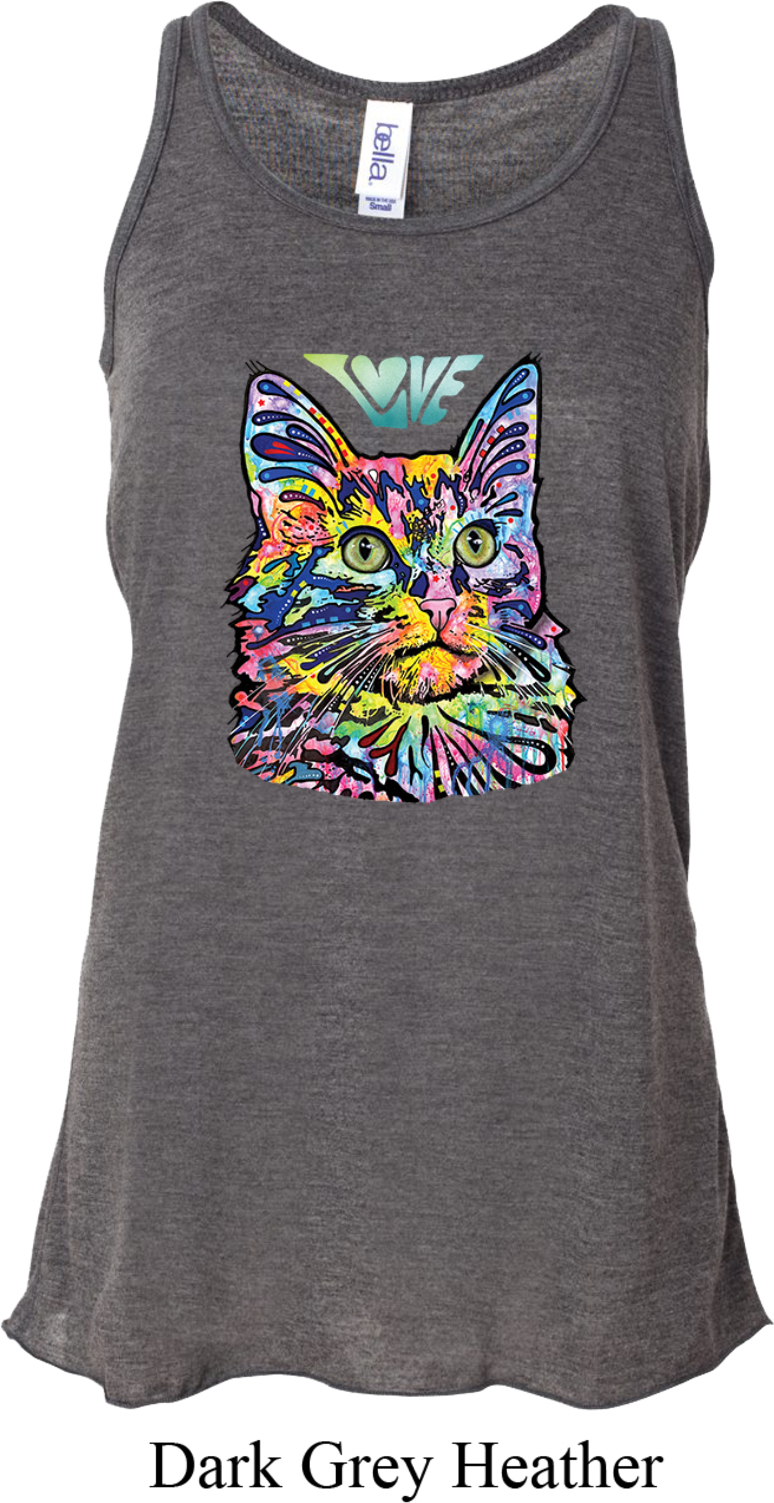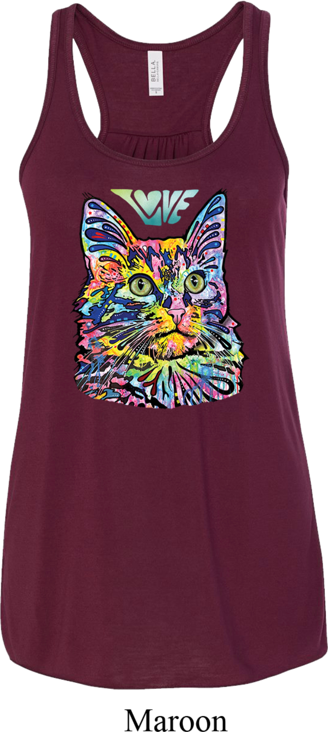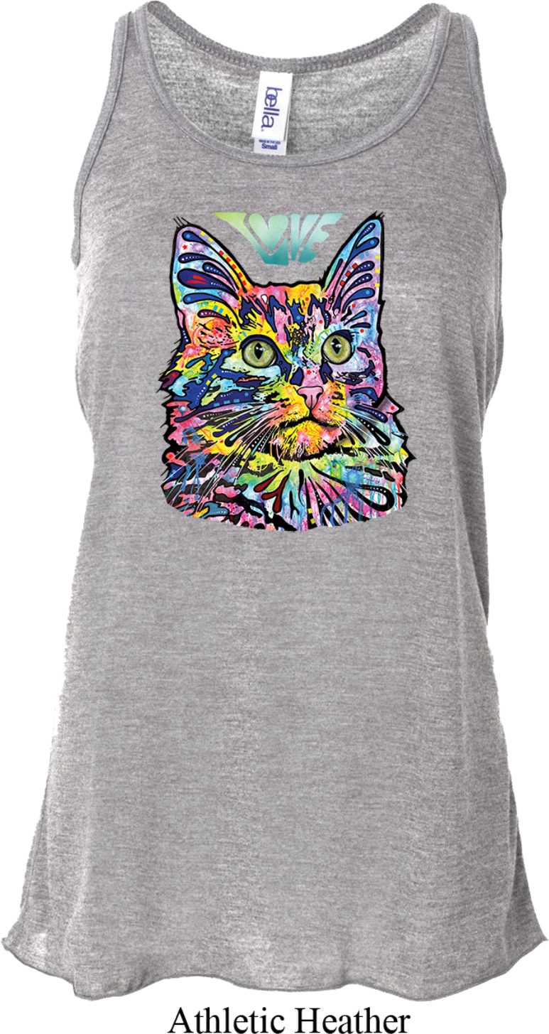 | | Ladies Cat Tank Top Love Cat Flowy RacerbackA ladies flowy racerback featuring a colorful cat portrait with Love written above. Our ladies tank top makes a perfect gift for cat lovers! Solid colors are made of poly/rayon; Marble colors are made of poly/cotton; Stripe colors are made of rayon/poly. Available in sizes Small through 2XL. Machine wash cold with like colors; dry low heat. ![]() |