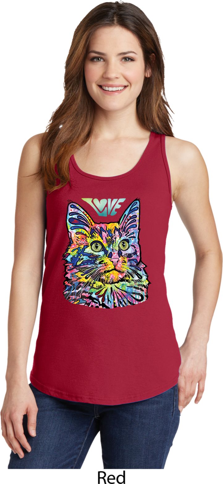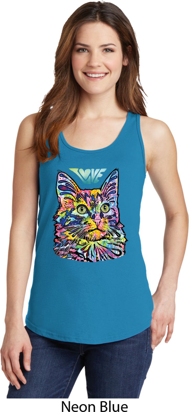 | | Ladies Cat Tank Top Love Cat TanktopA relaxed fit ladies tanktop featuring a colorful cat portrait with Love written above. Our ladies tank top makes a perfect gift for cat lovers! Made of 100% cotton. (Neons are Heathers are made with a blend of cotton/poly) Available in sizes Small through 4XL. Machine wash cold with like colors; dry low heat. ![]() |