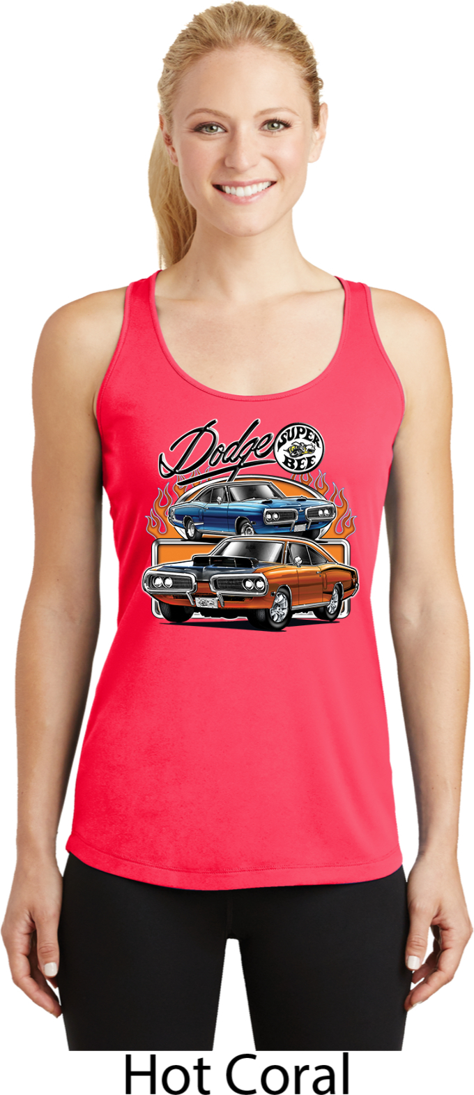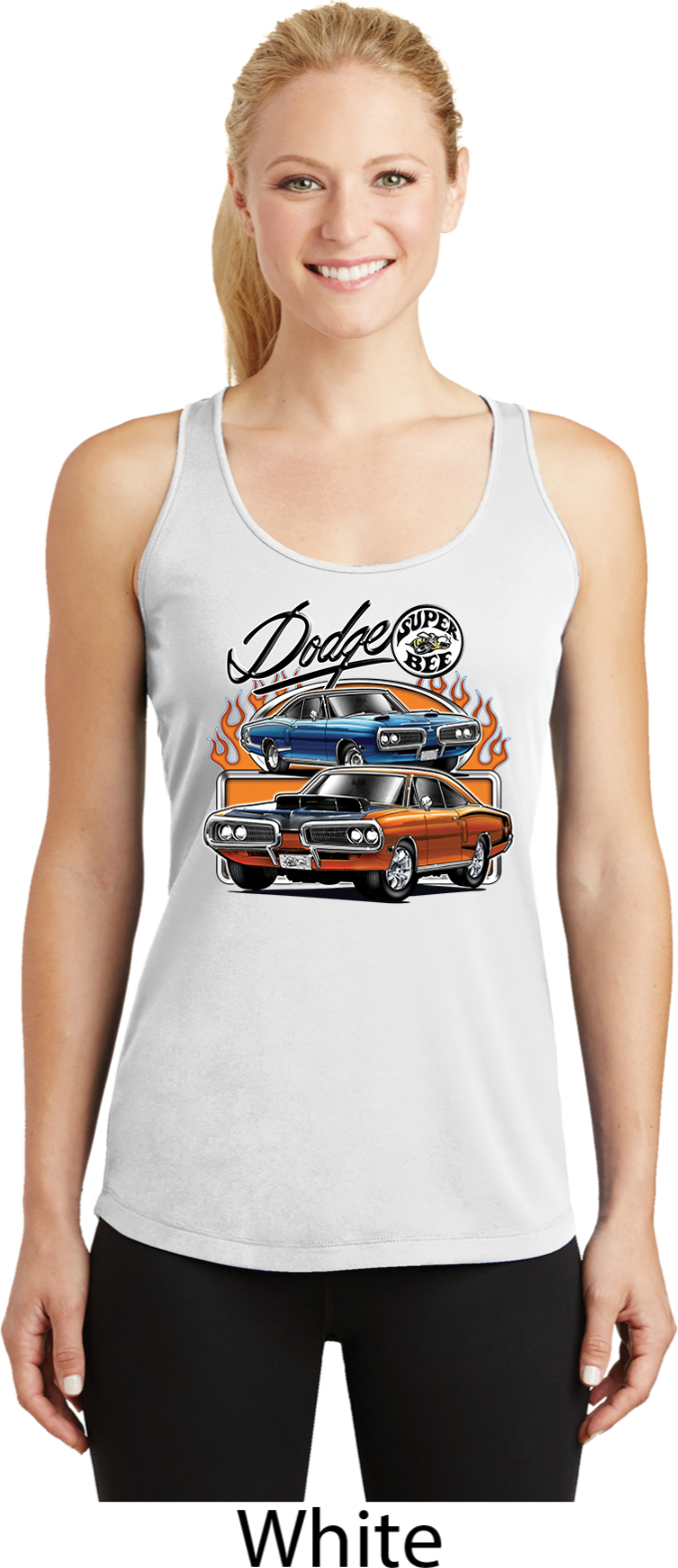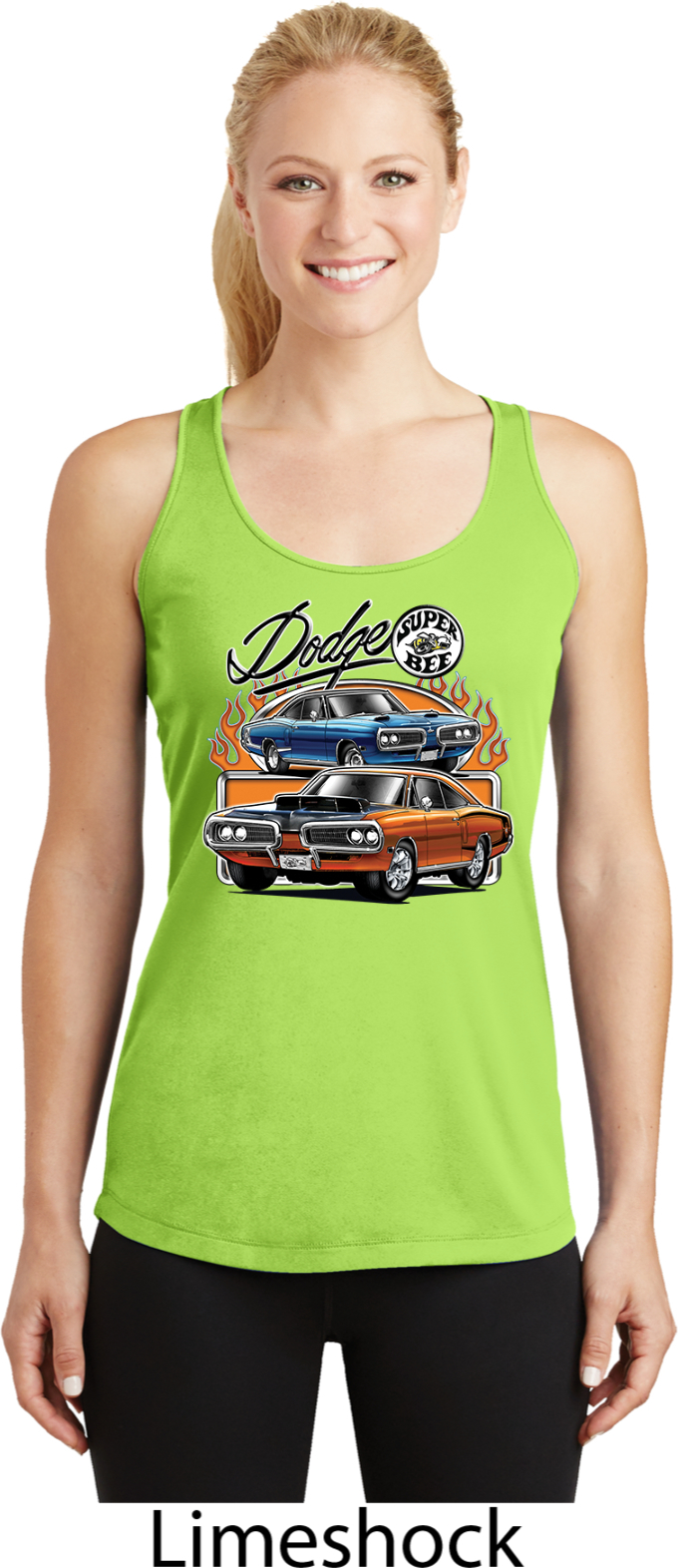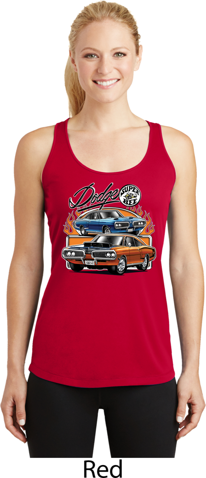 | | Ladies Dodge Blue and Orange Super Bee Dry Wicking RacerbackA ladies dry wicking racerback featuring a blue and orange Dodge Super Bee. Our ladies tanktop is made of 100% polyester. Available in sizes Small through 4XL. Machine wash cold with like colors; dry low heat. ![]() |