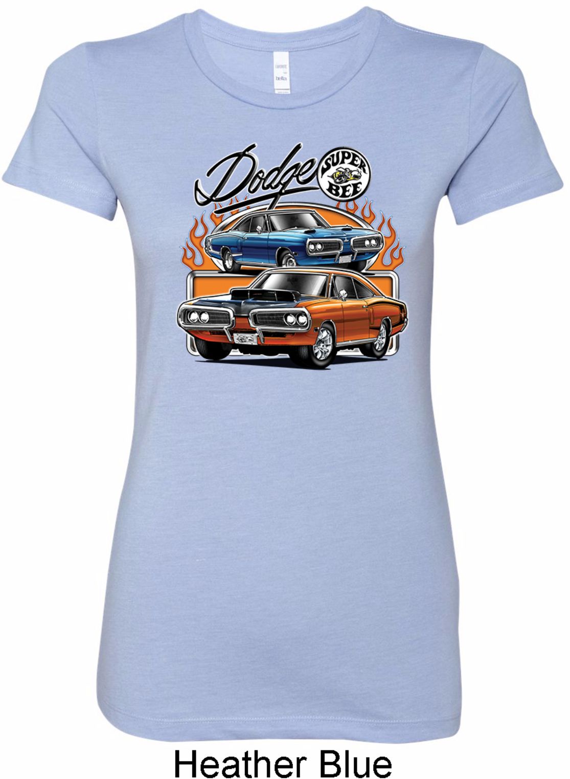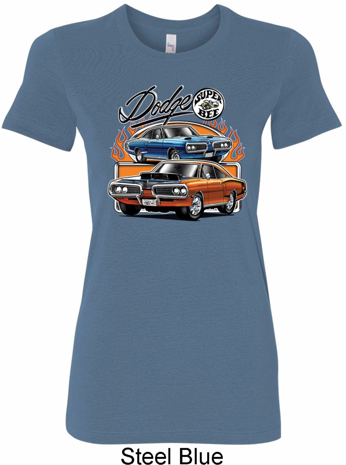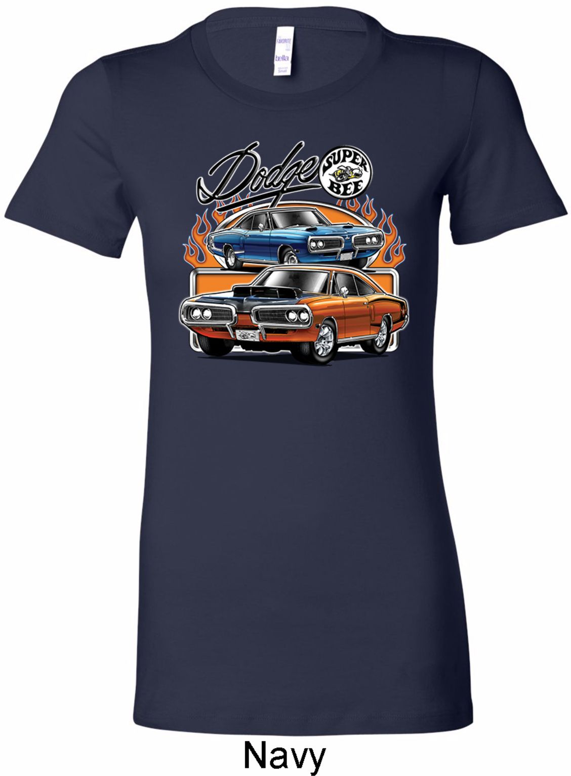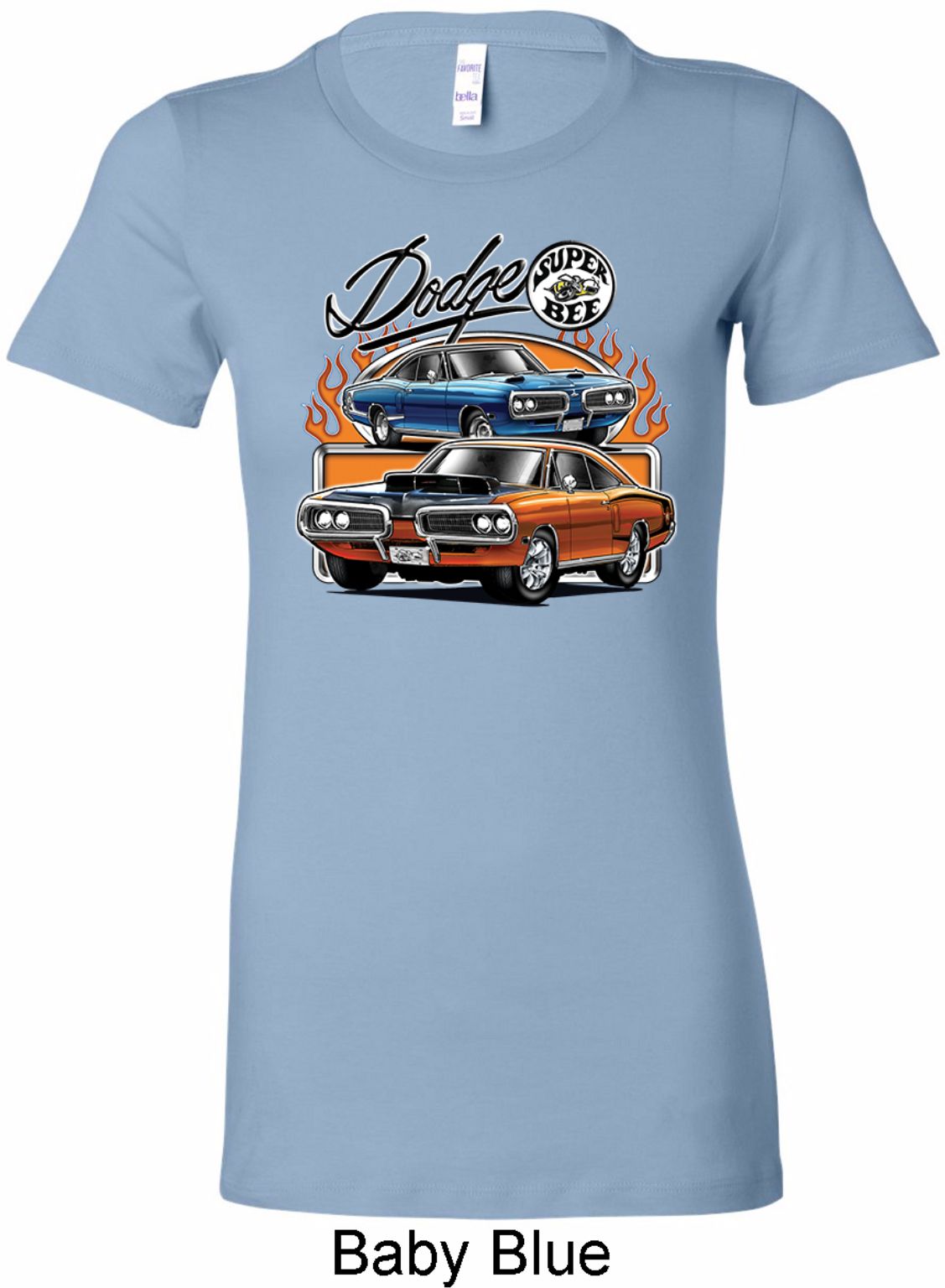 | | Ladies Dodge Blue and Orange Super Bee Longer Length ShirtA fitted ladies longer length shirt featuring a blue and orange Dodge Super Bee. Our ladies shirt is made of 100% cotton. (Heather colors are made with a blend of cotton/poly) Available in sizes Small through 2XL. Machine wash cold with like colors; dry low heat. ![]() |