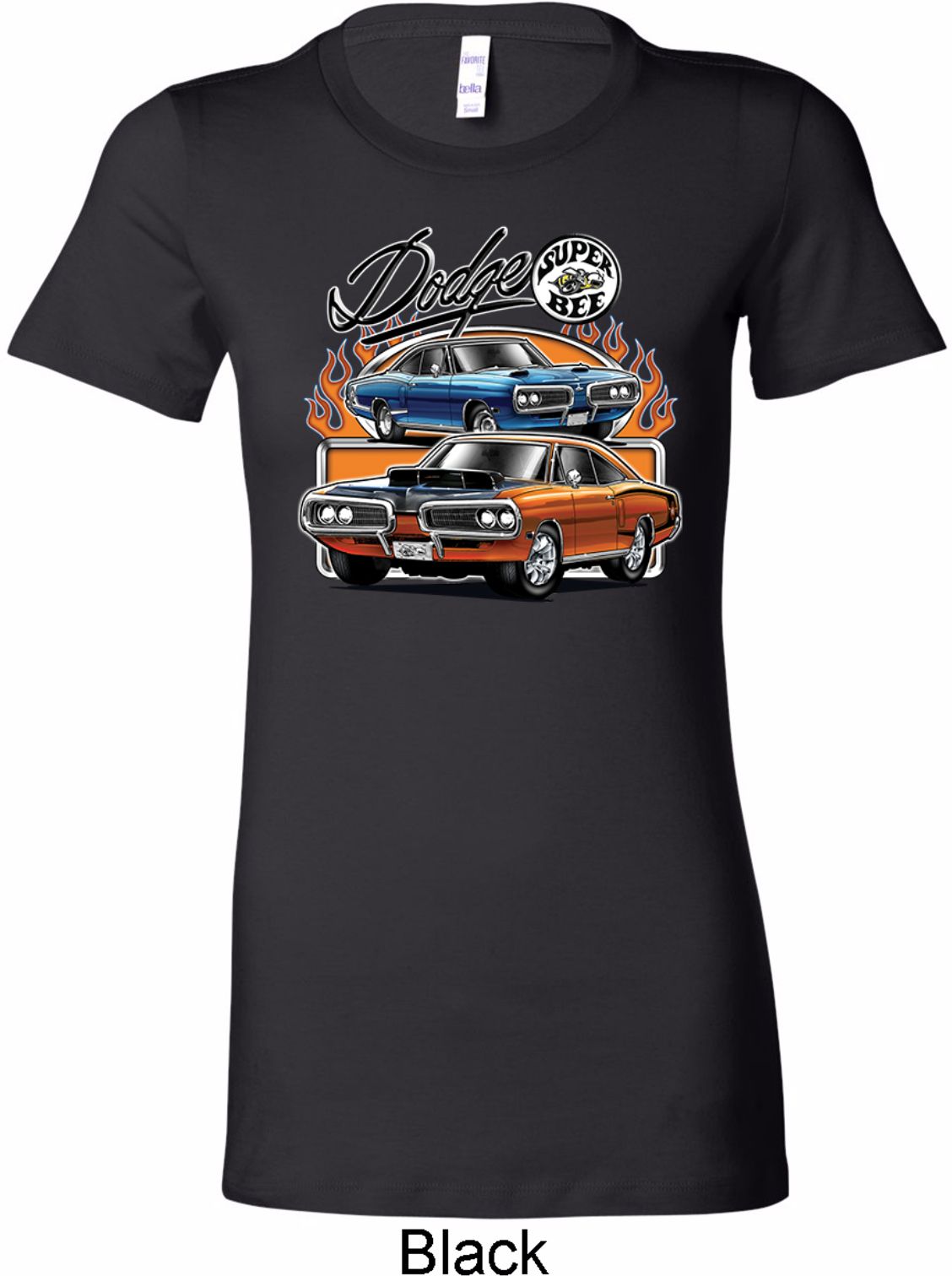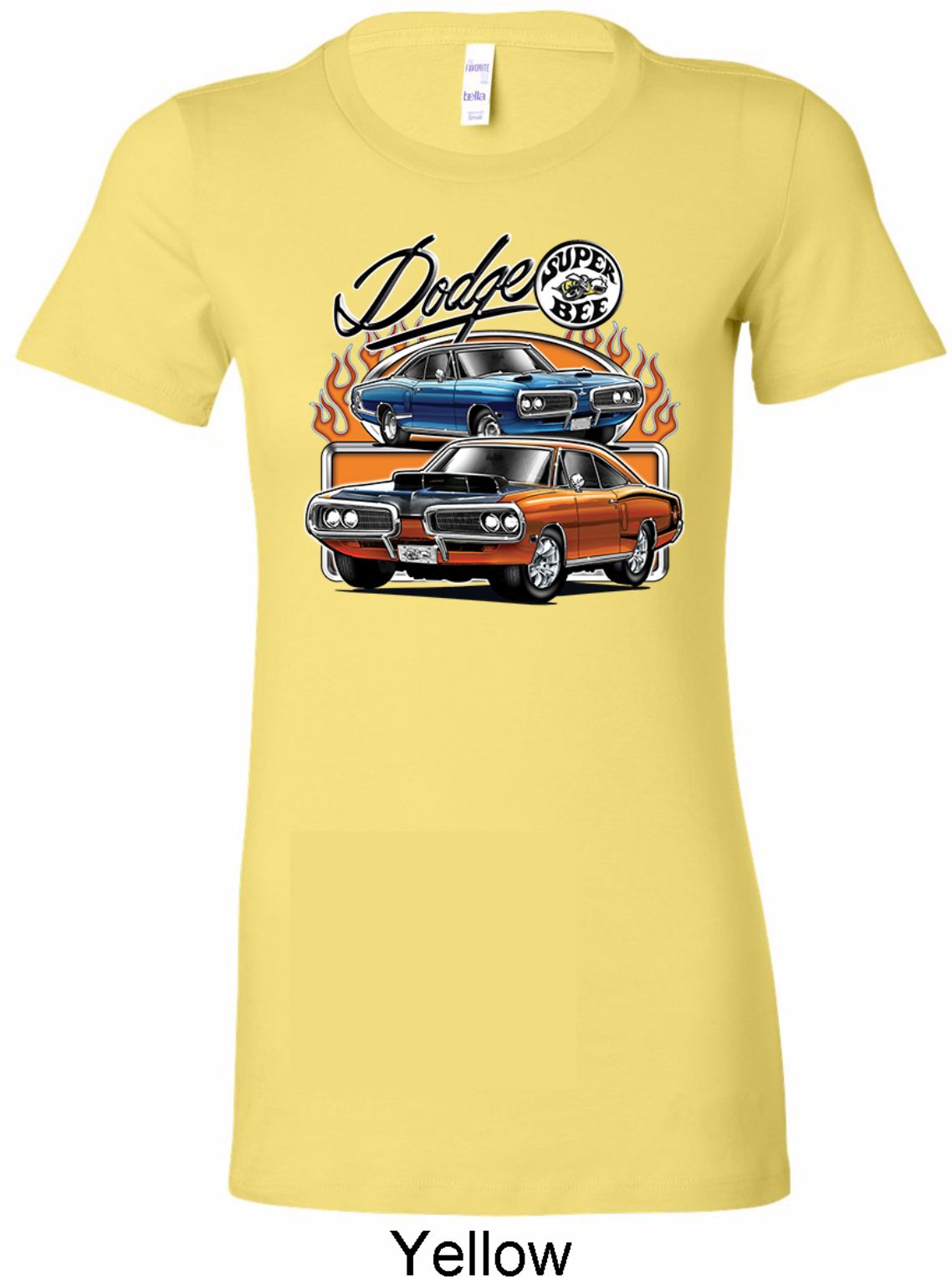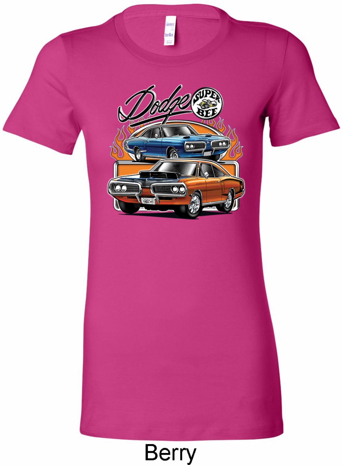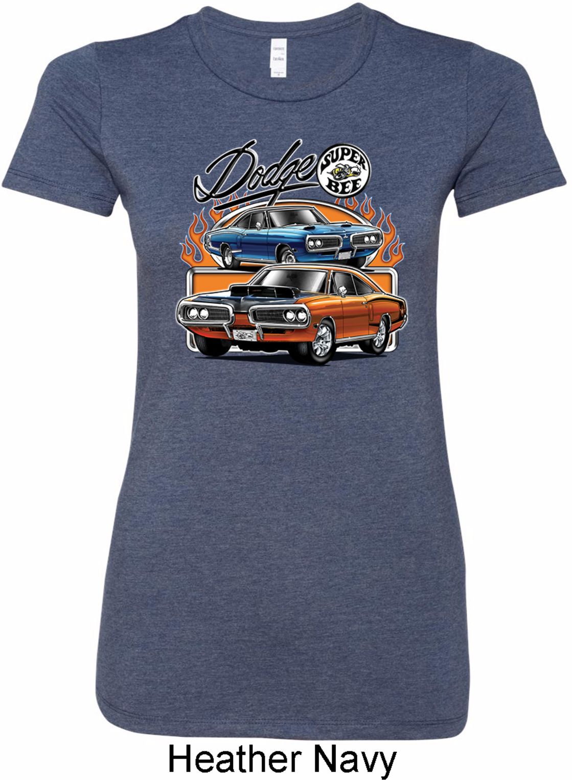 | | Ladies Dodge Blue and Orange Super Bee Longer Length ShirtA fitted ladies longer length shirt featuring a blue and orange Dodge Super Bee. Our ladies shirt is made of 100% cotton. (Heather colors are made with a blend of cotton/poly) Available in sizes Small through 2XL. Machine wash cold with like colors; dry low heat. ![]() |
