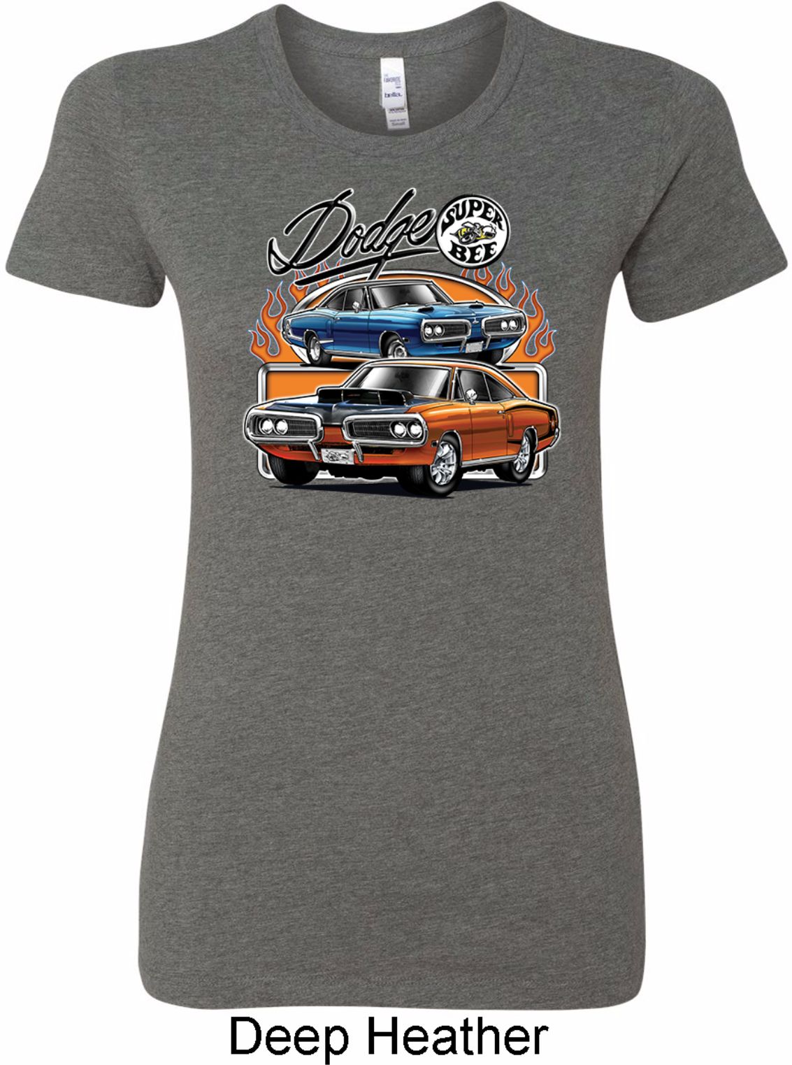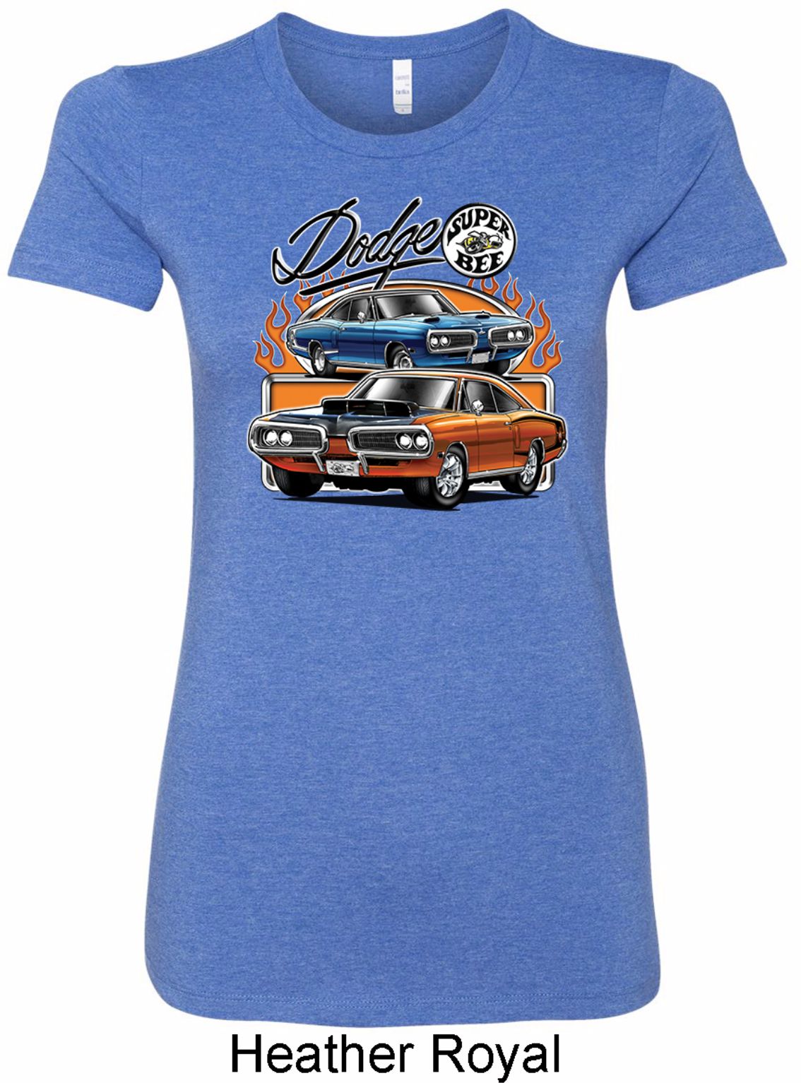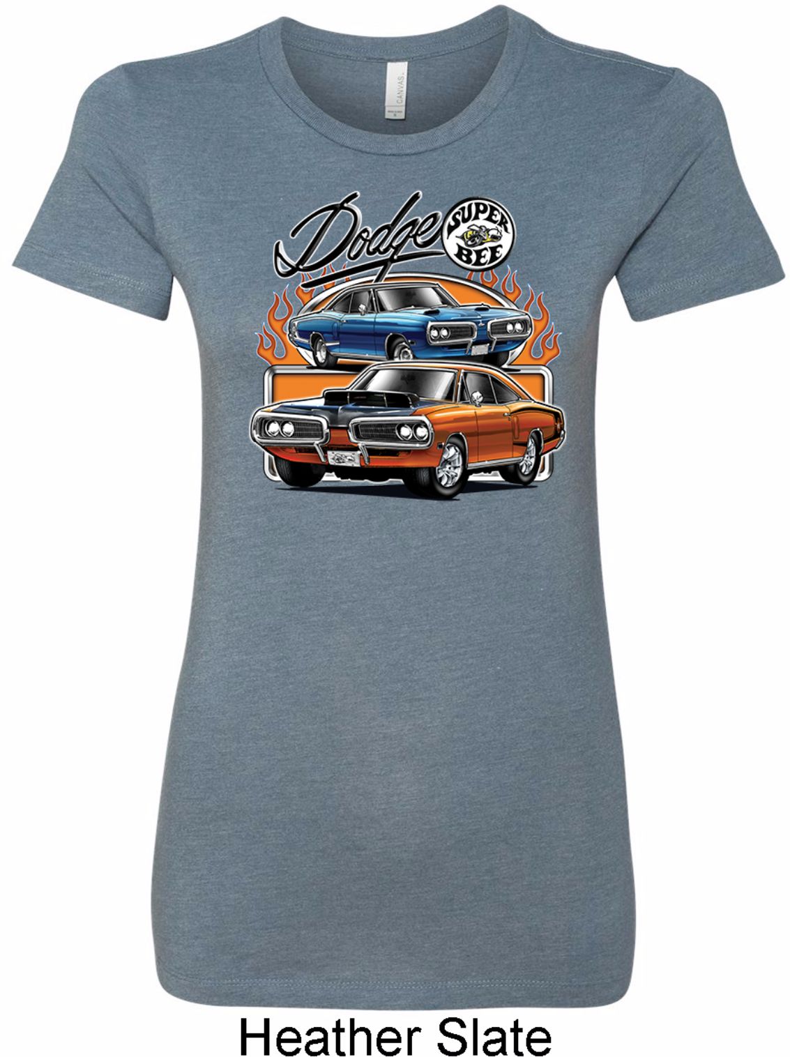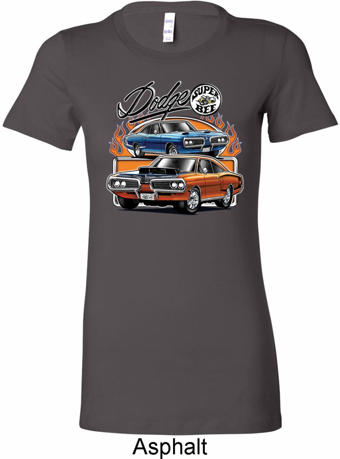 | | Ladies Dodge Blue and Orange Super Bee Longer Length ShirtA fitted ladies longer length shirt featuring a blue and orange Dodge Super Bee. Our ladies shirt is made of 100% cotton. (Heather colors are made with a blend of cotton/poly) Available in sizes Small through 2XL. Machine wash cold with like colors; dry low heat. ![]() |