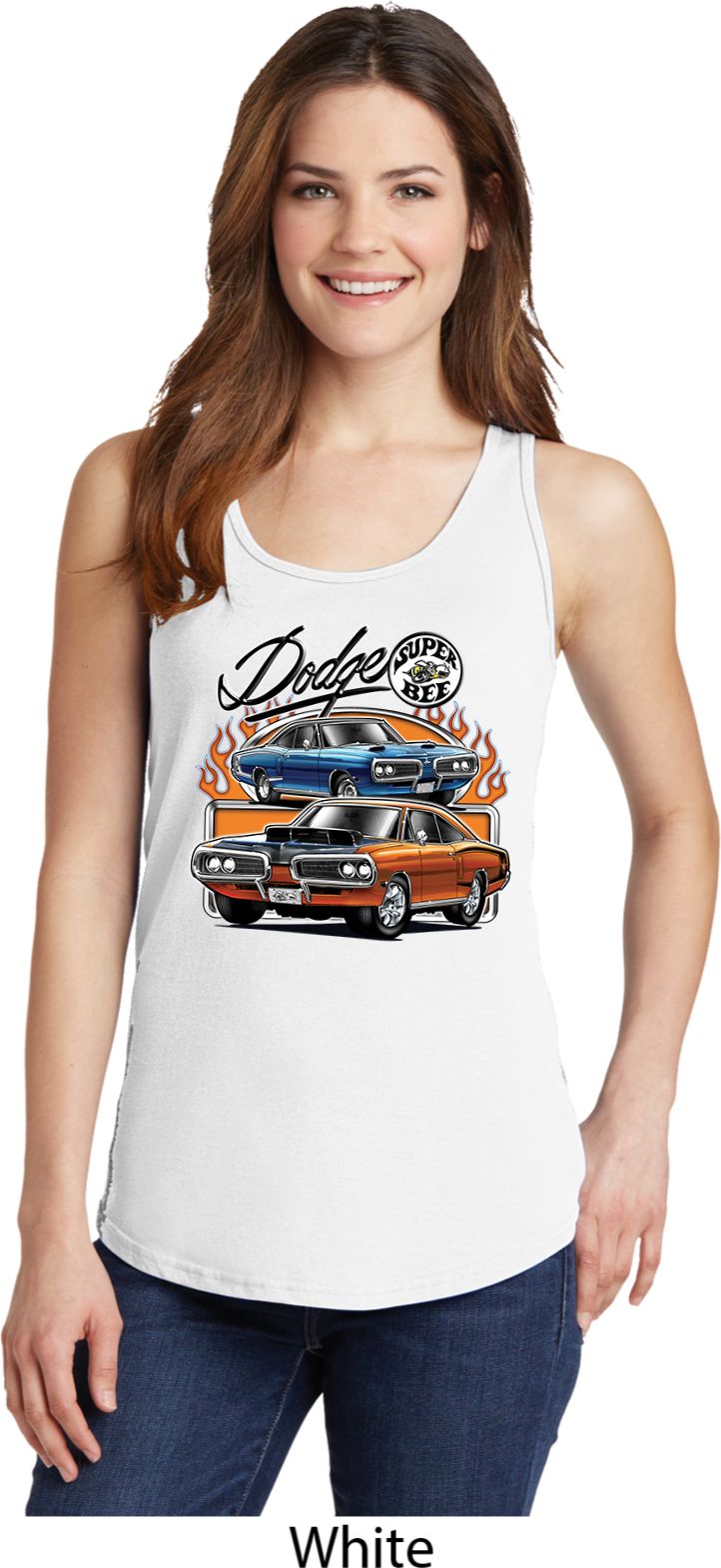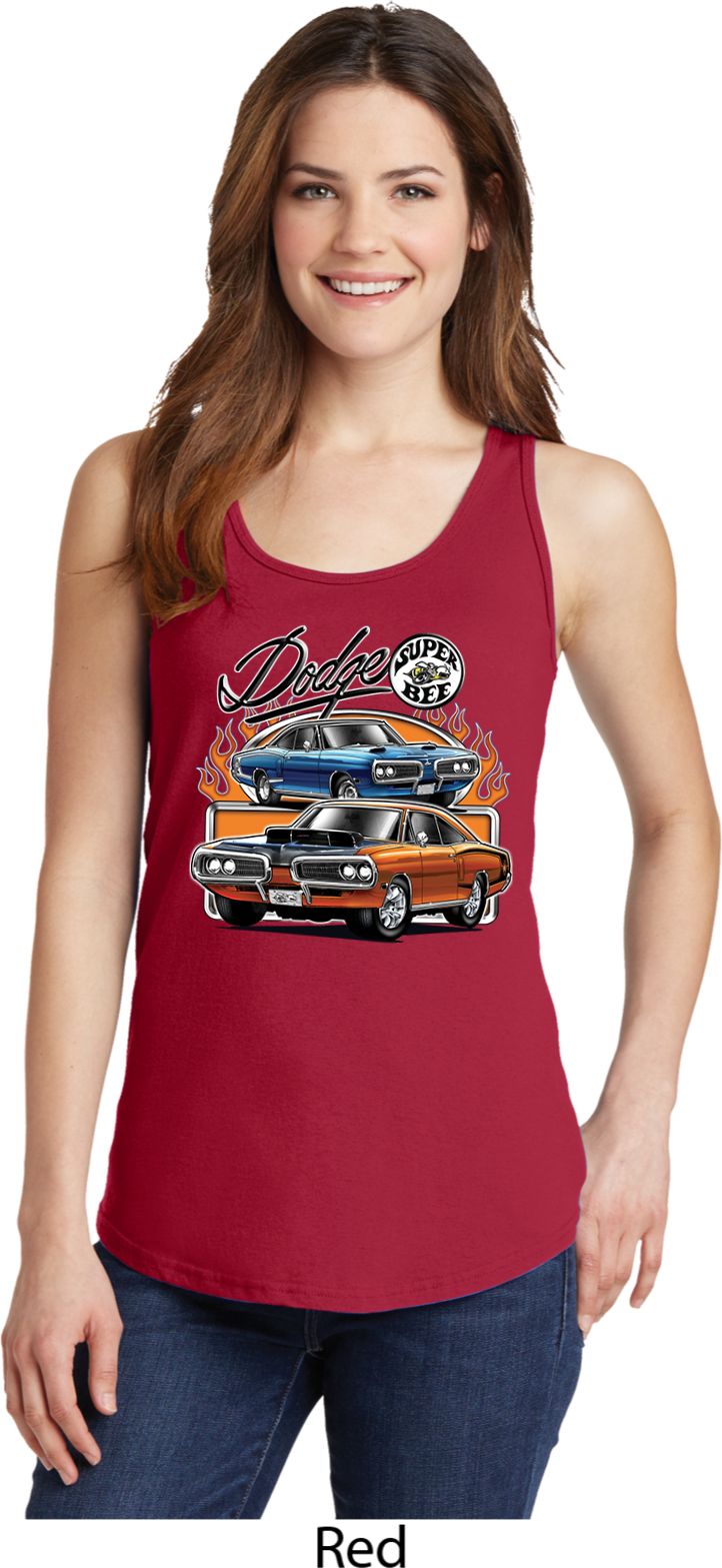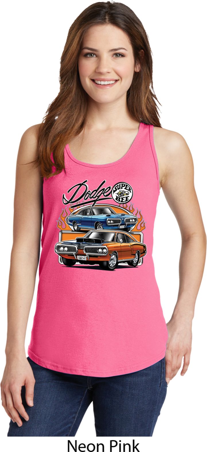 | | Ladies Dodge Blue and Orange Super Bee Tank TopA relaxed fit ladies tank top featuring a blue and orange Dodge Super Bee. Our ladies tanktop is made of 100% cotton. (Neons and Heathers are made with a blend of cotton/poly) Available in sizes Small through 4XL. Machine wash cold with like colors; dry low heat. ![]() |