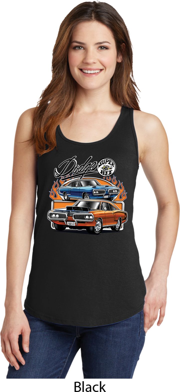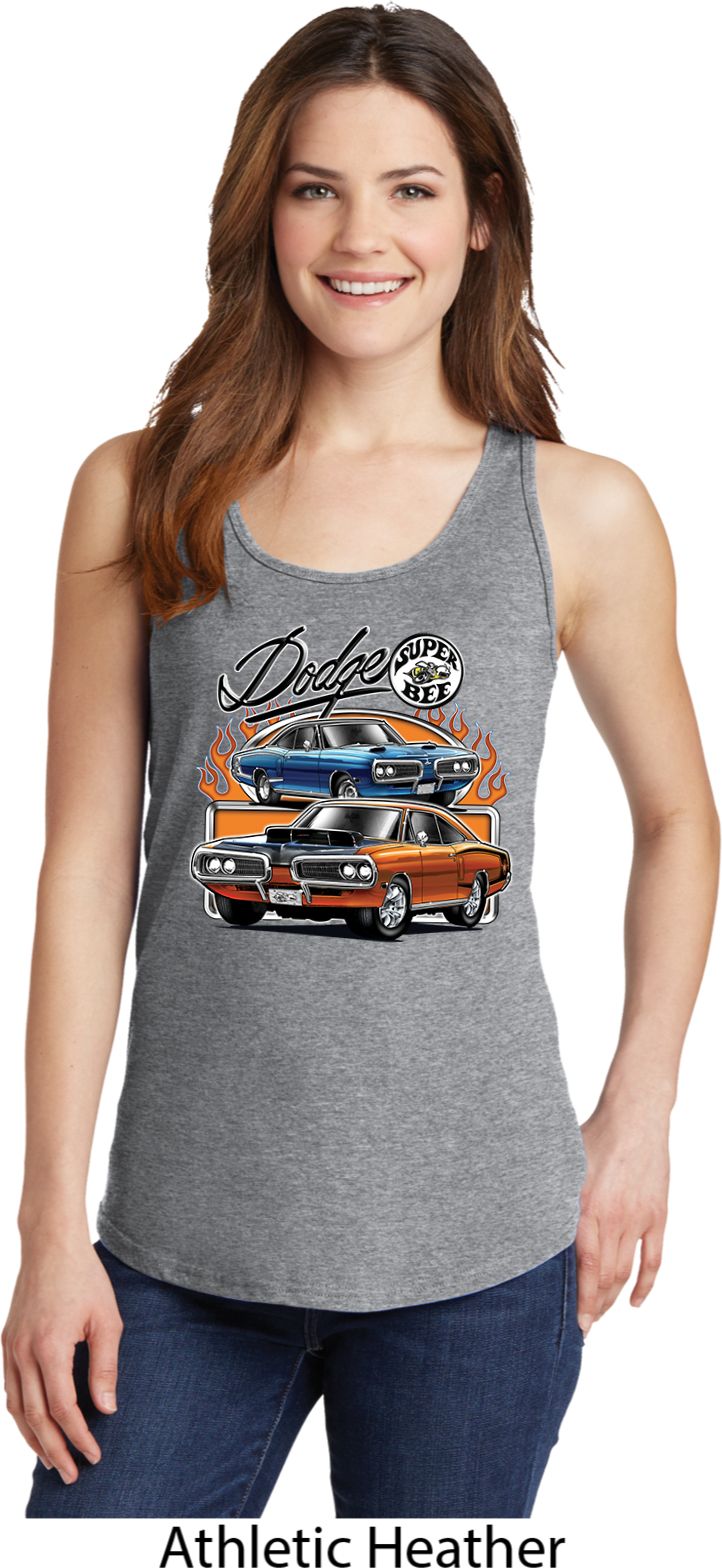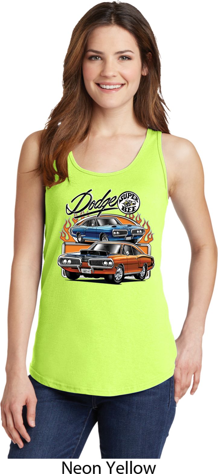 | | Ladies Dodge Blue and Orange Super Bee Tank TopA relaxed fit ladies tank top featuring a blue and orange Dodge Super Bee. Our ladies tanktop is made of 100% cotton. (Neons and Heathers are made with a blend of cotton/poly) Available in sizes Small through 4XL. Machine wash cold with like colors; dry low heat. ![]() |