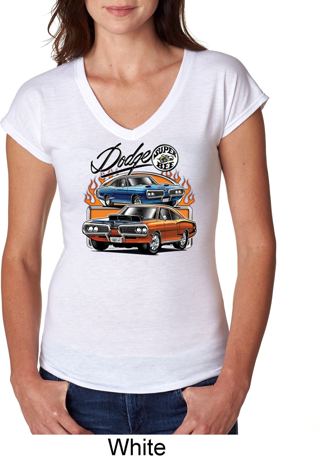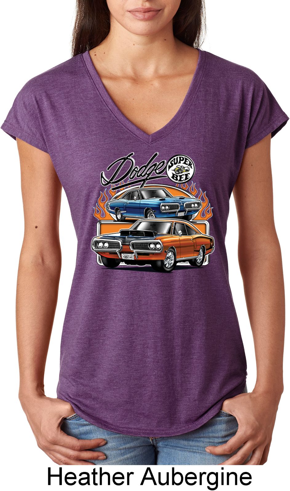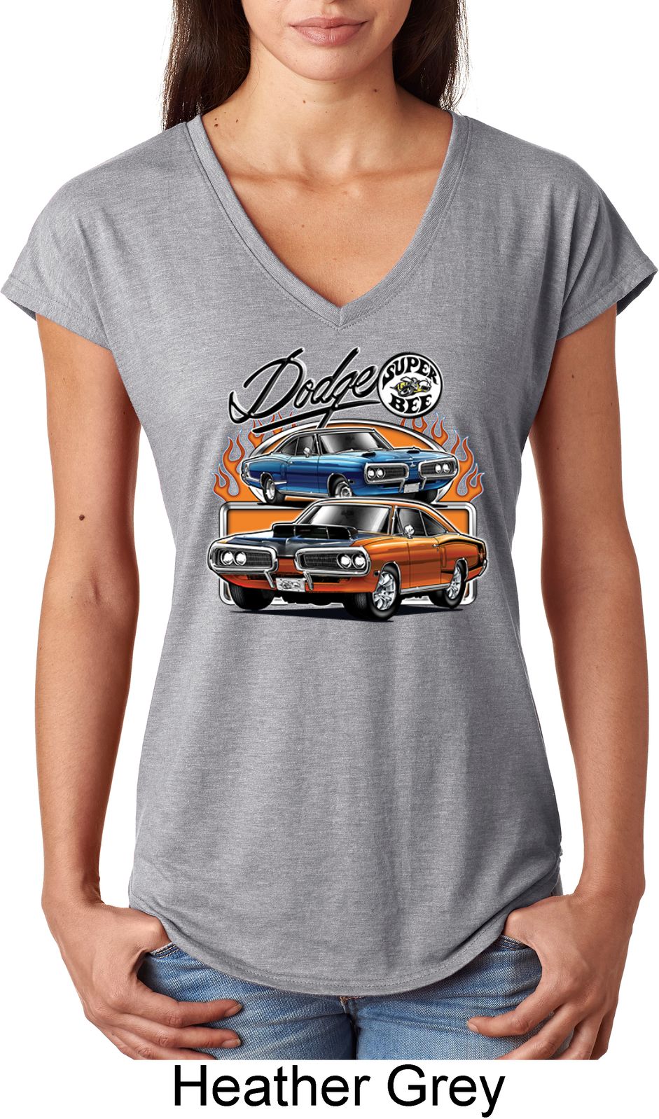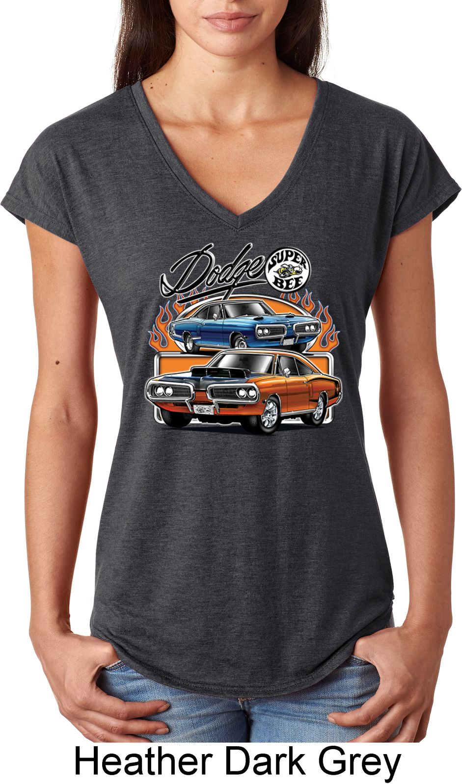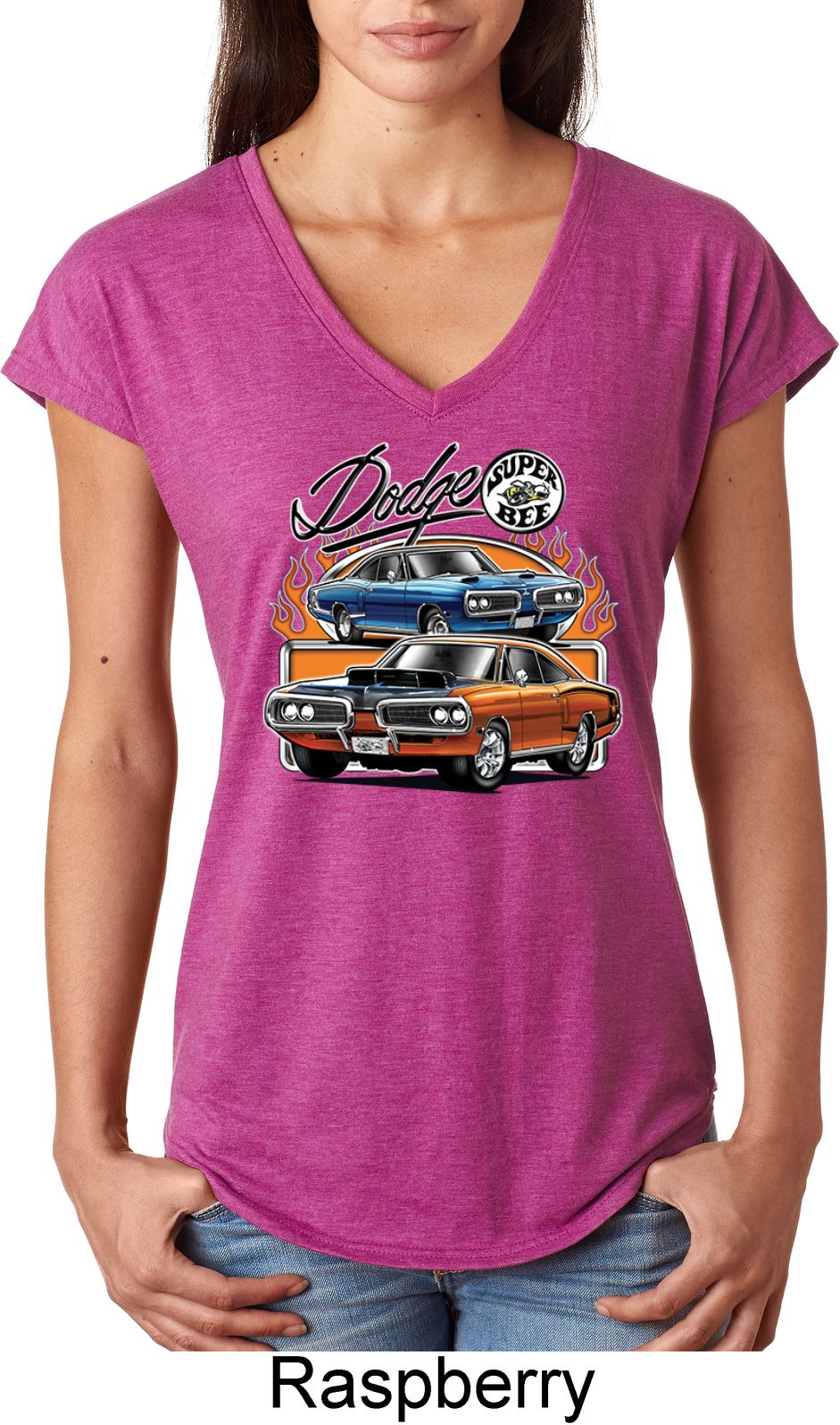 | | Ladies Dodge Blue and Orange Super Bee Tri Blend V-neckA soft ladies v-neck featuring a blue and orange Dodge Super Bee. Our ladies shirt is made with a blend of cotton/poly/rayon. Available in sizes Small through 2XL. Machine wash cold with like colors; dry low heat. ![]() |