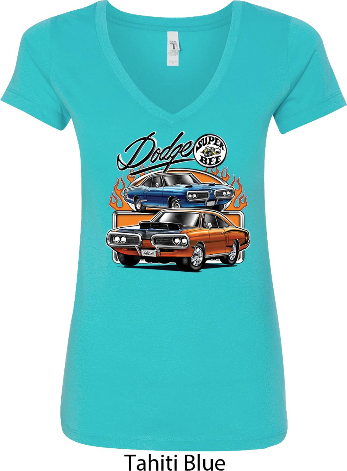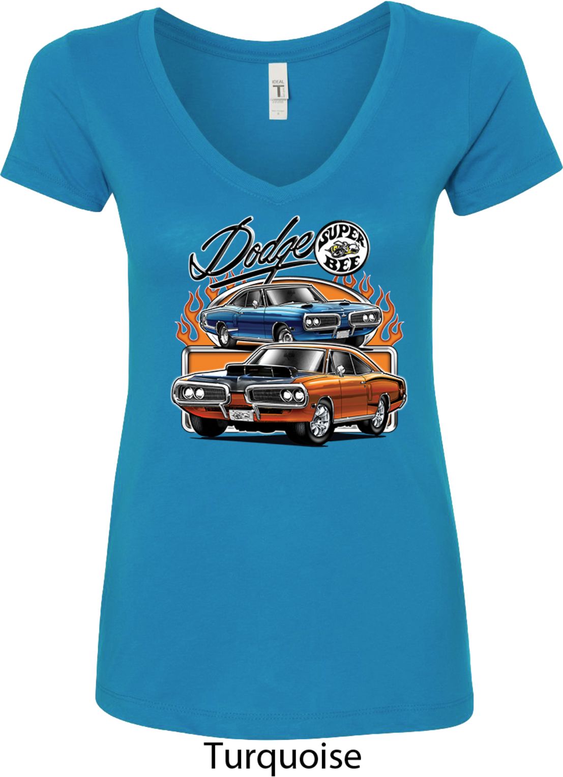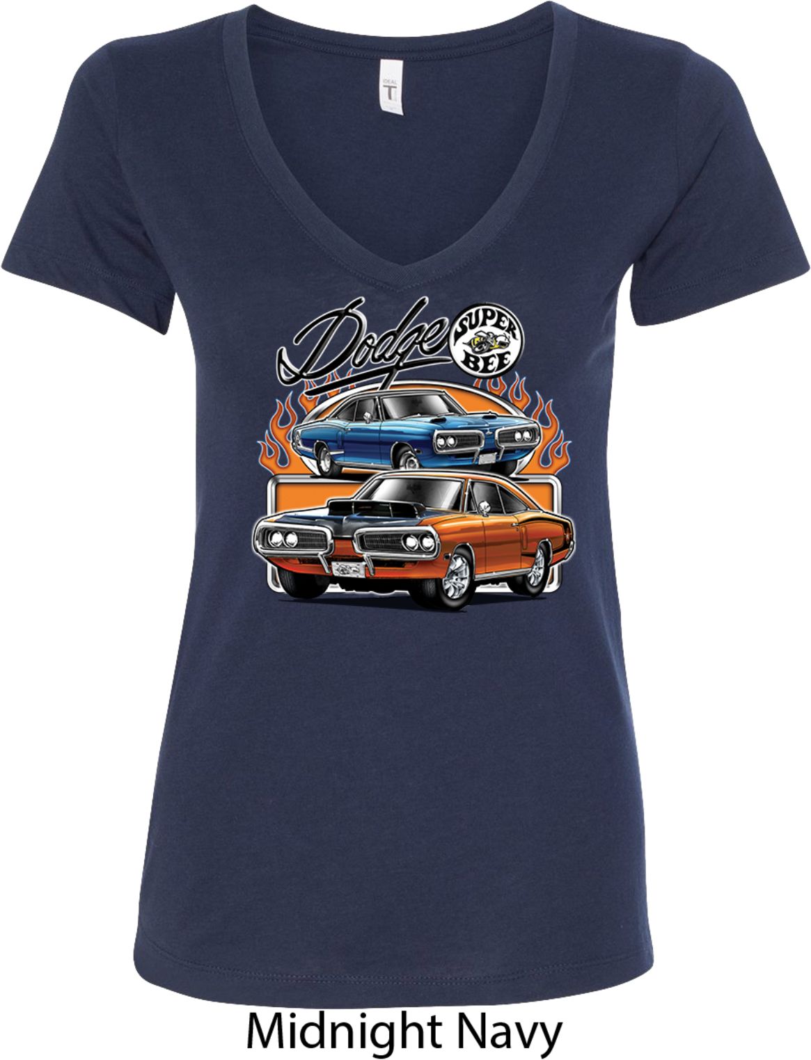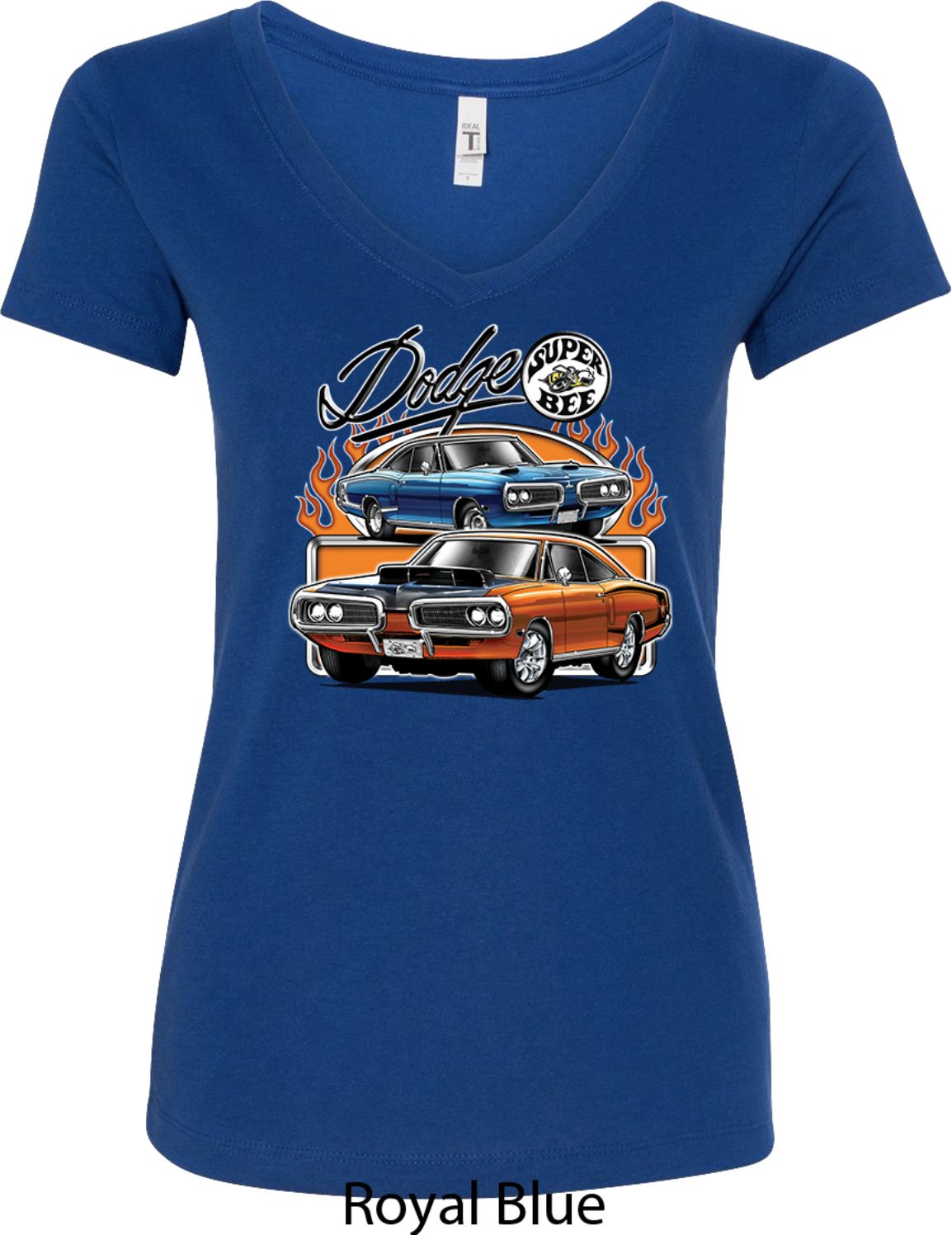| | Ladies Dodge Blue and Orange Super Bee V-NeckA fitted ladies v-neck featuring a blue and orange Dodge Super Bee. Our ladies shirt is made with a blend of cotton/poly. Available in sizes Small through 2XL. Machine wash cold with like colors; dry low heat. ![]() |