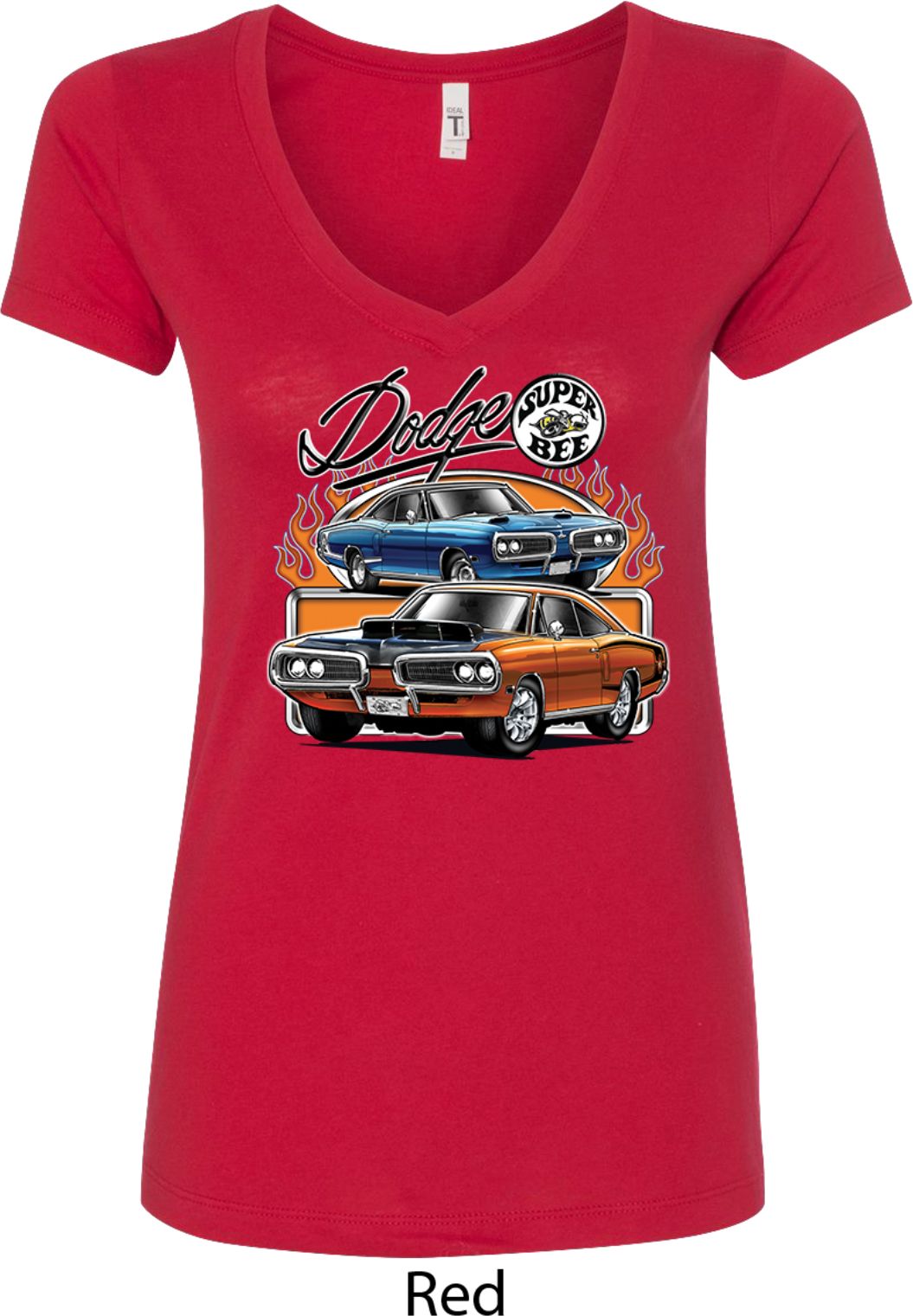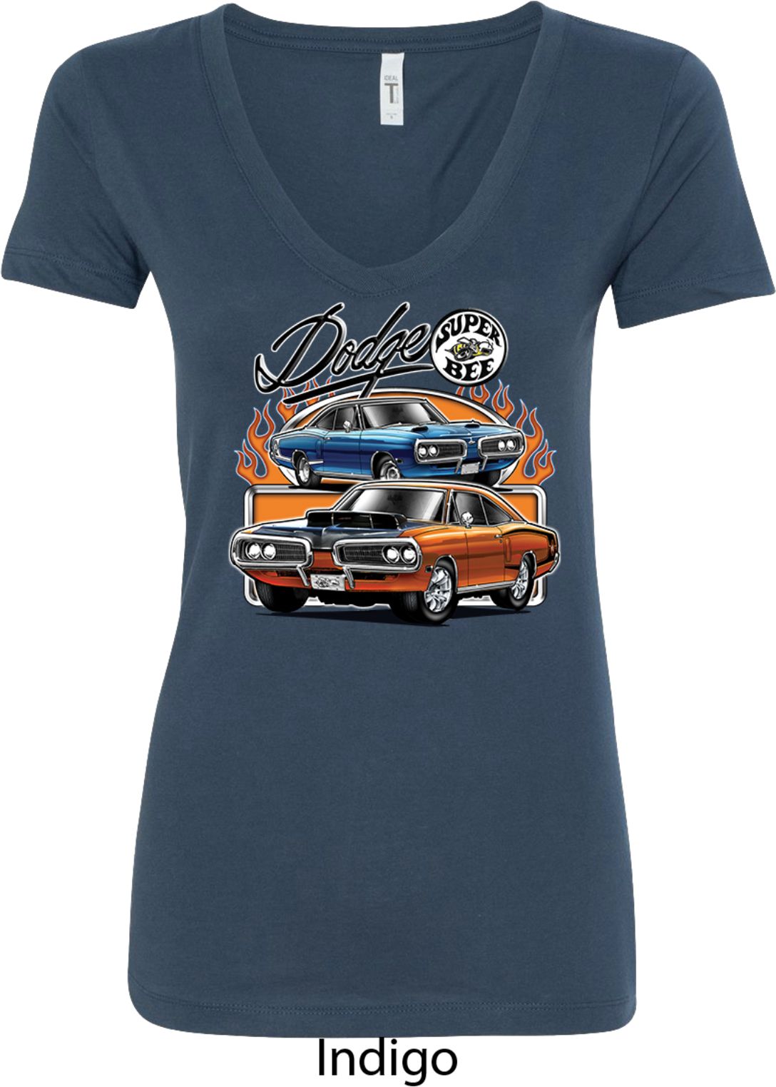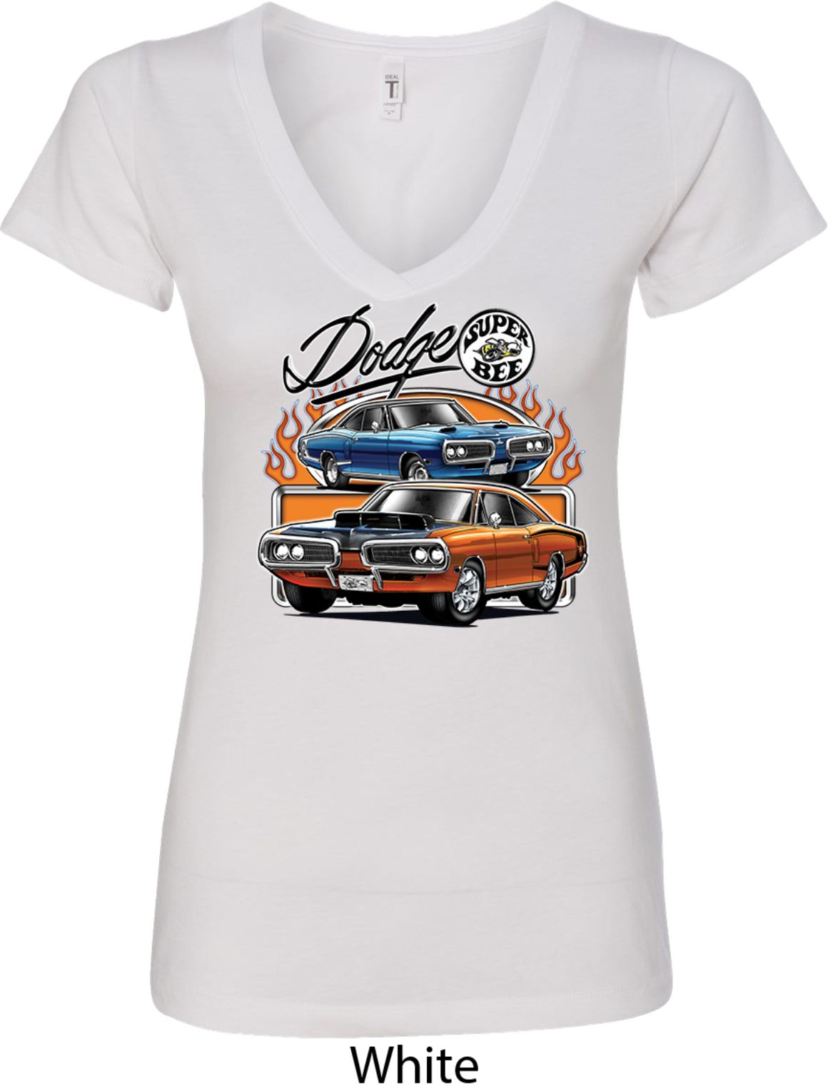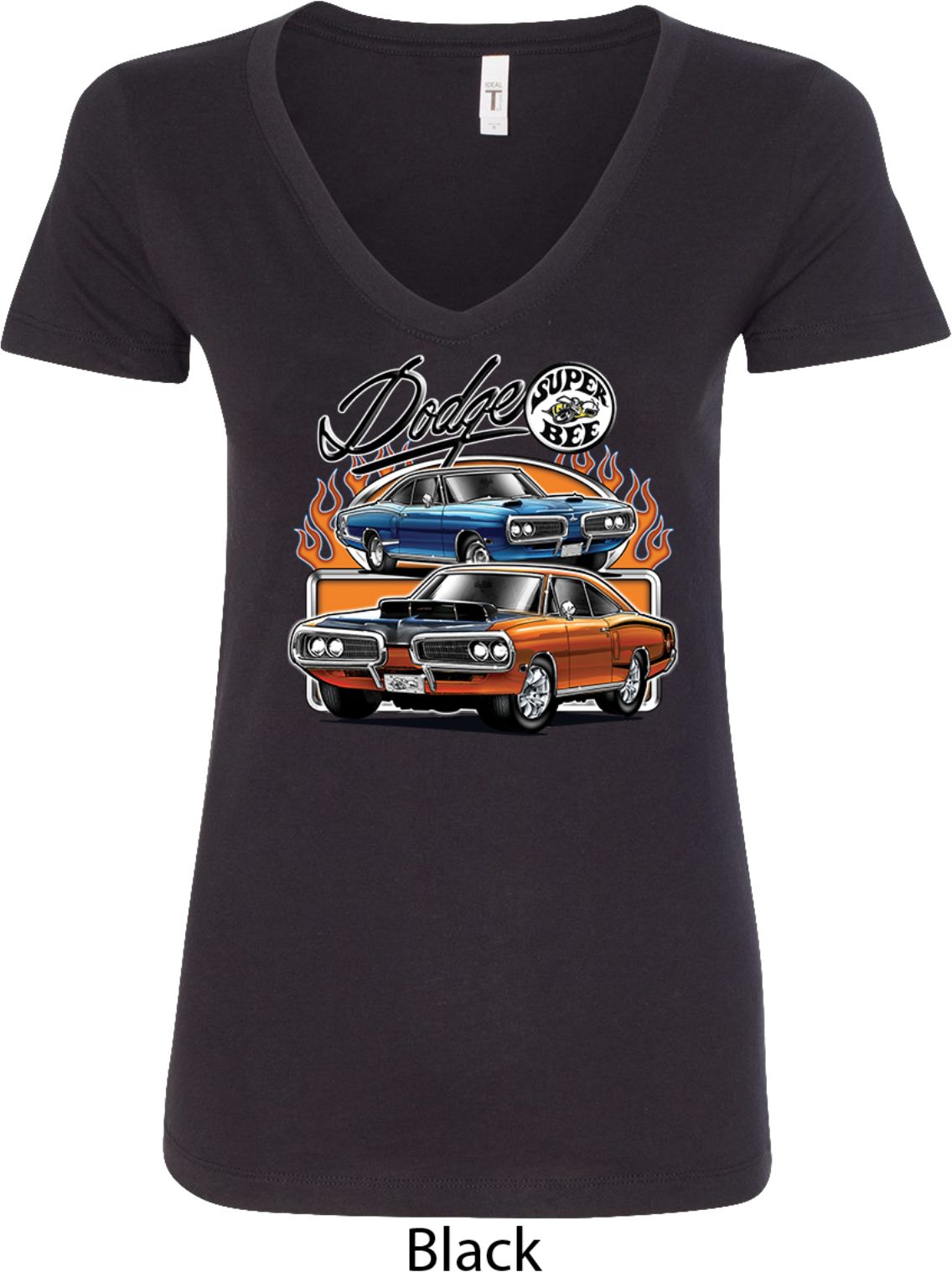 | | Ladies Dodge Blue and Orange Super Bee V-NeckA fitted ladies v-neck featuring a blue and orange Dodge Super Bee. Our ladies shirt is made with a blend of cotton/poly. Available in sizes Small through 2XL. Machine wash cold with like colors; dry low heat. ![]() |
