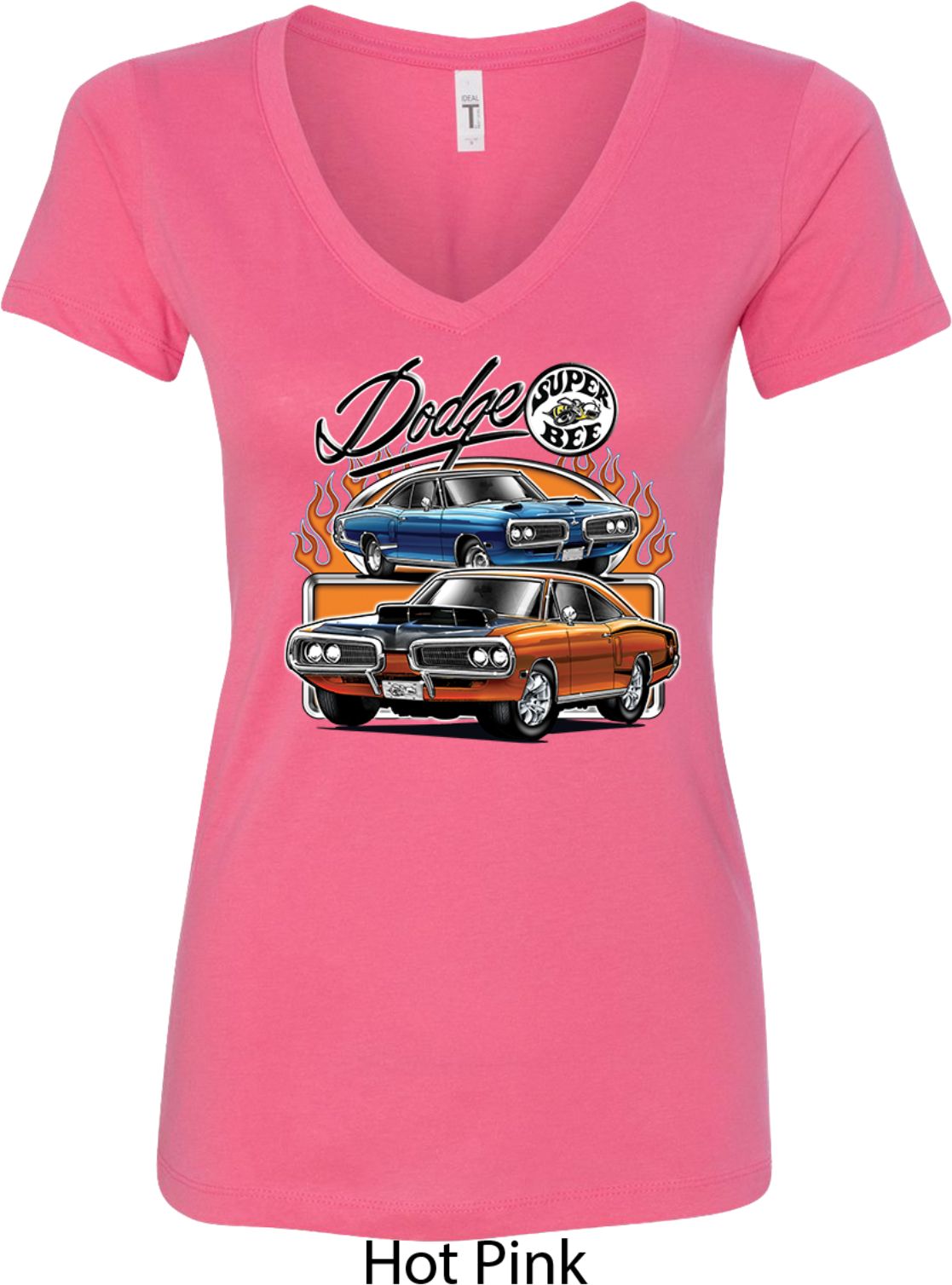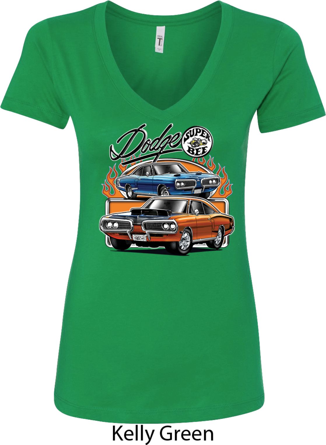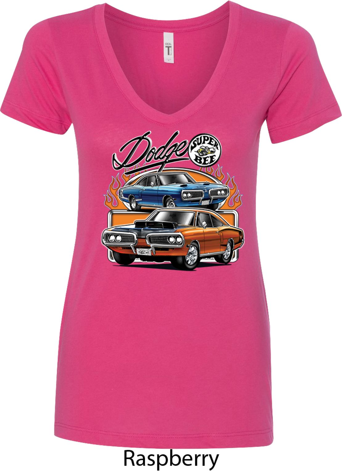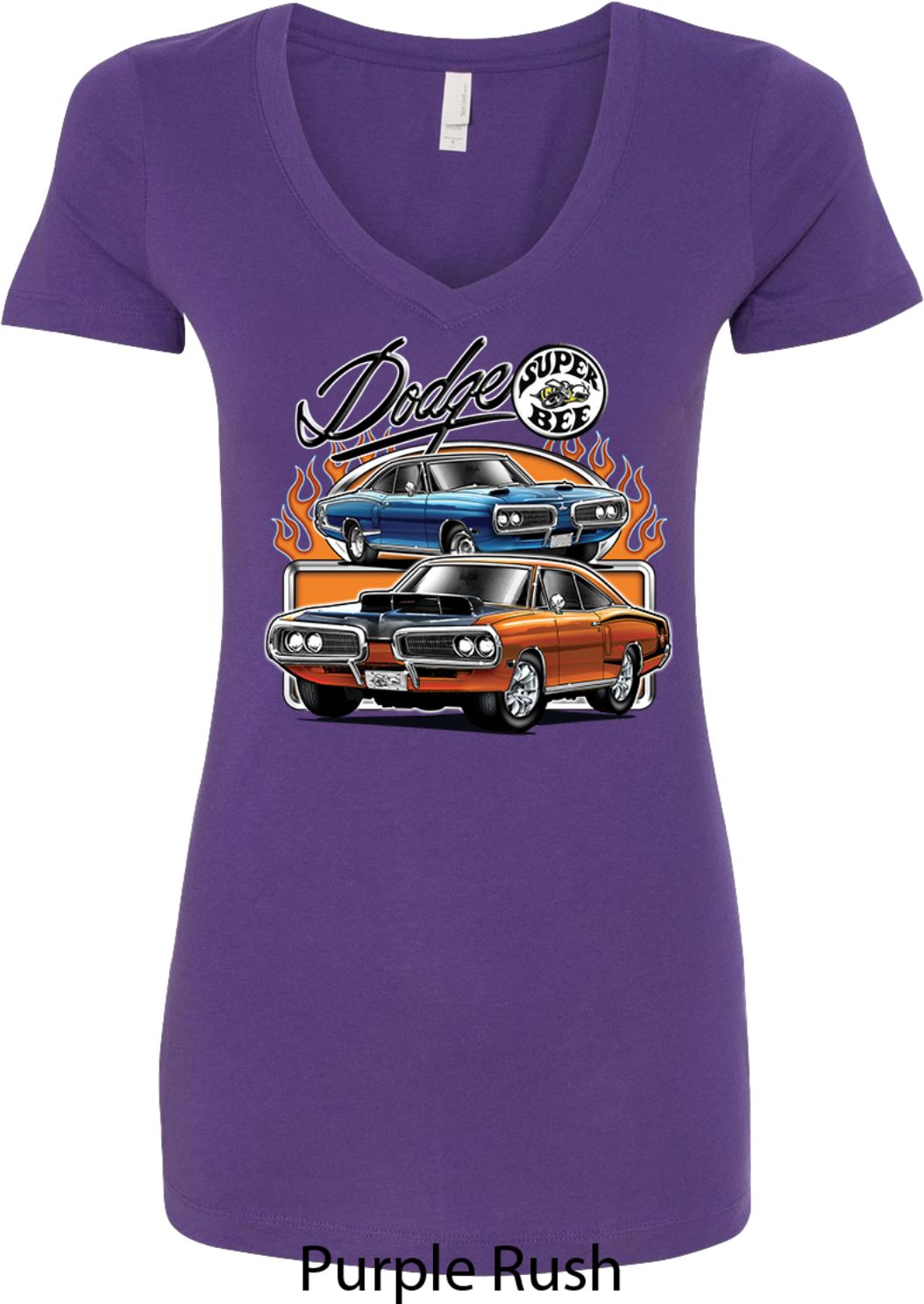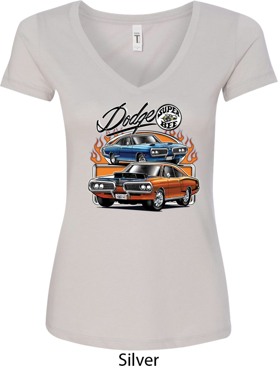 | | Ladies Dodge Blue and Orange Super Bee V-NeckA fitted ladies v-neck featuring a blue and orange Dodge Super Bee. Our ladies shirt is made with a blend of cotton/poly. Available in sizes Small through 2XL. Machine wash cold with like colors; dry low heat. ![]() |