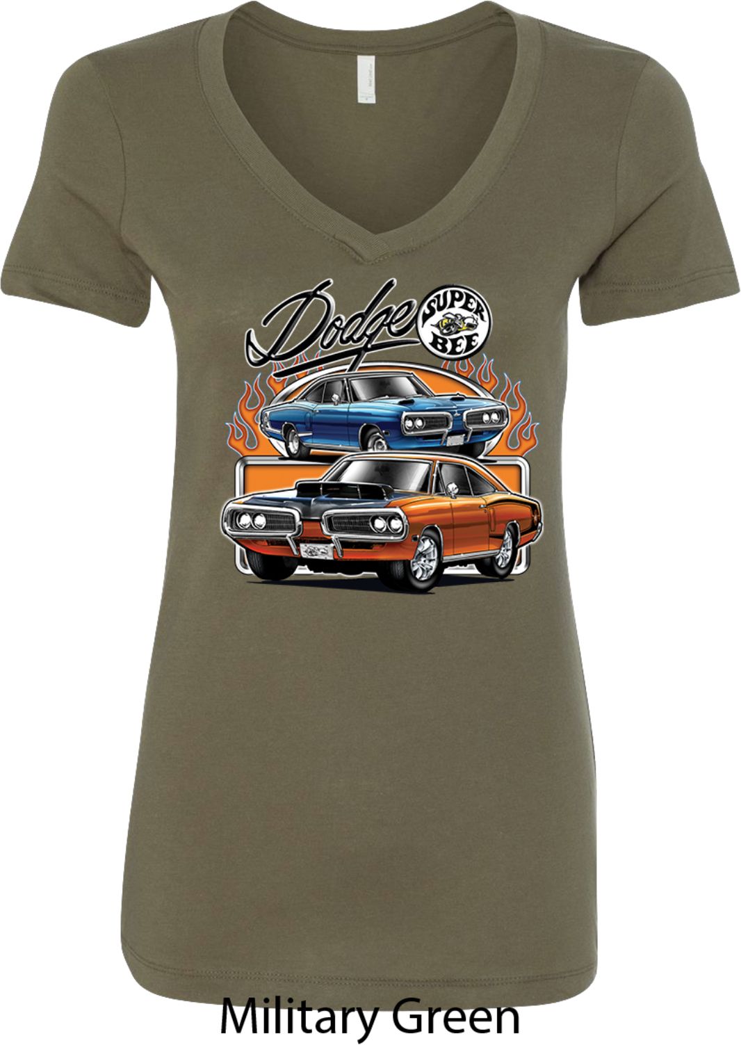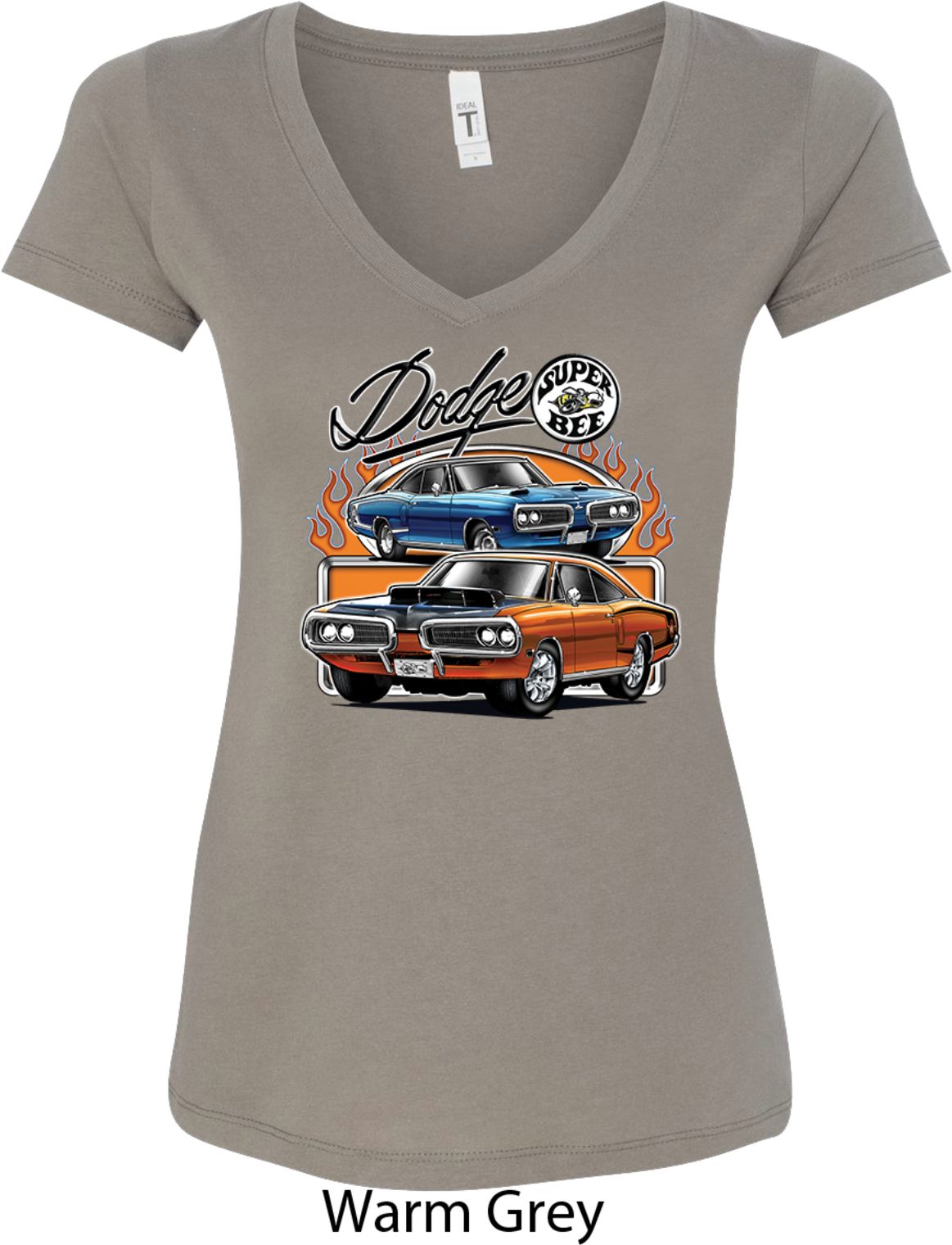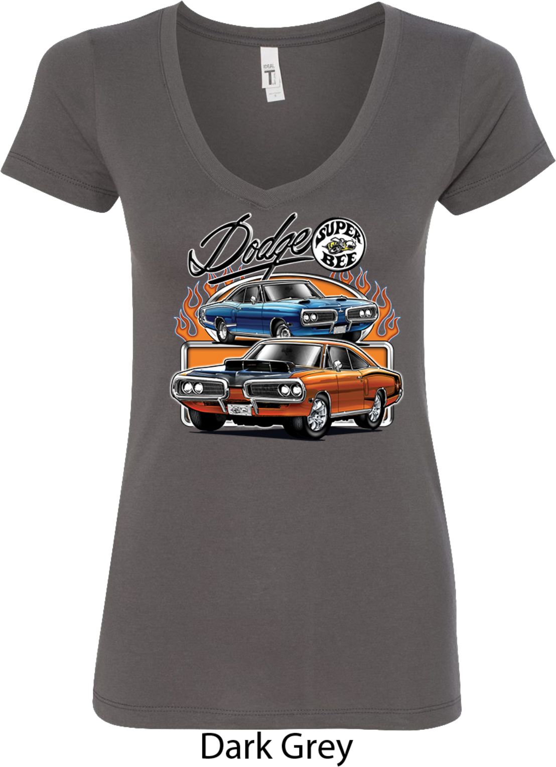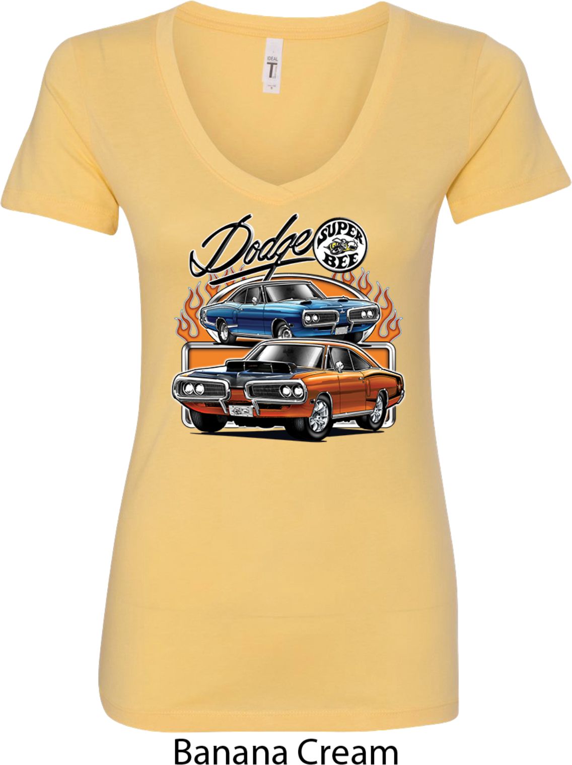 | | Ladies Dodge Blue and Orange Super Bee V-NeckA fitted ladies v-neck featuring a blue and orange Dodge Super Bee. Our ladies shirt is made with a blend of cotton/poly. Available in sizes Small through 2XL. Machine wash cold with like colors; dry low heat. ![]() |