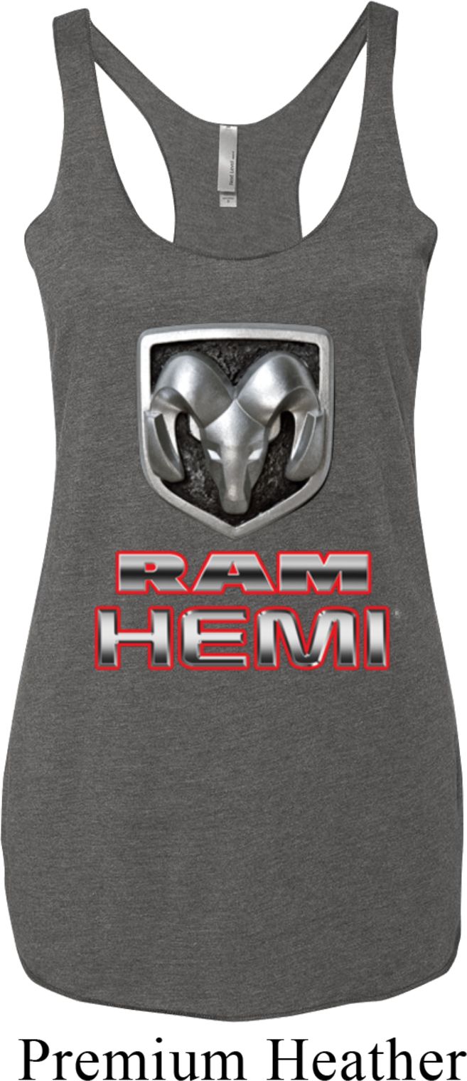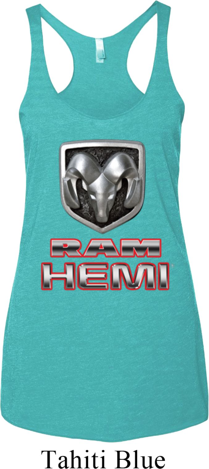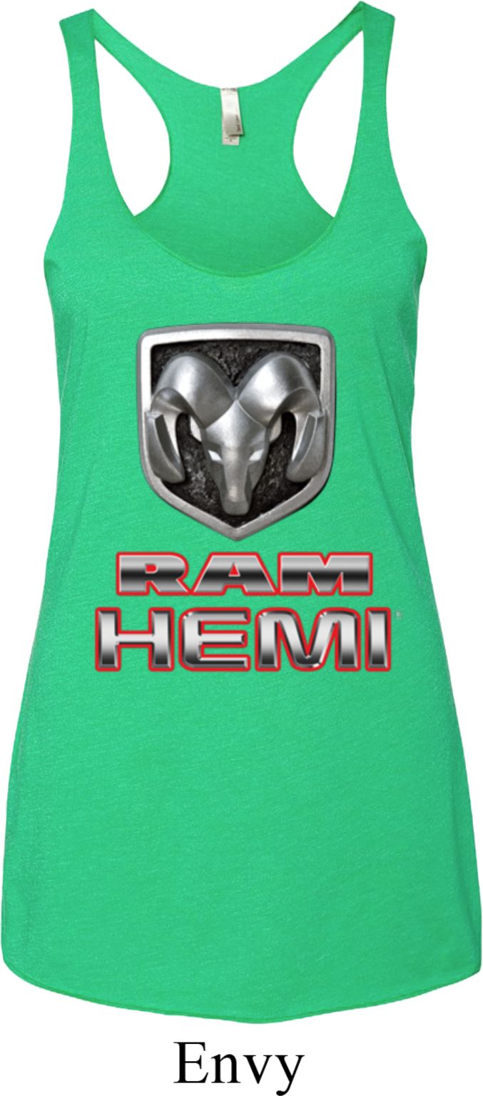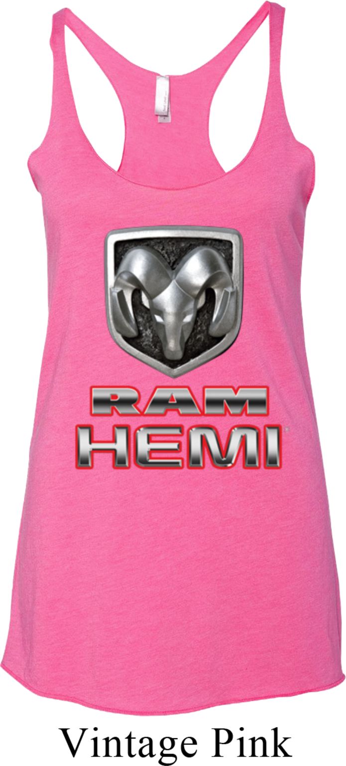 | | Ladies Dodge Tanktop Ram Hemi Logo Tri Blend Racerback Tank TopLadies Dodge Tanktop Ram Hemi Logo Tri Blend Racerback Tank Top A cotton/poly/rayon blend Available in Ladies XS, Ladies Small, Ladies Medium, Ladies Large & Ladies XL Also available in colors Envy, Heather White, Indigo, Macchiato, Premium Heather, Purple Rush, Tahiti, Venetian Grey, Vintage Black, Vintage Navy, Vintage Pink, Vintage Purple, VIntage Red, and Vintage Royal |