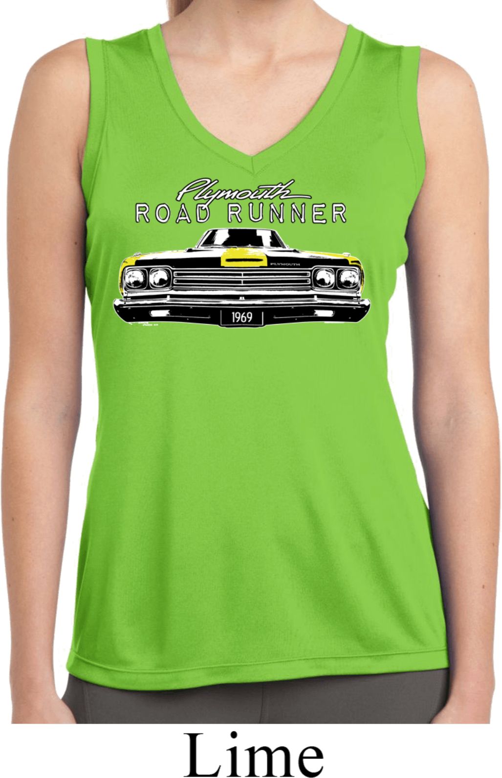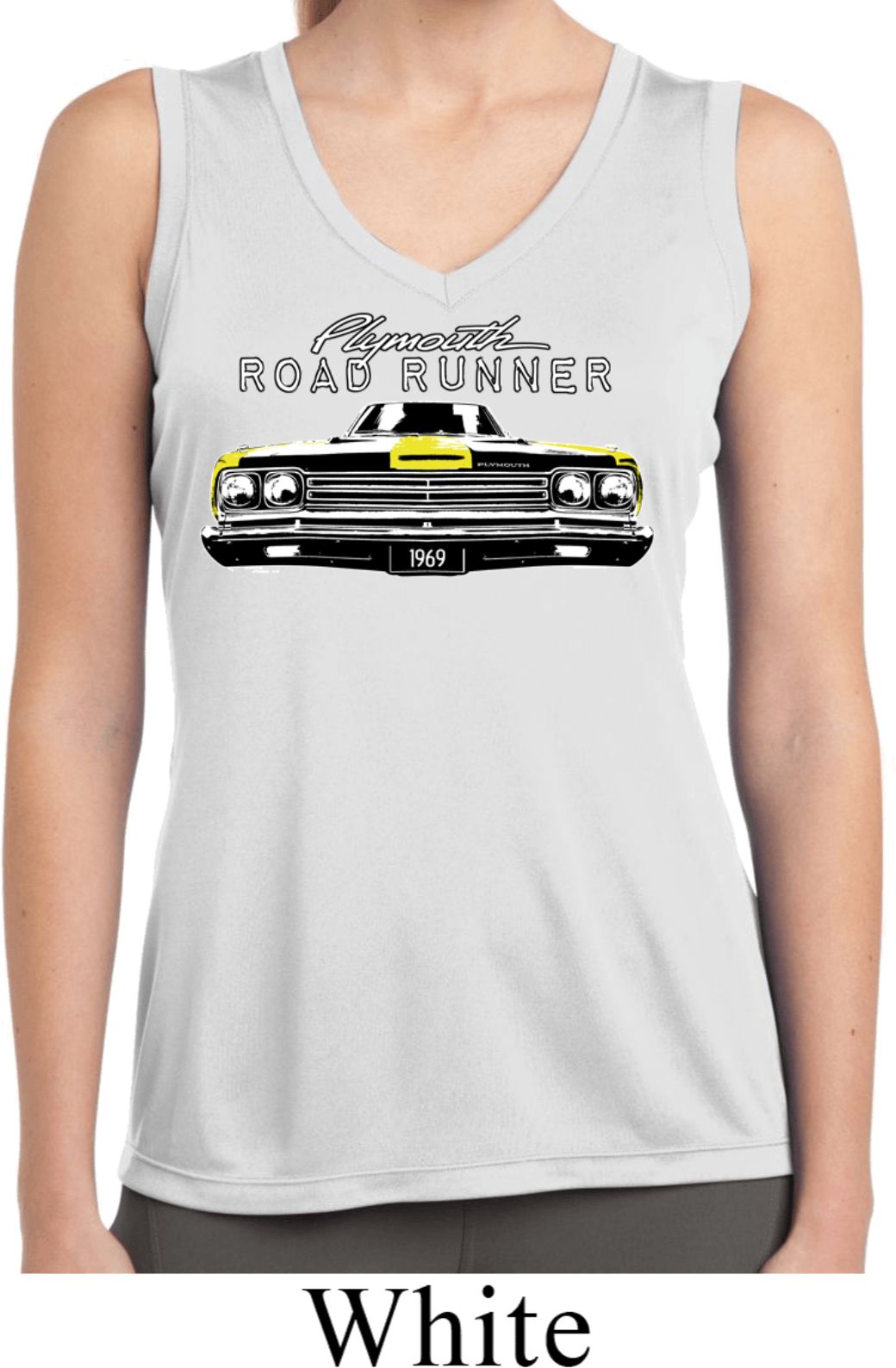 | | Ladies Dodge Yellow Plymouth Roadrunner Sleeveless Dry Wicking ShirtLadies Dodge Yellow Plymouth Roadrunner Sleeveless Dry Wicking Shirt Features a front profile of the classic 1969 Yellow Plymouth Roadrunner 100% polyester Available in Ladies Small, Ladies Medium, Ladies Large, Ladies XL, Ladies 2XL, Ladies 3XL & Ladies 4XL Also available in colors Black, Lime, Navy, Red, Royal, Silver, and White |
