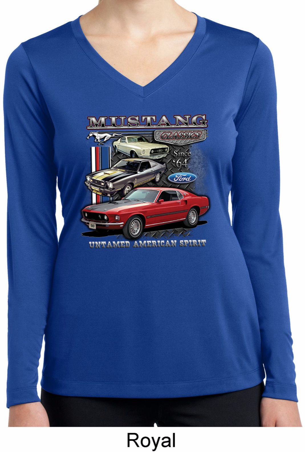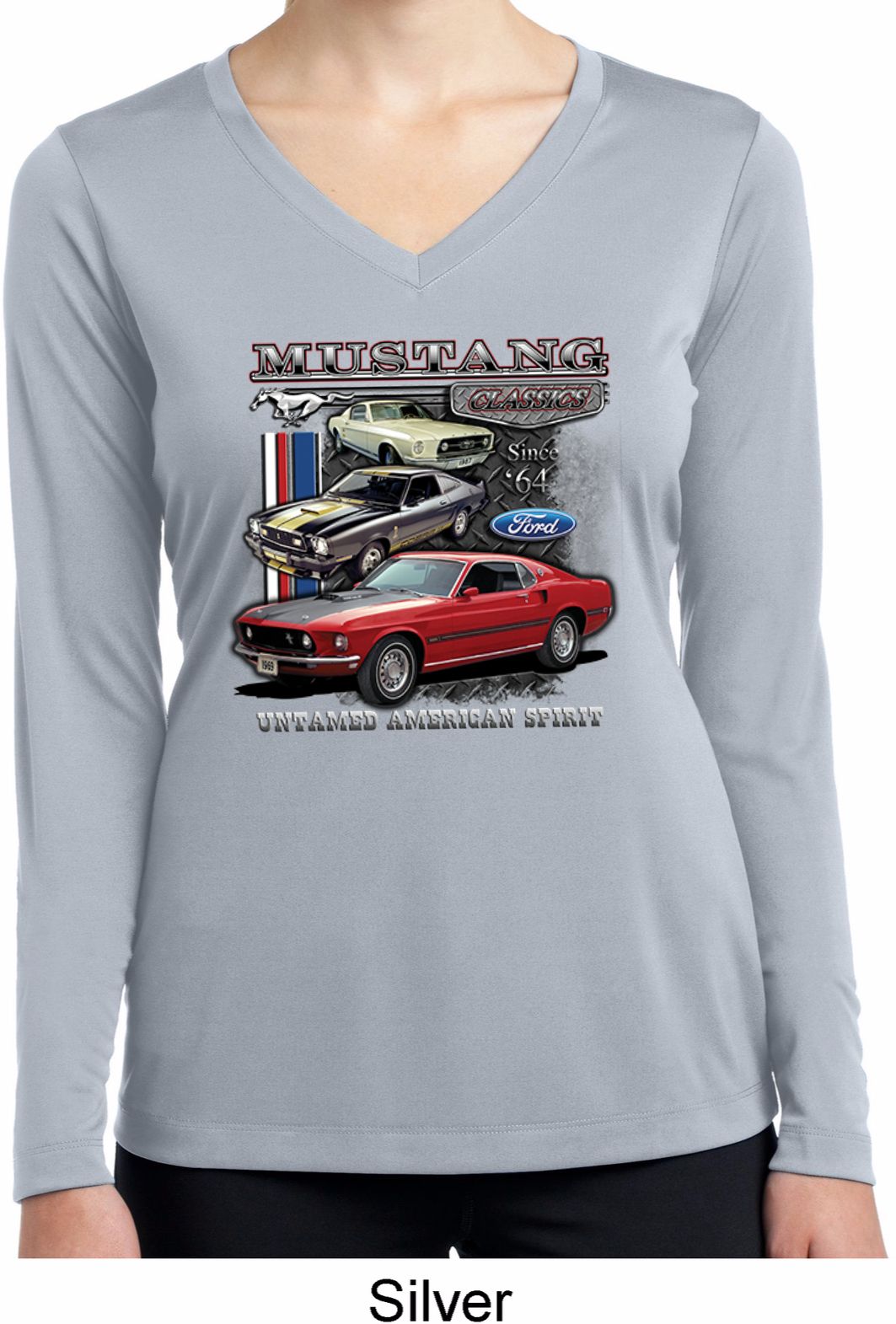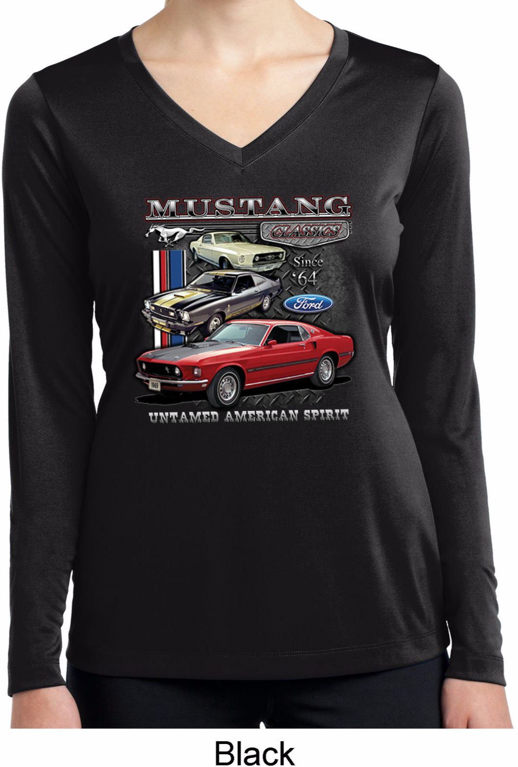| | Ladies Ford Classic Mustangs Untamed Dry Wicking Long SleeveA ladies dry wicking long sleeve v-neck featuring Ford Mustang Classics since 1964, Untamed American Spirit. Our ladies shirt is made of 100% polyester. Available in sizes Small through 4XL. Machine wash cold with like colors; dry low heat. ![]() |