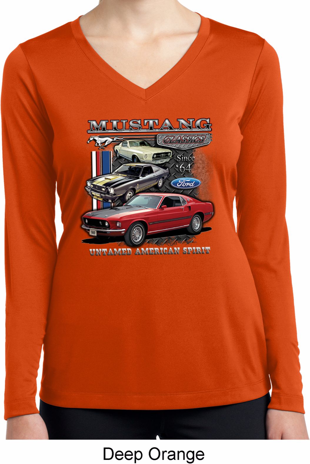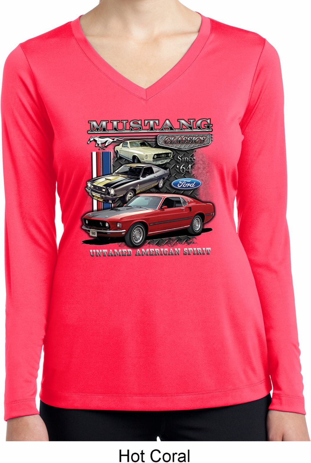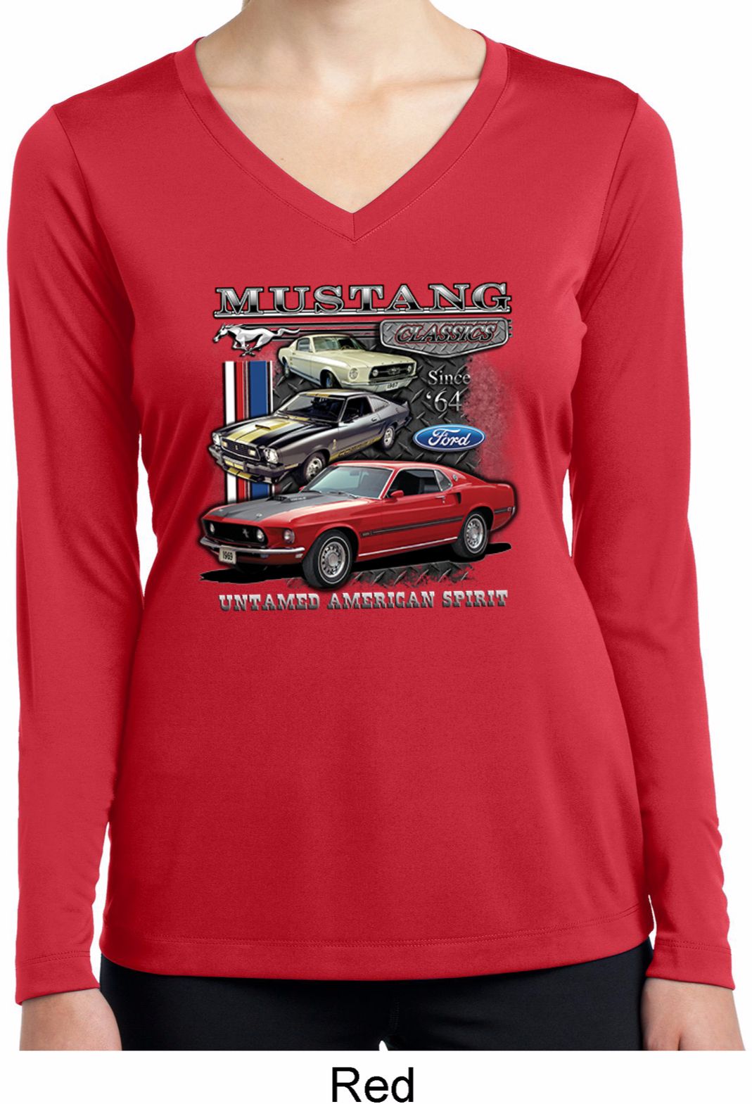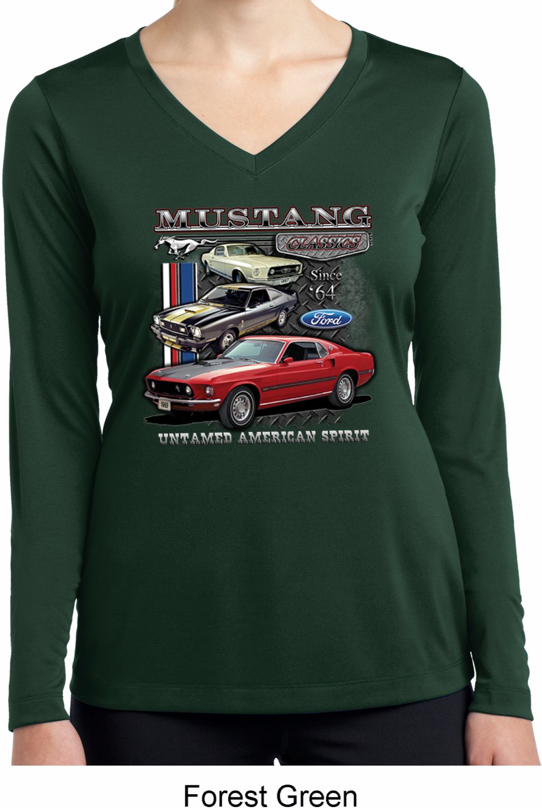 | | Ladies Ford Classic Mustangs Untamed Dry Wicking Long SleeveA ladies dry wicking long sleeve v-neck featuring Ford Mustang Classics since 1964, Untamed American Spirit. Our ladies shirt is made of 100% polyester. Available in sizes Small through 4XL. Machine wash cold with like colors; dry low heat. ![]() |