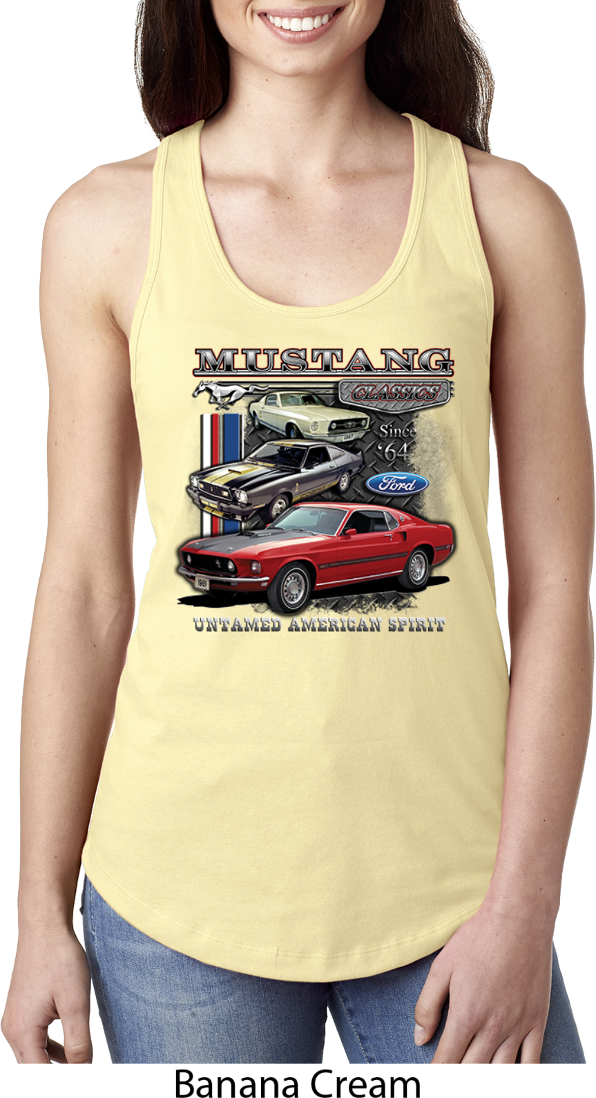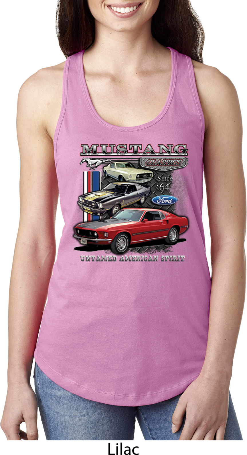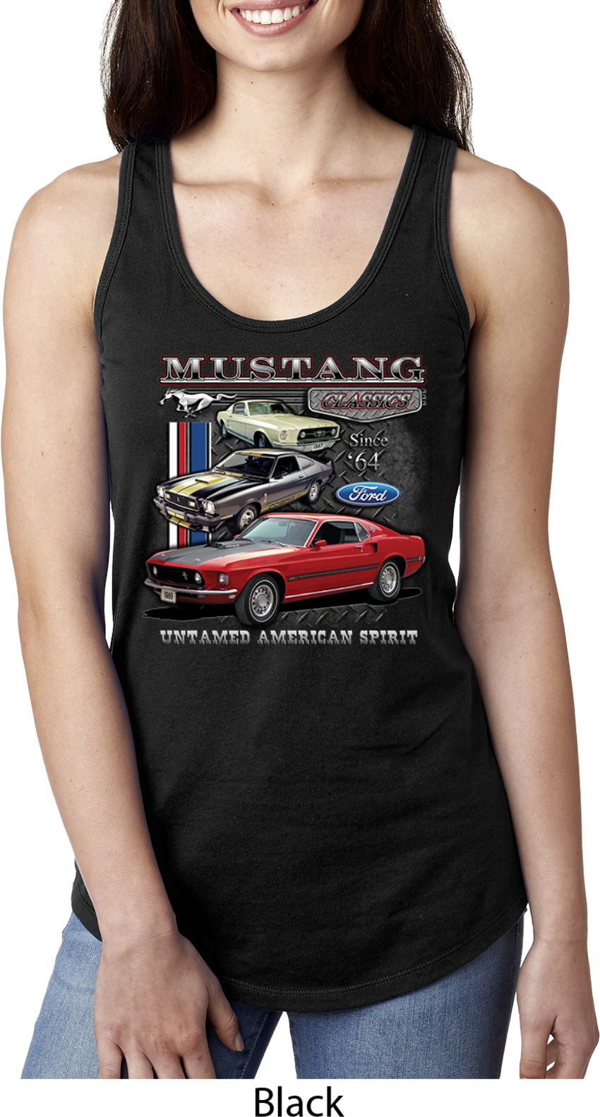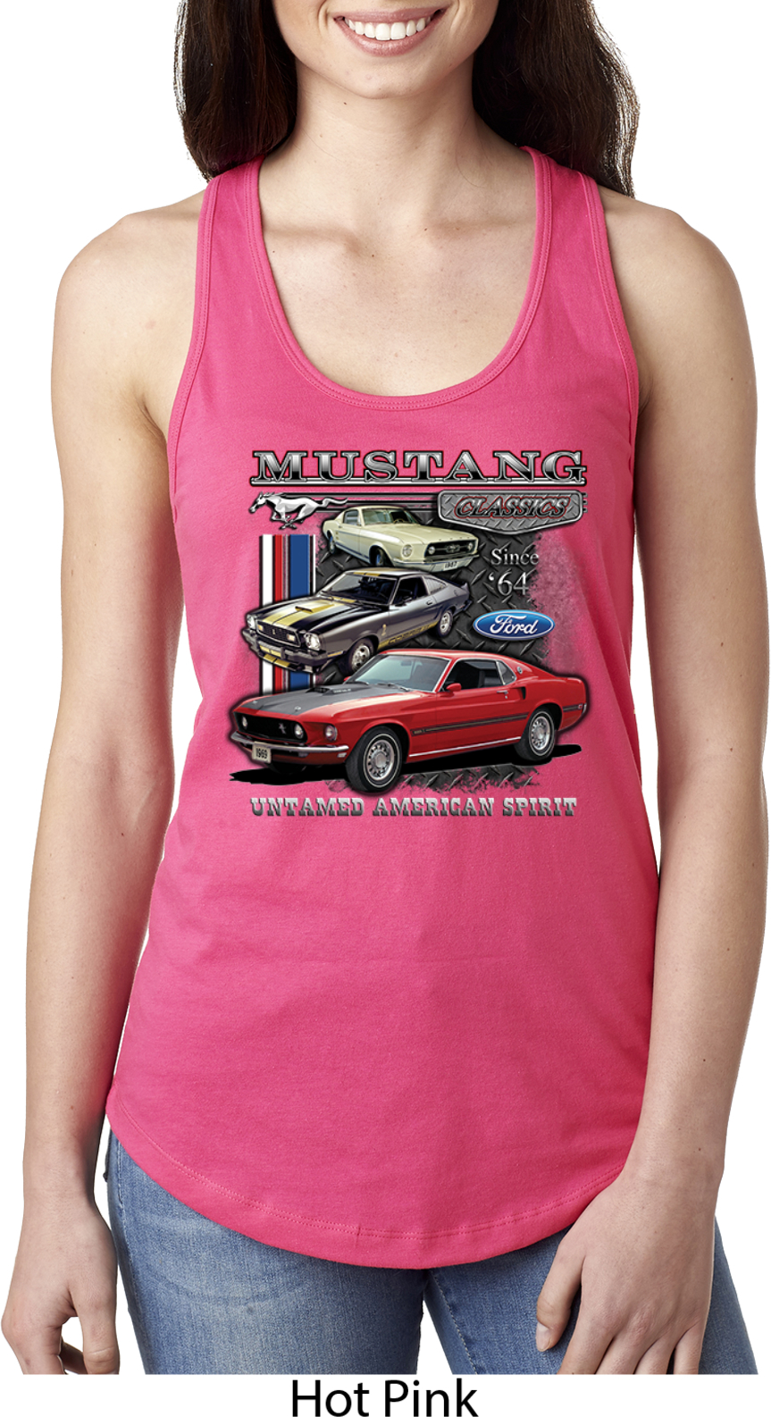 | | Ladies Ford Classic Mustangs Untamed Ideal RacerbackA ladies racerback featuring Ford Mustang Classics since 1964, Untamed American Spirit. Our ladies tank top is made with a blend of cotton/poly. Available in sizes Small through 2XL. Machine wash cold with like colors; dry low heat. ![]() |