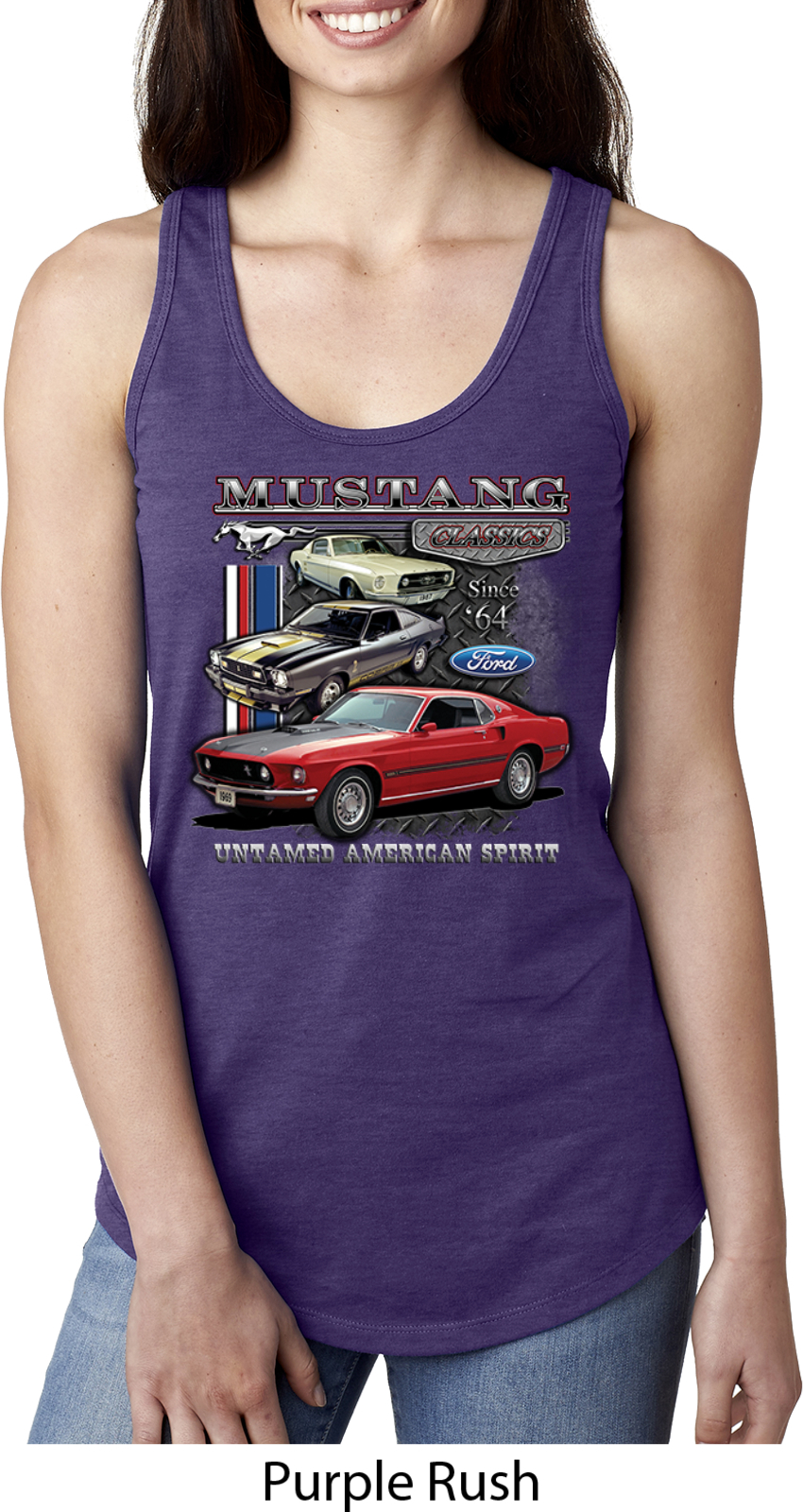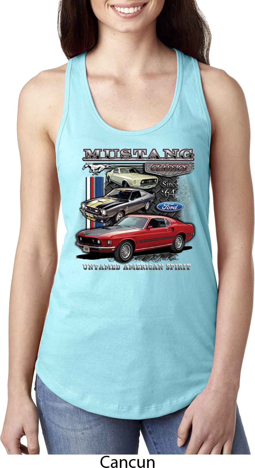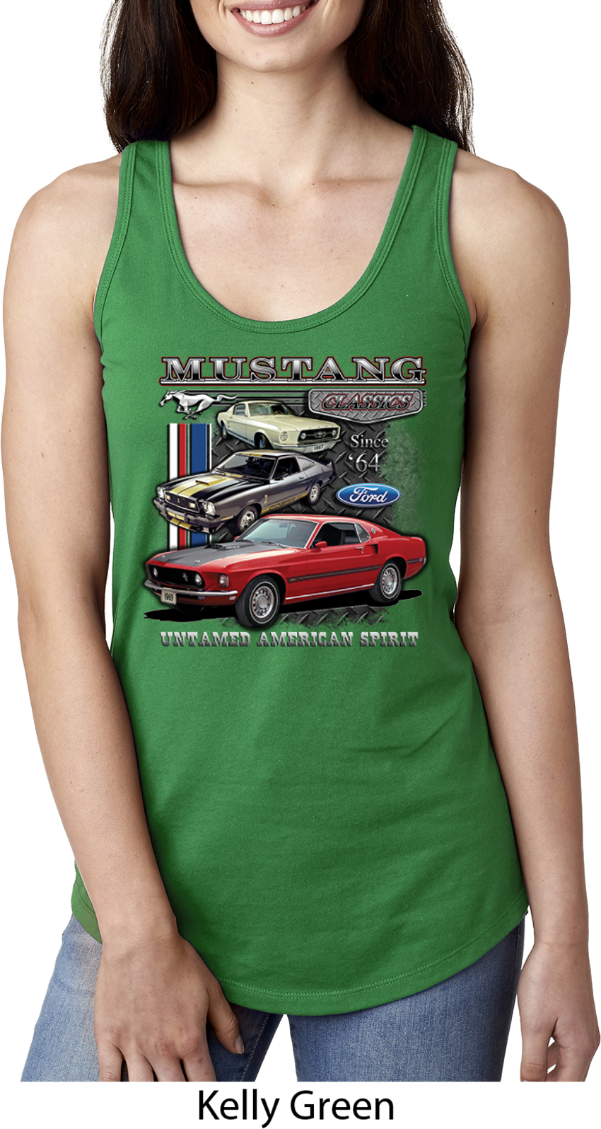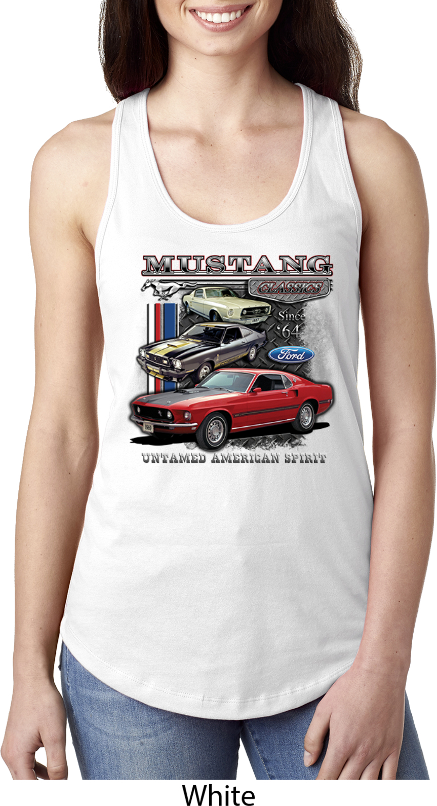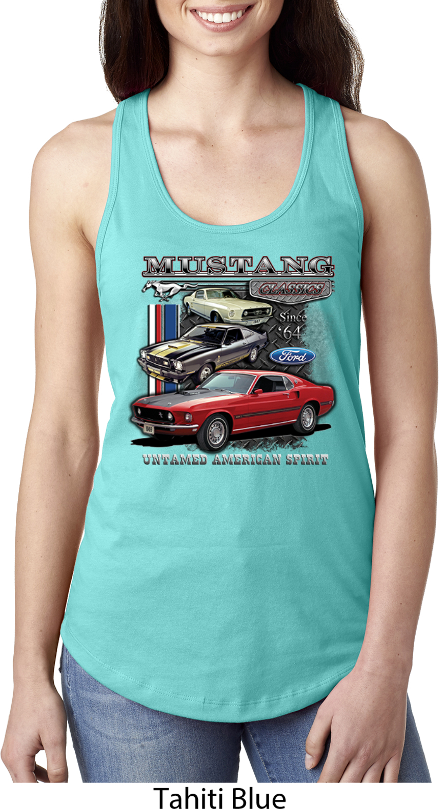 | | Ladies Ford Classic Mustangs Untamed Ideal RacerbackA ladies racerback featuring Ford Mustang Classics since 1964, Untamed American Spirit. Our ladies tank top is made with a blend of cotton/poly. Available in sizes Small through 2XL. Machine wash cold with like colors; dry low heat. ![]() |