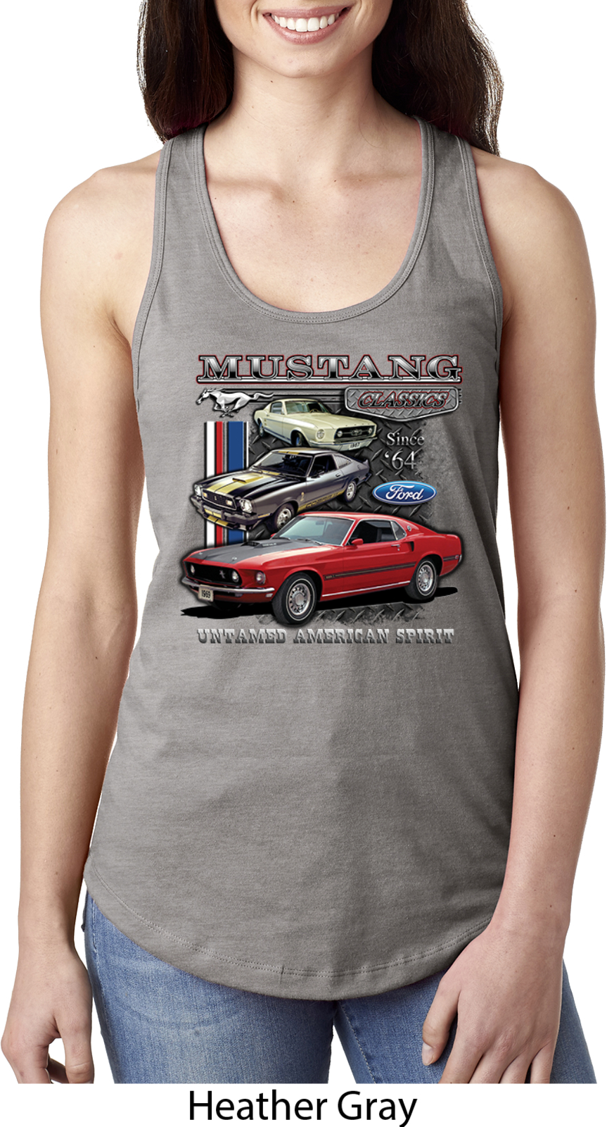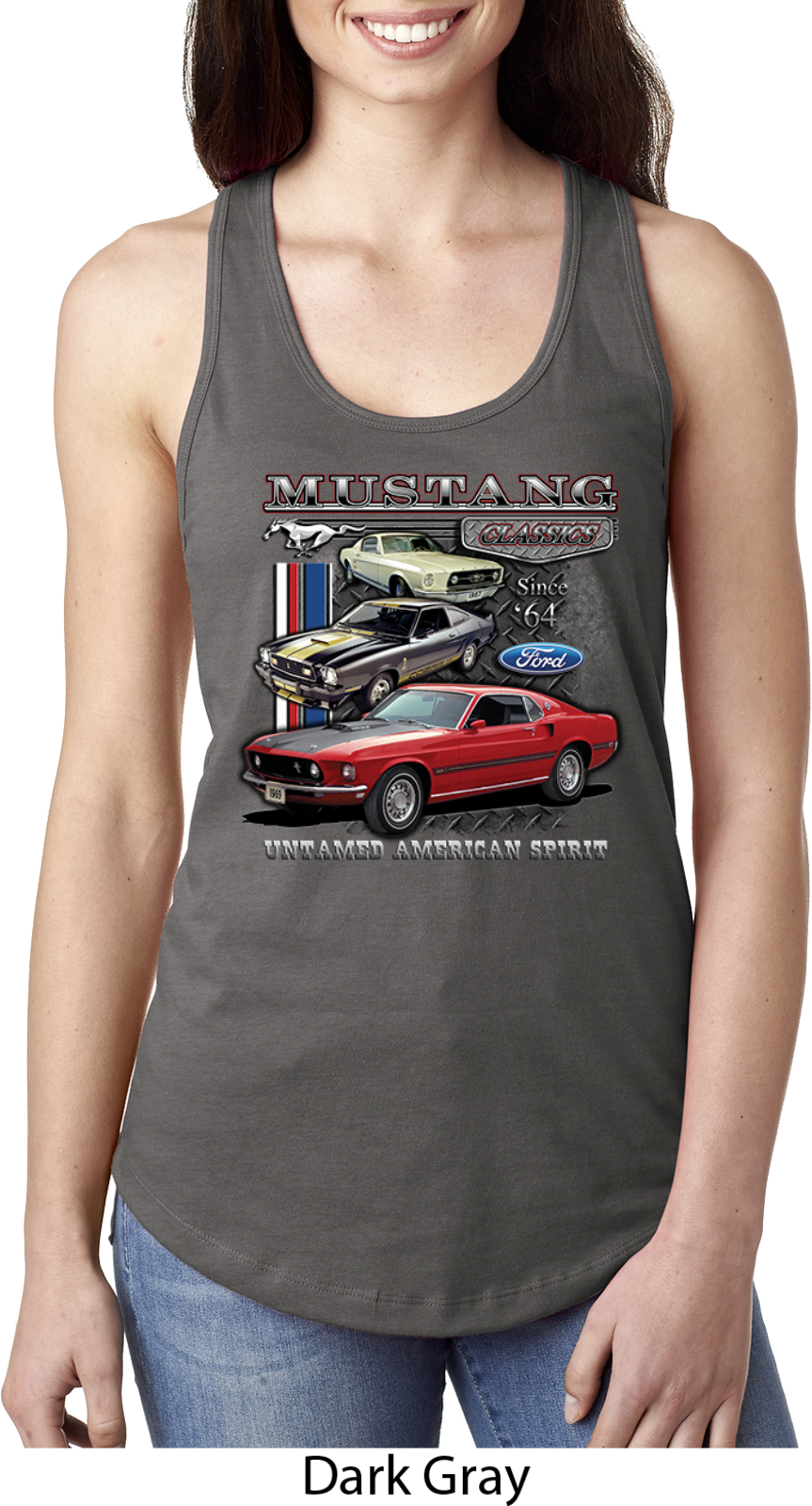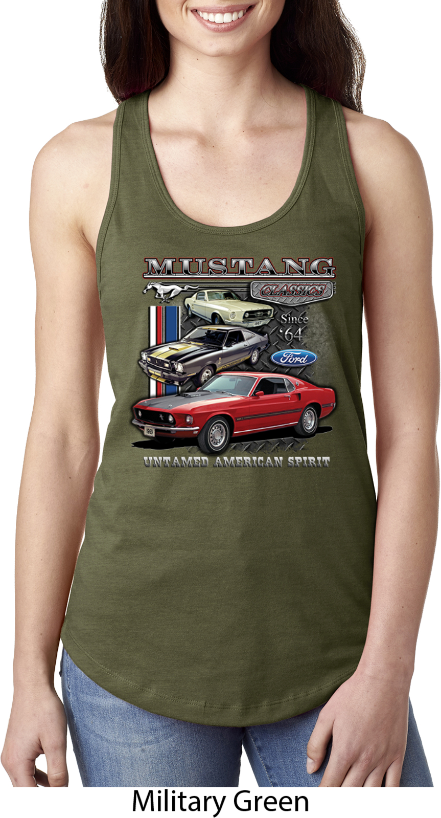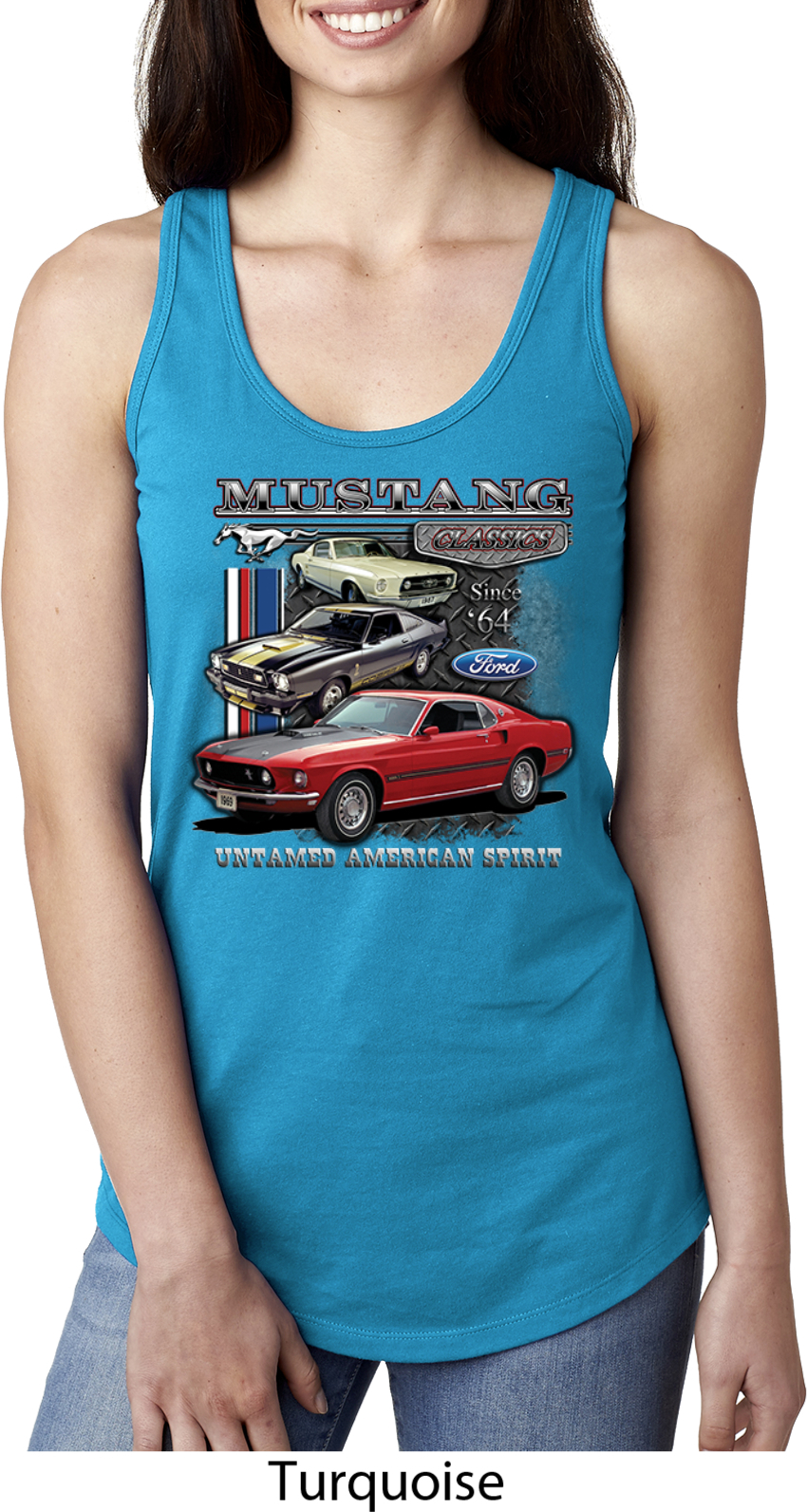 | | Ladies Ford Classic Mustangs Untamed Ideal RacerbackA ladies racerback featuring Ford Mustang Classics since 1964, Untamed American Spirit. Our ladies tank top is made with a blend of cotton/poly. Available in sizes Small through 2XL. Machine wash cold with like colors; dry low heat. ![]() |