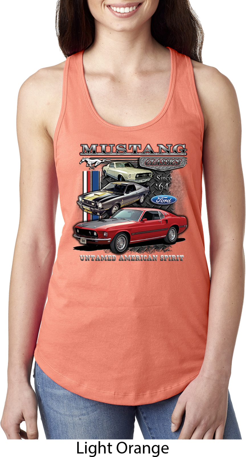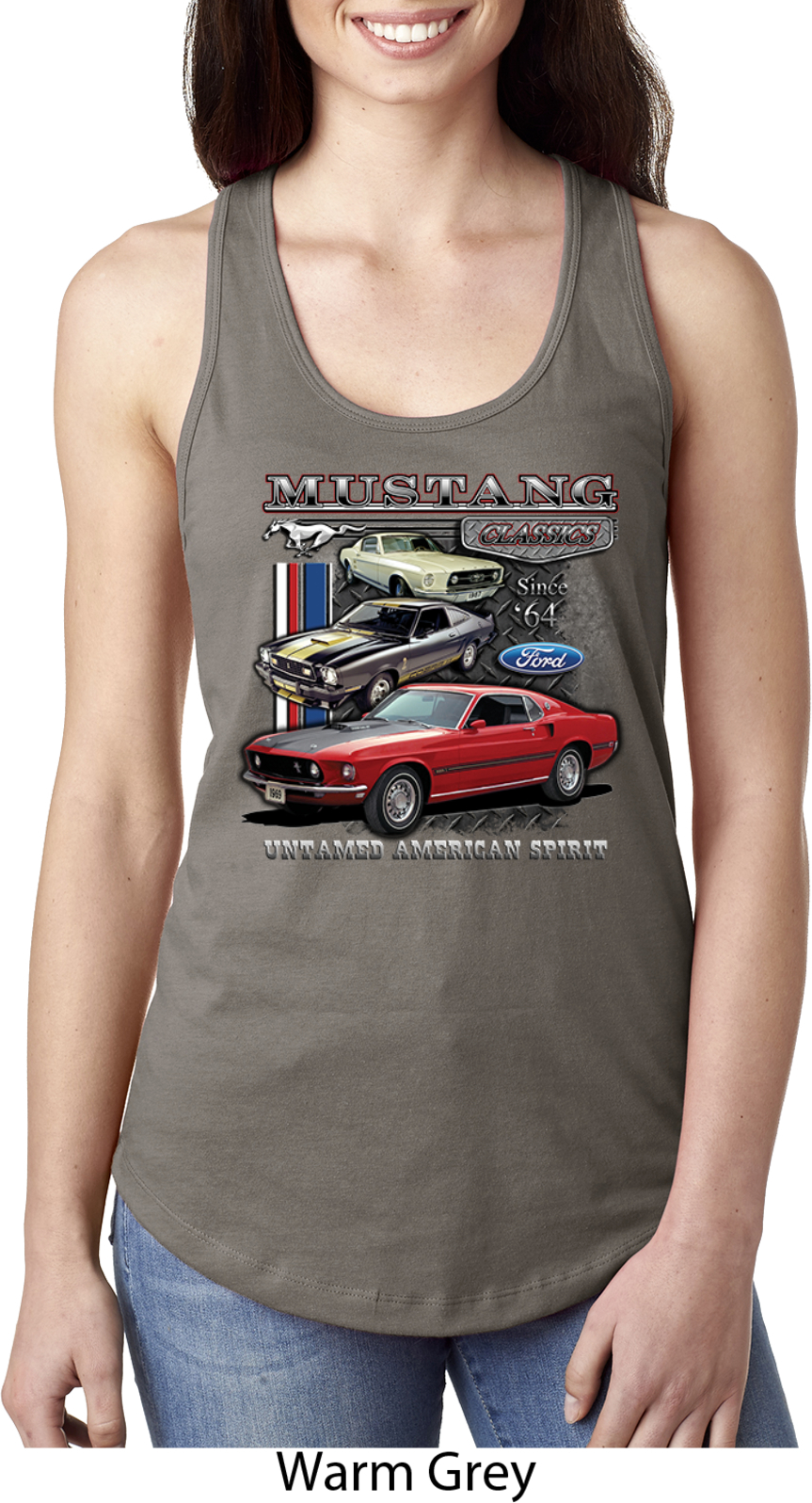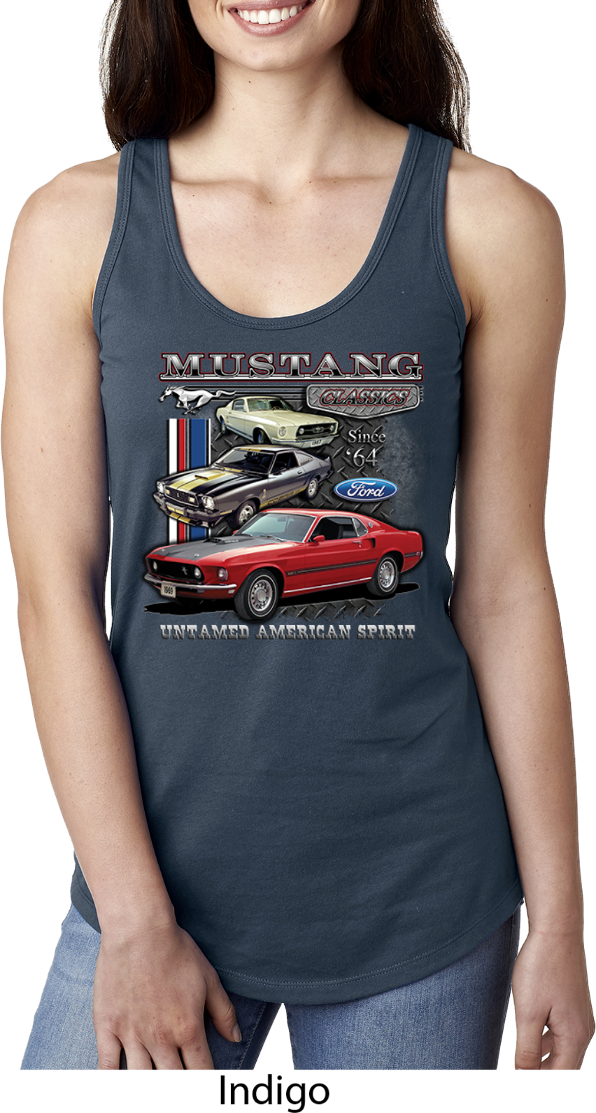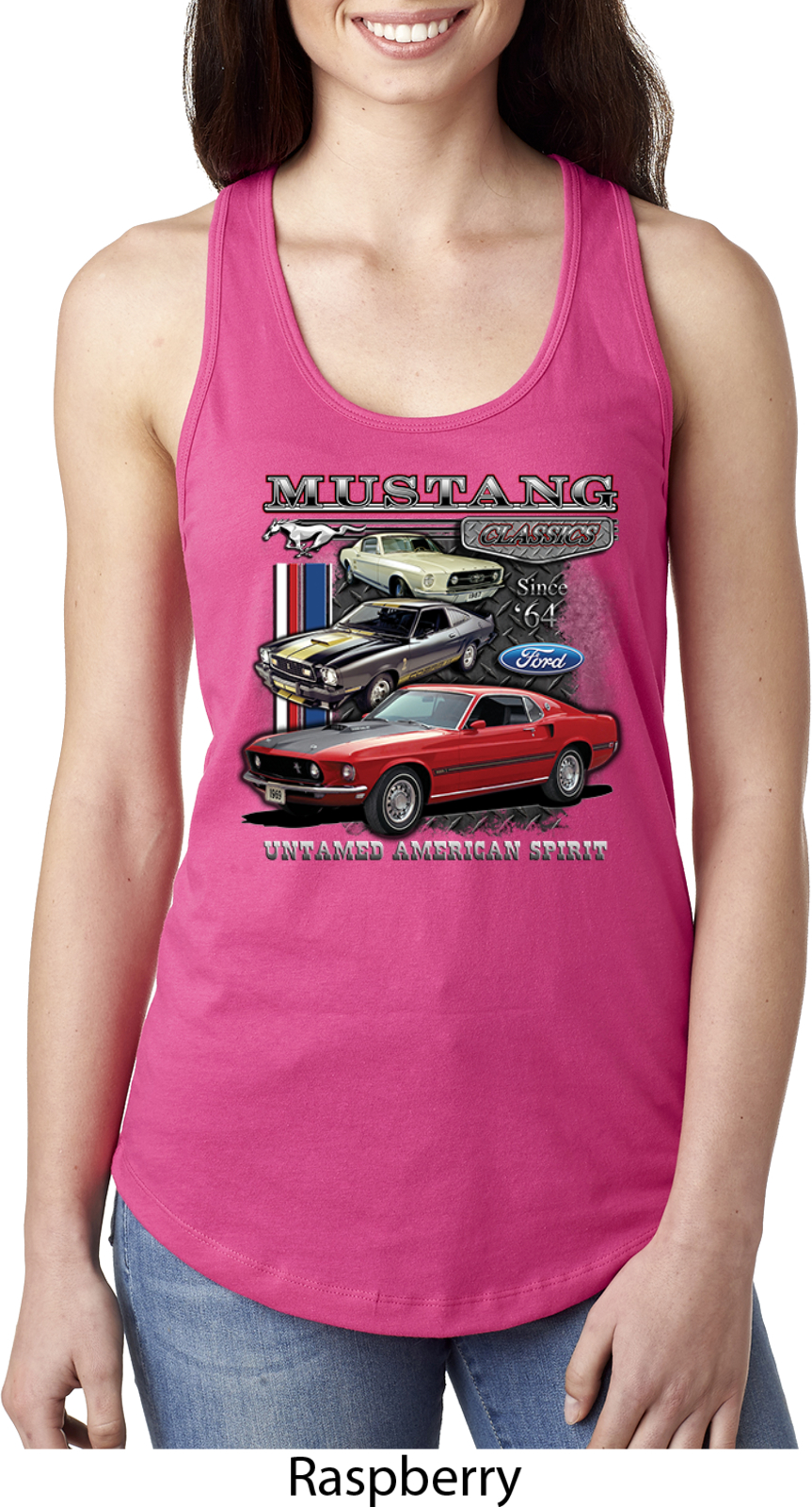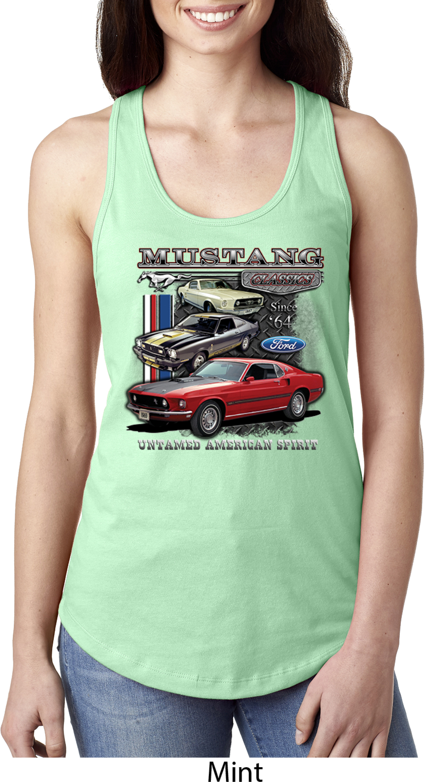 | | Ladies Ford Classic Mustangs Untamed Ideal RacerbackA ladies racerback featuring Ford Mustang Classics since 1964, Untamed American Spirit. Our ladies tank top is made with a blend of cotton/poly. Available in sizes Small through 2XL. Machine wash cold with like colors; dry low heat. ![]() |