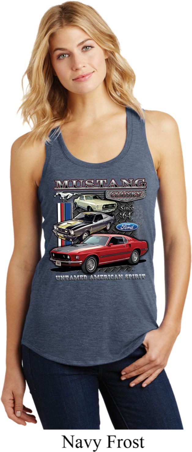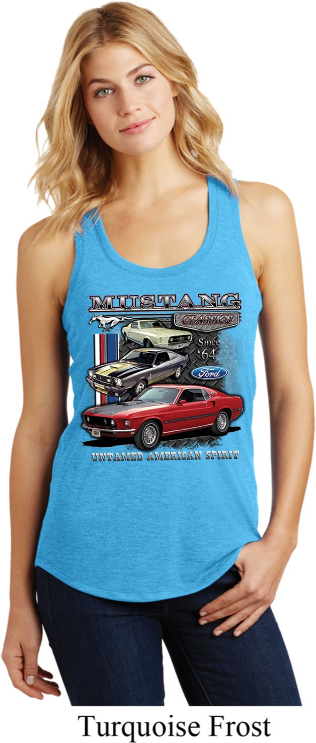 | | Ladies Ford Classic Mustangs Untamed RacerbackA relaxed fit ladies racerback featuring Ford Mustang Classics since 1964, Untamed American Spirit. Our ladies tank top is made with a blend of cotton/poly/rayon. Available in sizes Small through 4XL. Machine wash cold with like colors; dry low heat. ![]() |