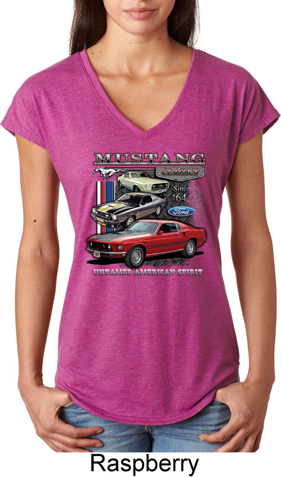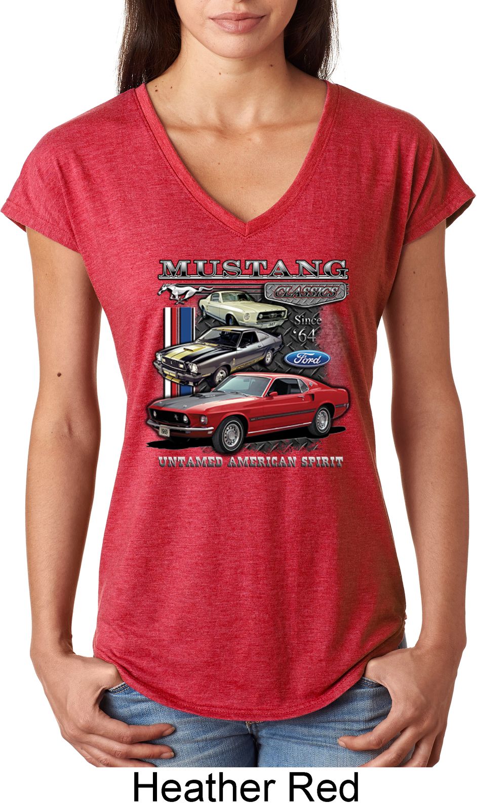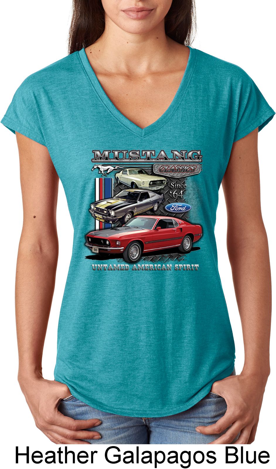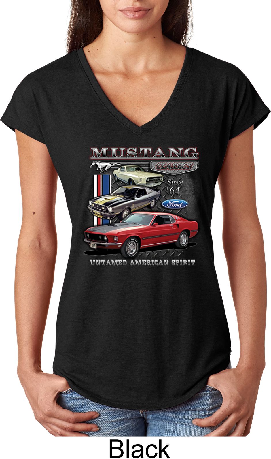 | | Ladies Ford Classic Mustangs Untamed Tri Blend V-neckA soft ladies v-neck featuring Ford Mustang Classics since 1964, Untamed American Spirit. Our ladies shirt is made with a blend of cotton/poly/rayon. Available in sizes Small through 2XL. Machine wash cold with like colors; dry low heat. ![]() |