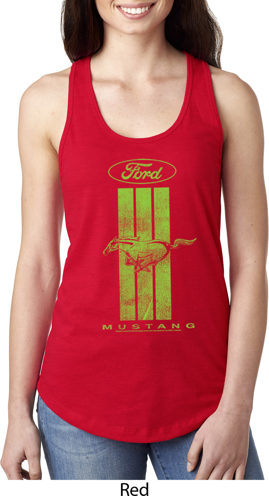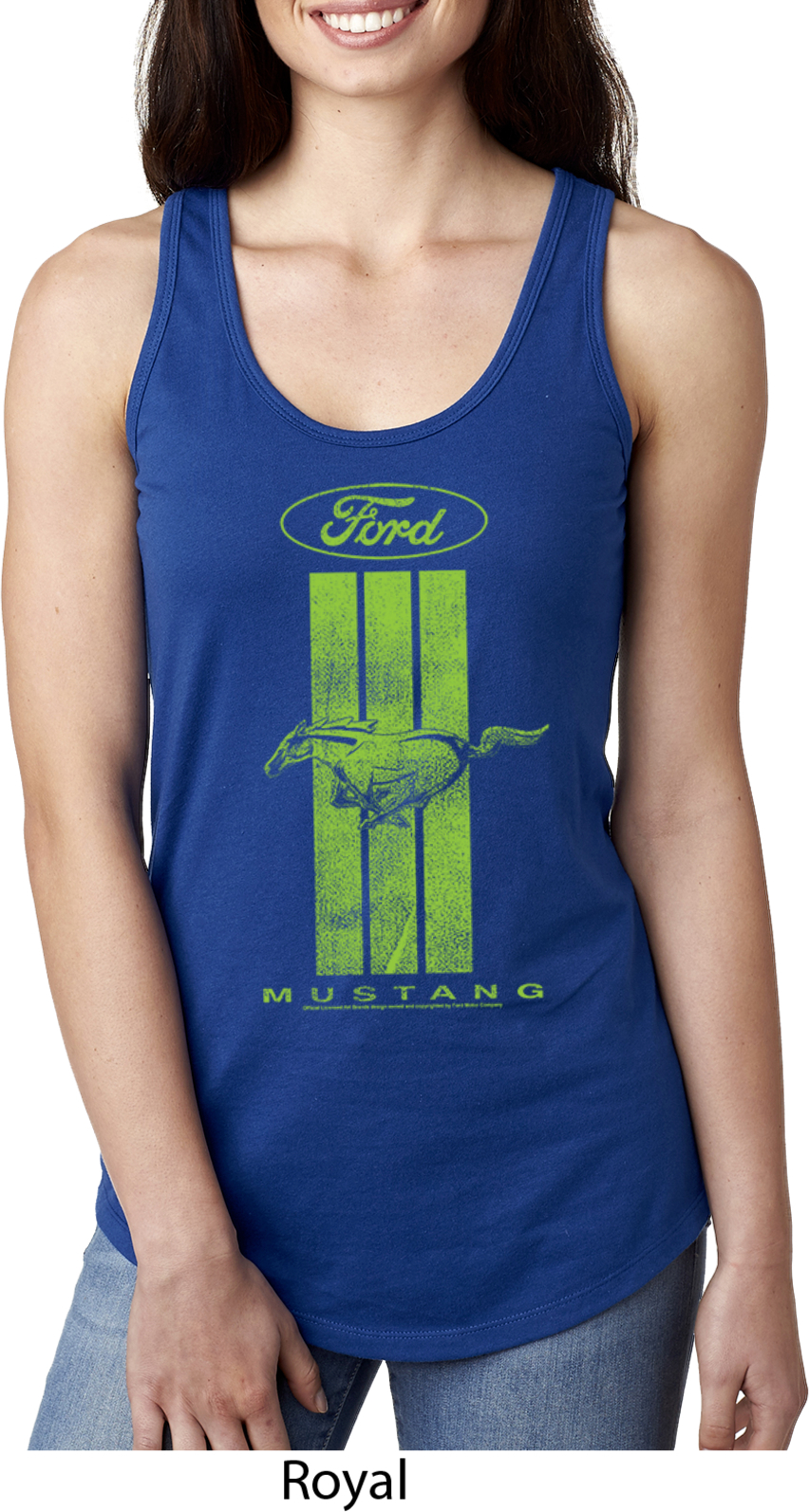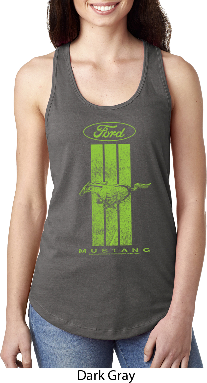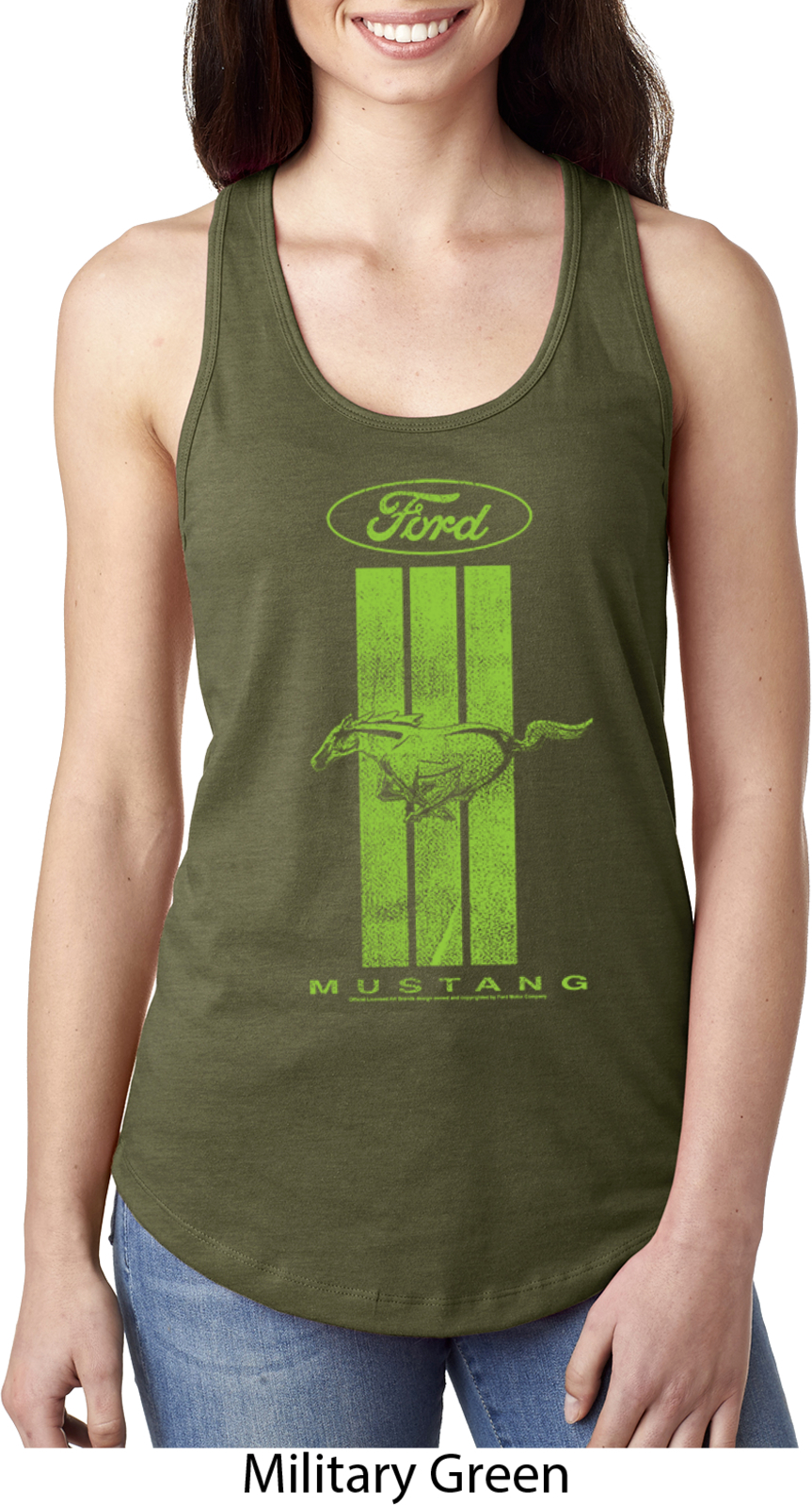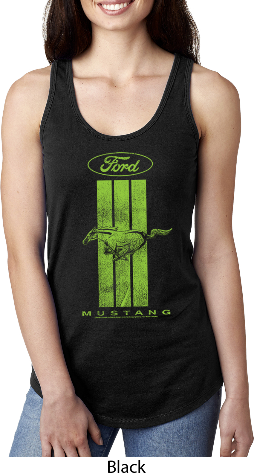 | | Ladies Ford Green Mustang Stripe Ideal RacerbackA ladies racerback featuring a green Ford Mustang Stripe. Our ladies tank top is made with a blend of cotton/poly. A perfect gift for all who drive Ford Mustangs! Available in sizes Small through 2XL. Machine wash cold with like colors; dry low heat. ![]() |