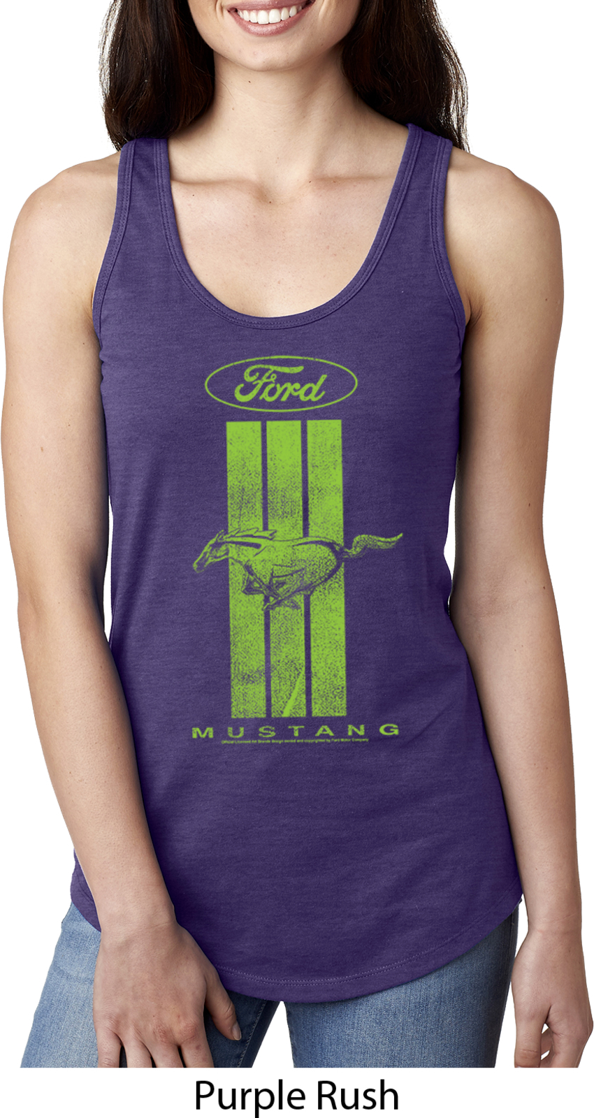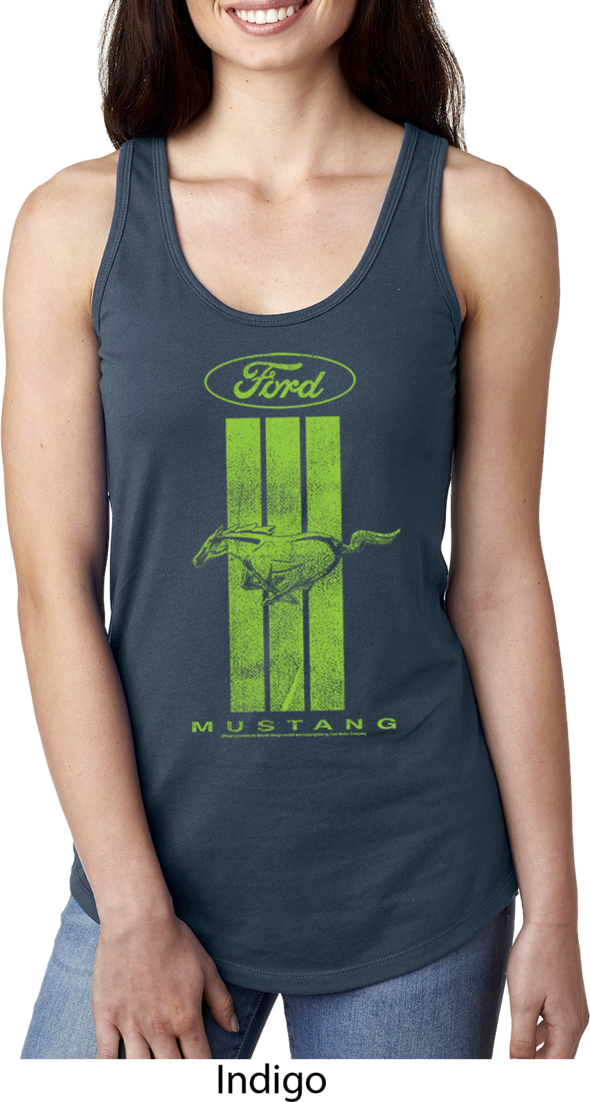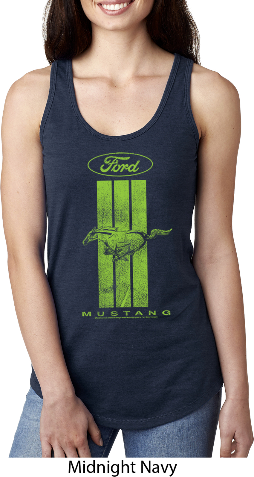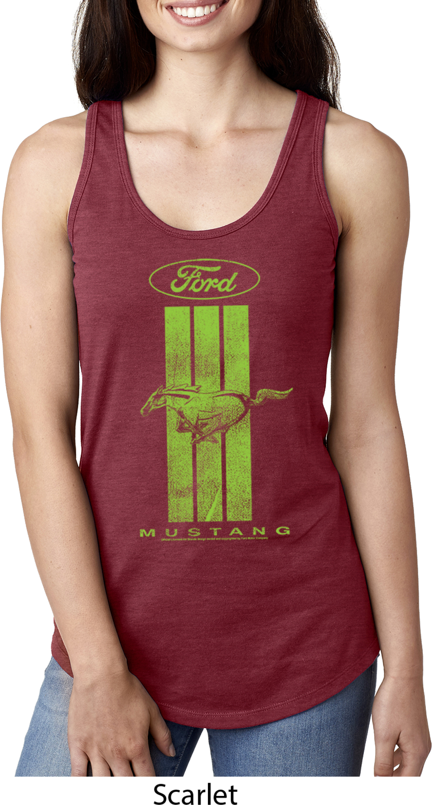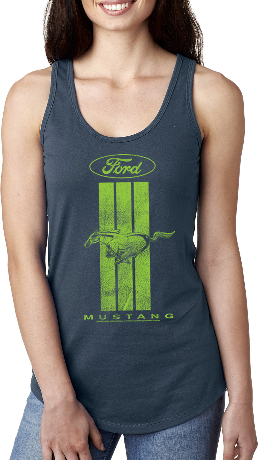 | | Ladies Ford Green Mustang Stripe Ideal RacerbackA ladies racerback featuring a green Ford Mustang Stripe. Our ladies tank top is made with a blend of cotton/poly. A perfect gift for all who drive Ford Mustangs! Available in sizes Small through 2XL. Machine wash cold with like colors; dry low heat. ![]() |