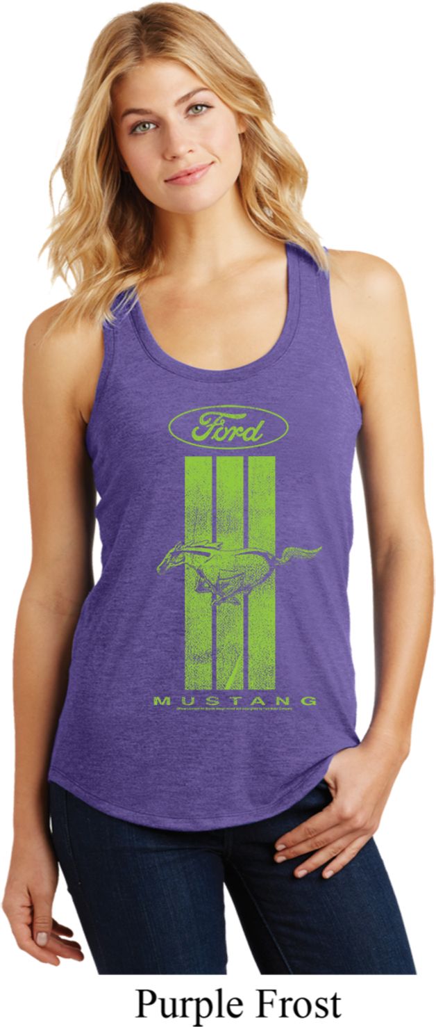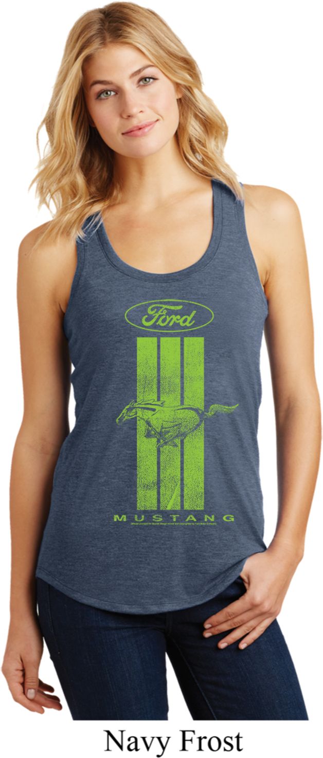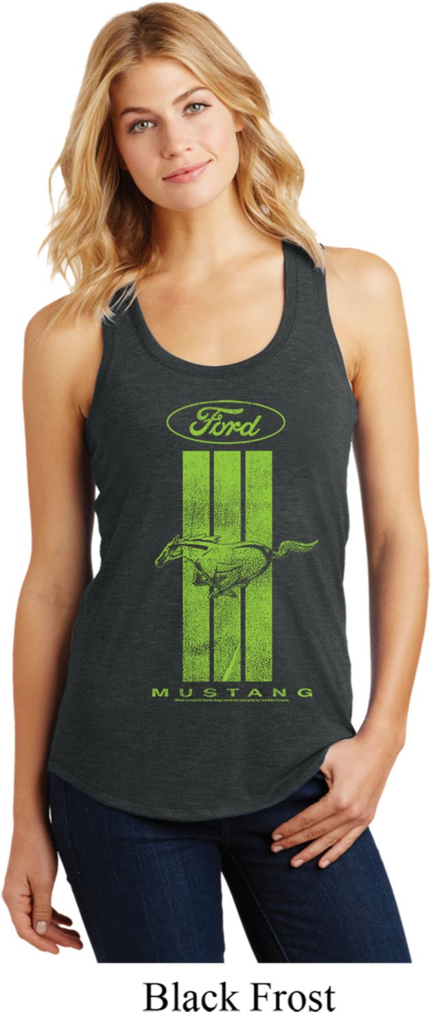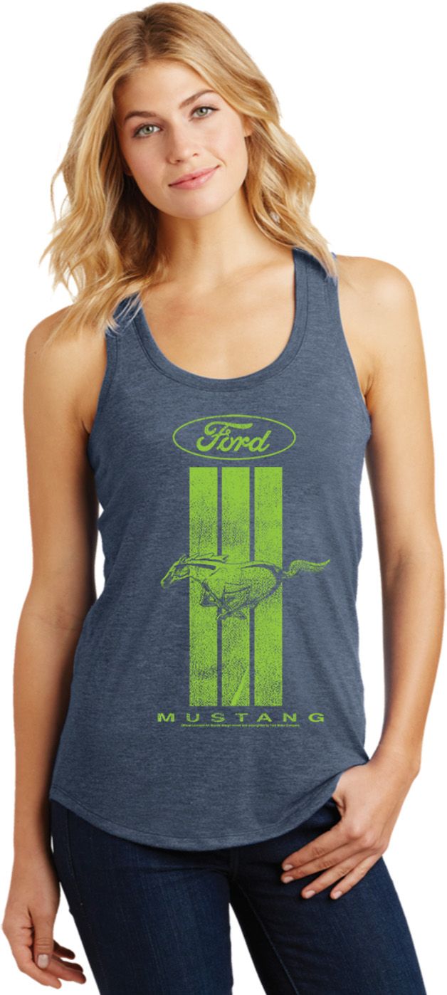 | | Ladies Ford Green Mustang Stripe RacerbackA relaxed fit ladies racerback featuring a green Ford Mustang Stripe. Our ladies tank top is made with a blend of cotton/poly/rayon. A perfect gift for all who drive Ford Mustangs! Available in sizes Small through 4XL. Machine wash cold with like colors; dry low heat. ![]() |