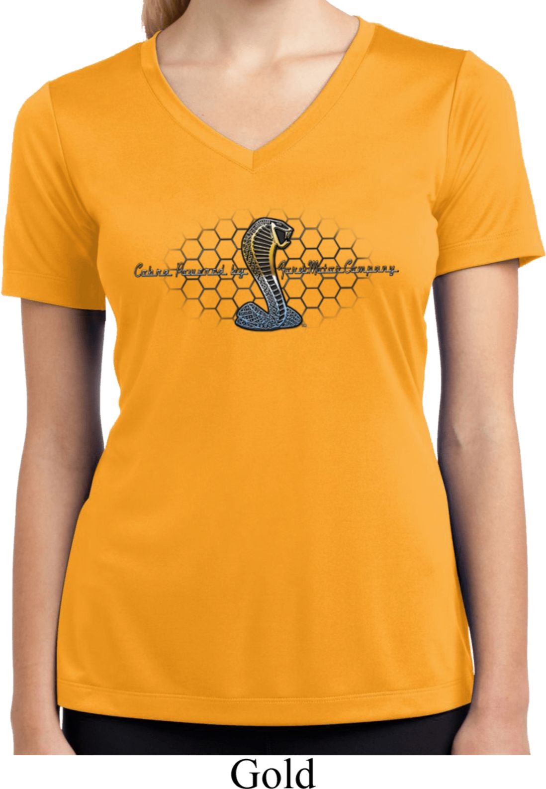 | | Ladies Ford Shirt Powered By Cobra Moisture Wicking V-neck ShirtLadies Ford Shirt Powered By Cobra Moisture Wicking V-neck Shirt A honeycomb grille behind Cobra By Ford Motor Company 100% polyester Available in Ladies Small, Ladies Medium, Ladies Large, Ladies XL, Ladies 2XL & Ladies 3XL Also available in colors Carolina Blue, Deep Orange, Gold, Hot Coral, Lime, Pink Orchid, Pink Raspberry, Red, Tropic Blue, and White |