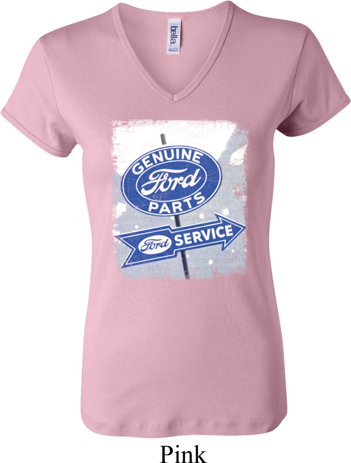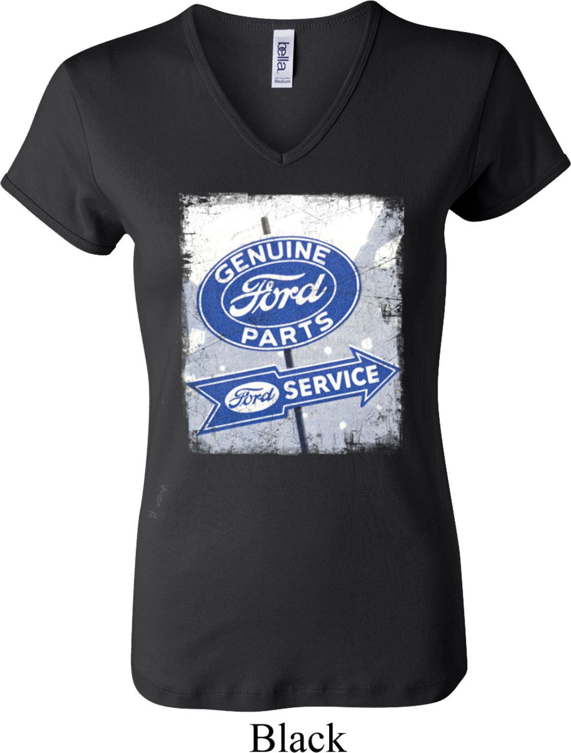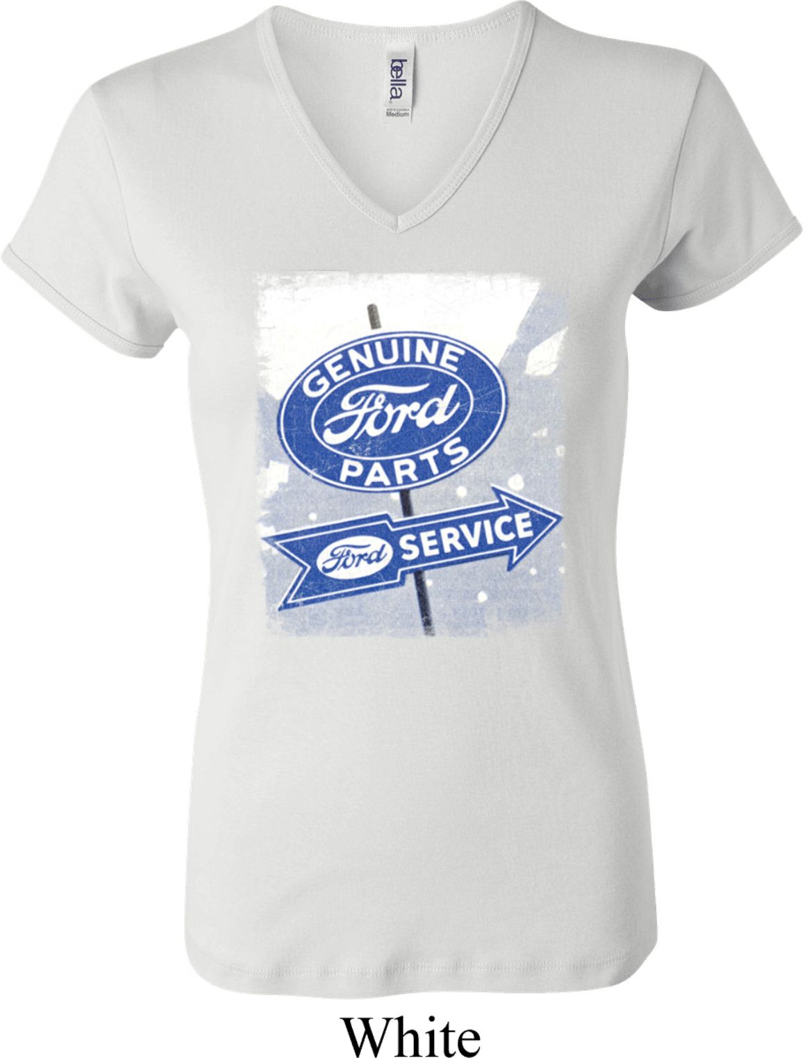 Ladies Ford Shirt Vintage Sign Genuine Ford Parts V-neck Tee T-Shirt  | Usually ships in 3-4 business days