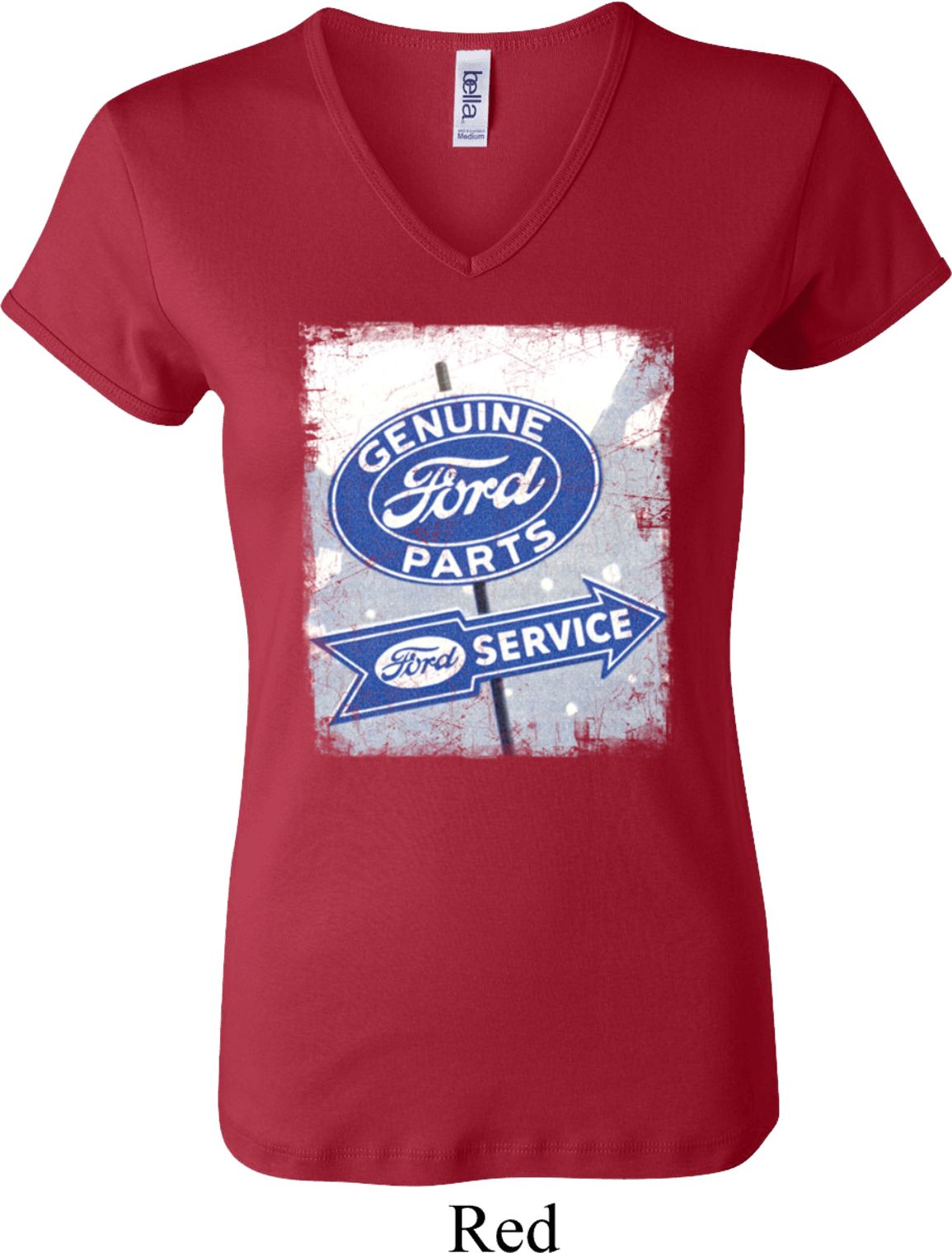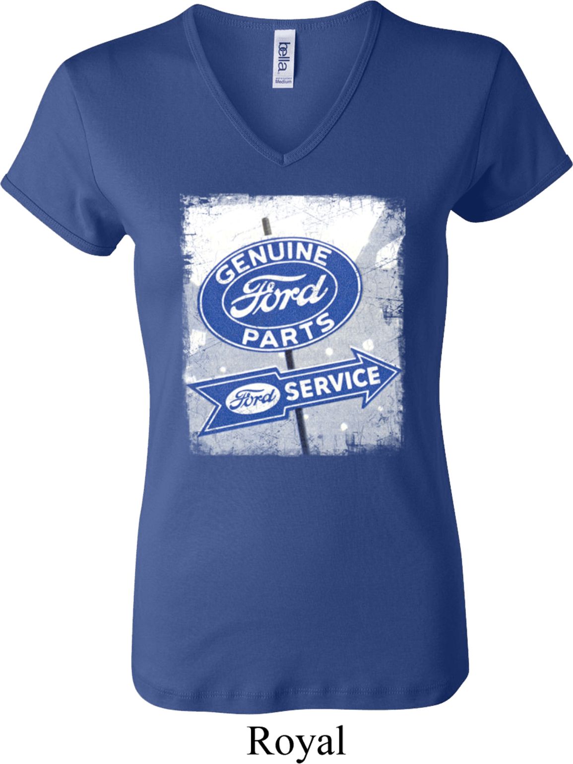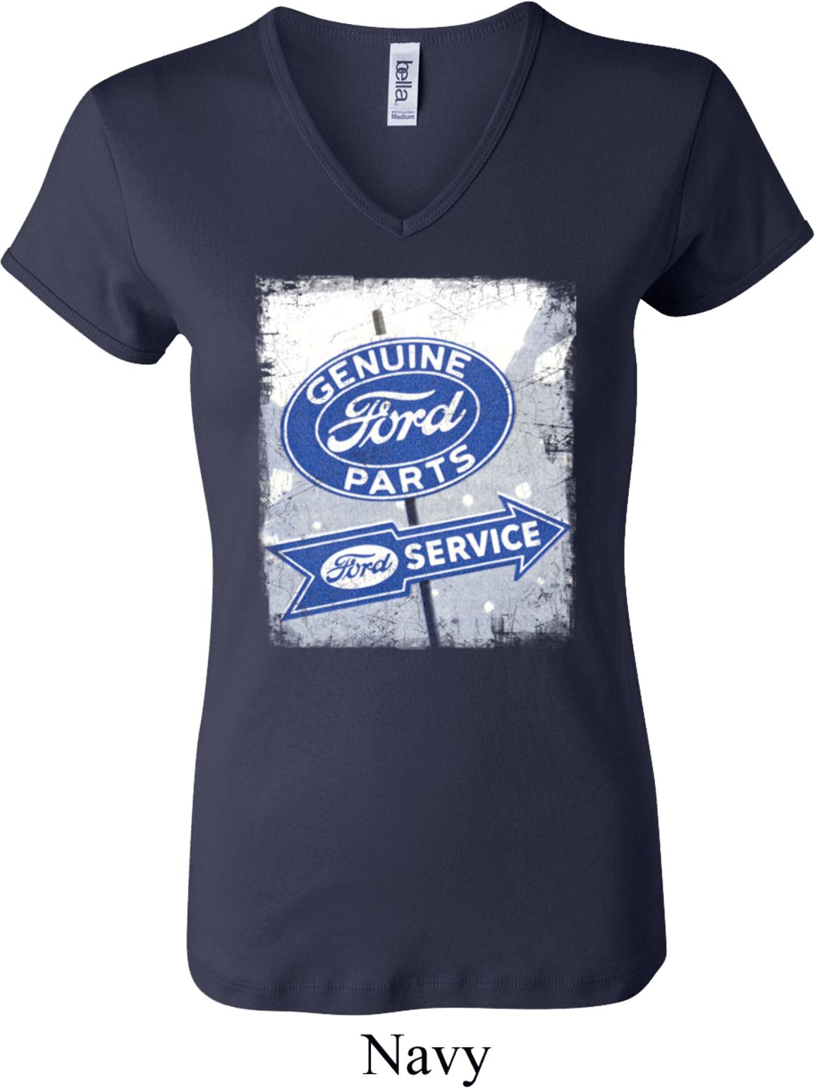 Ladies Ford Shirt Vintage Sign Genuine Ford Parts V-neck Tee T-Shirt  | Usually ships in 3-4 business days