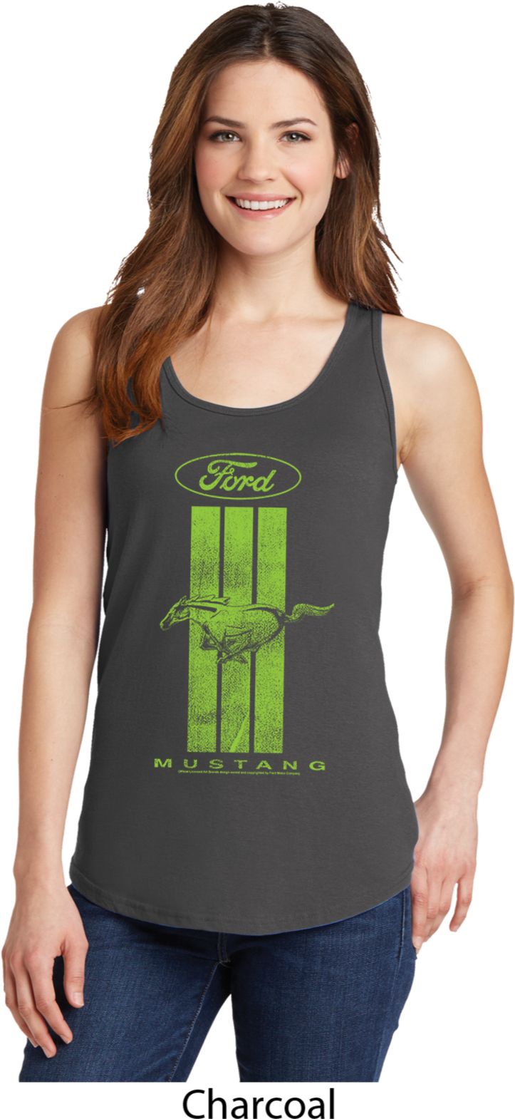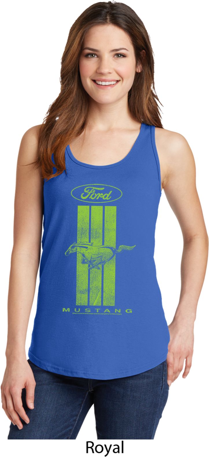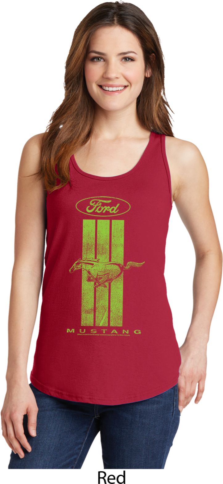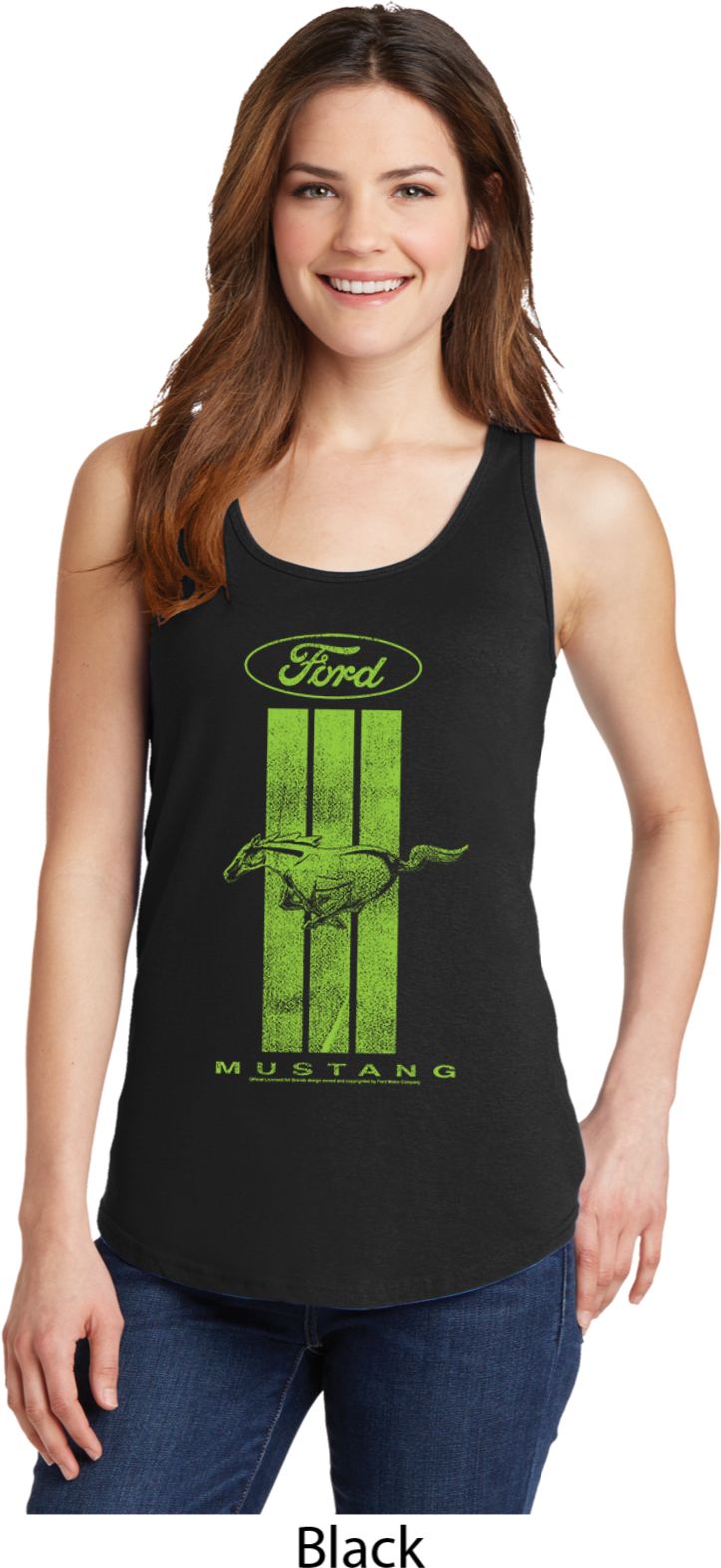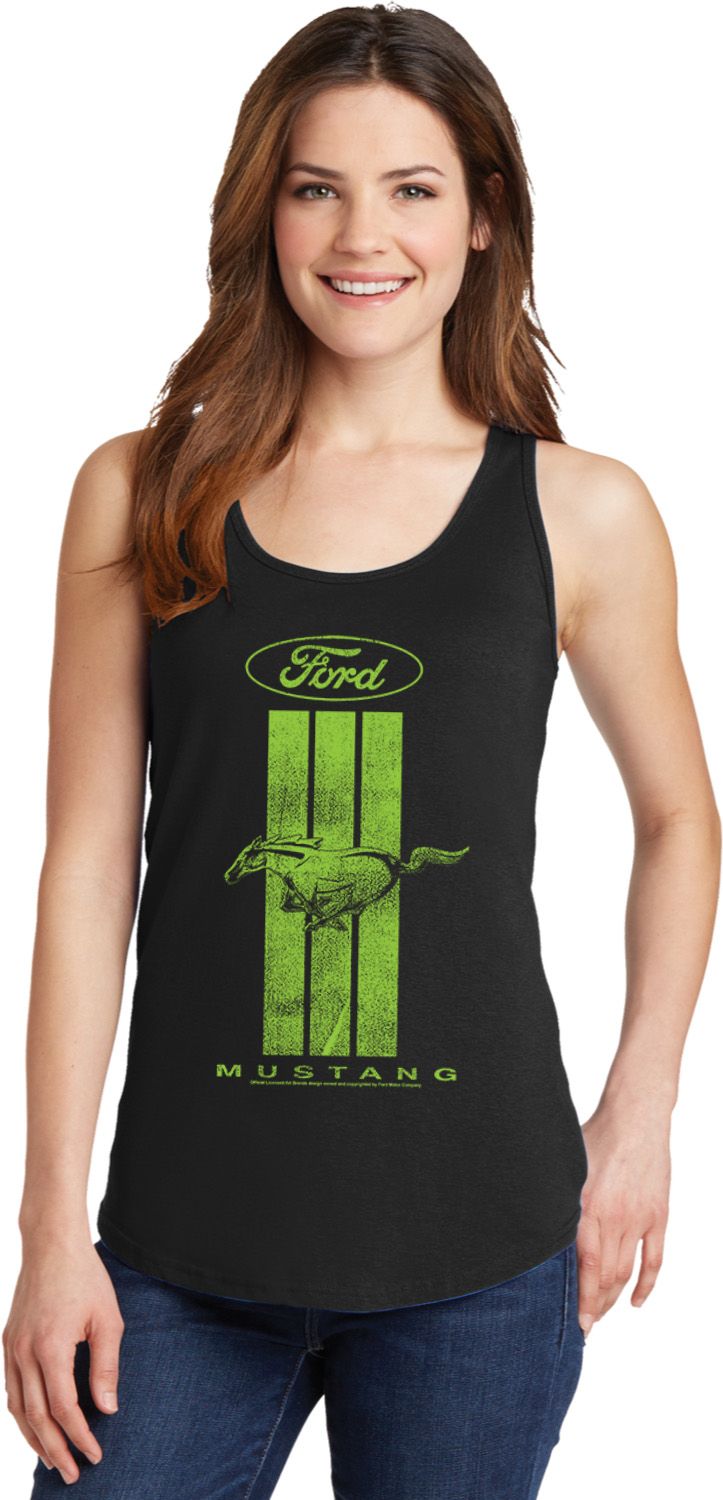 | | Ladies Ford Tank Top Green Mustang Stripe TanktopA relaxed fit ladies tanktop featuring a green Ford Mustang Stripe. Our ladies tank top is made of 100% cotton. (Neons and Heathers are made with a blend of cotton/poly) A perfect gift for all who drive Ford Mustangs! Available in sizes Small through 4XL. Machine wash cold with like colors; dry low heat. ![]() |