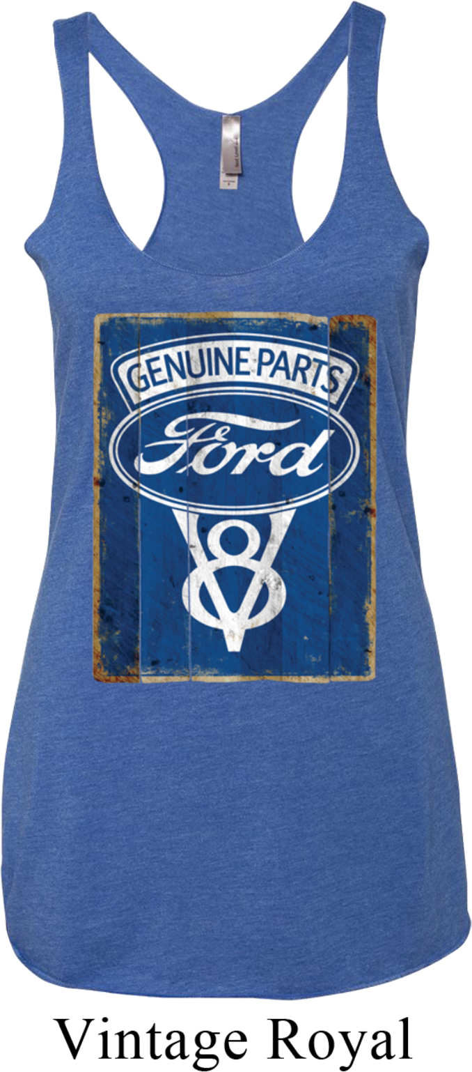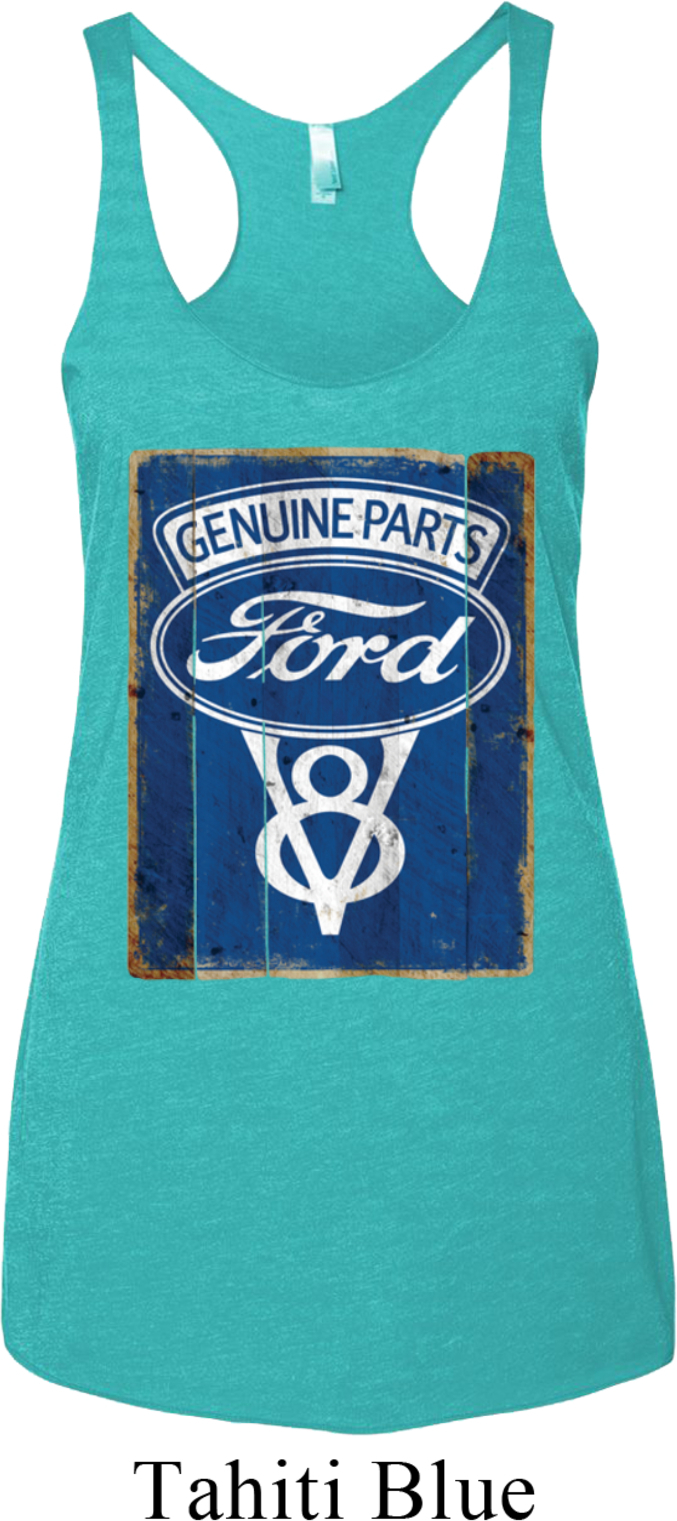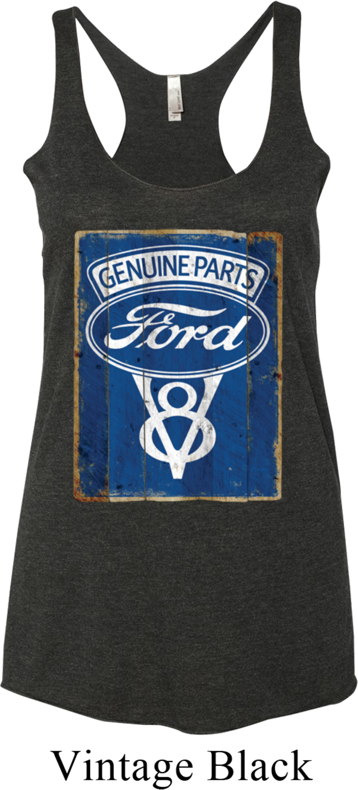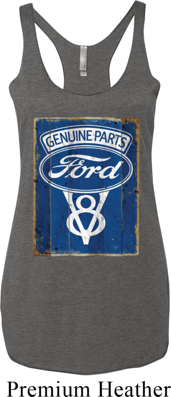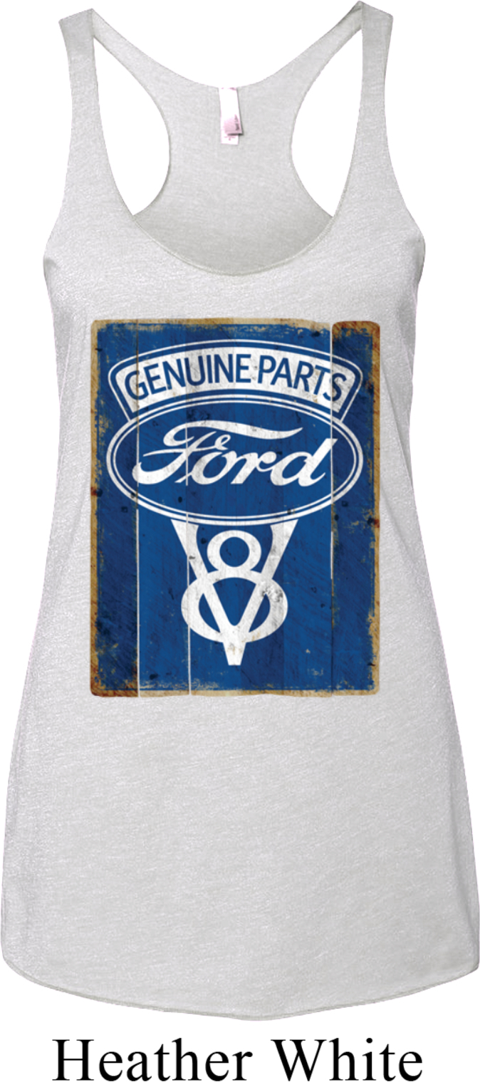 | | Ladies Ford Tanktop V8 Genuine Ford Parts Tri Blend Racerback Tank TopLadies Ford Tanktop V8 Genuine Ford Parts Tri Blend Racerback Tank Top A cotton/poly/rayon blend Available in Ladies XS, Ladies Small, Ladies Medium, Ladies Large & Ladies XL Also available in colors Envy, Heather White, Indigo, Macchiato, Premium Heather, Purple Rush, Tahiti, Venetian Grey, Vintage Black, Vintage Navy, Vintage Pink, Vintage Purple, Vintage Red, and Vintage Royal |