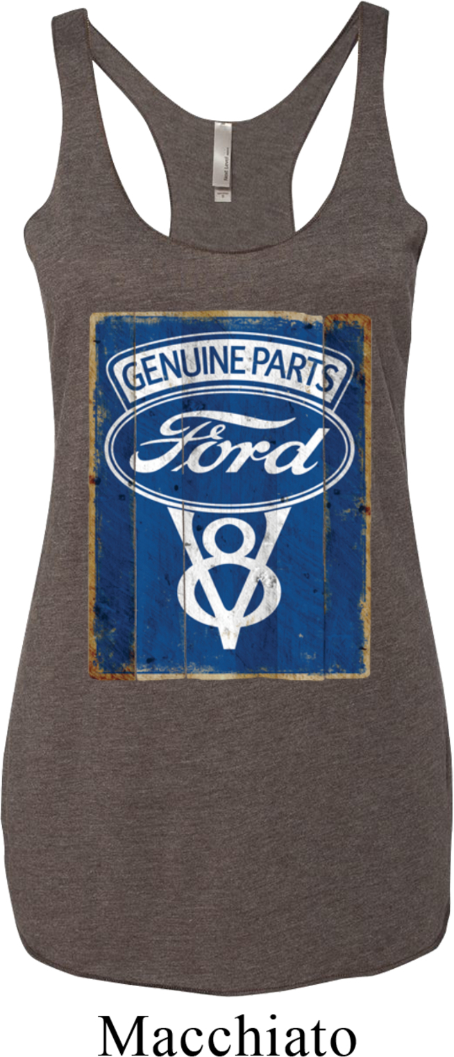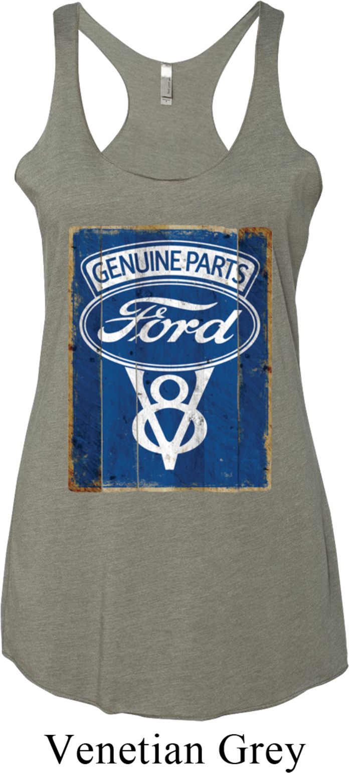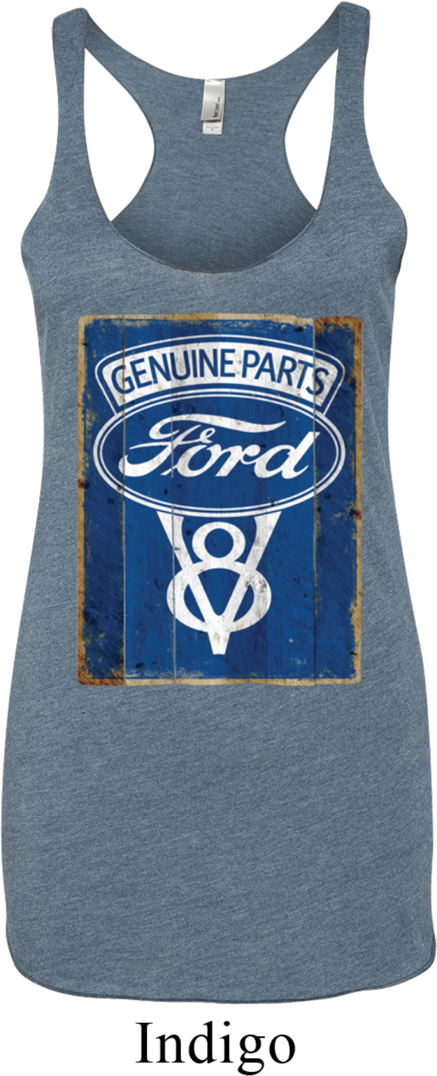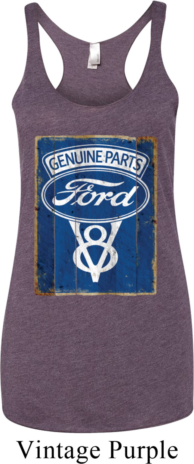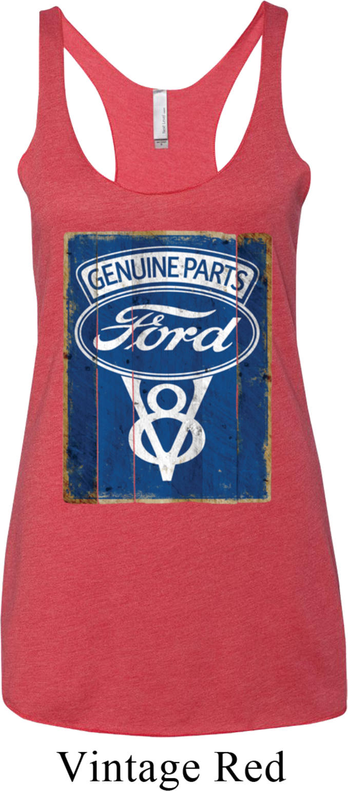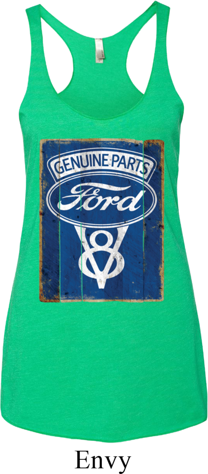 | | Ladies Ford Tanktop V8 Genuine Ford Parts Tri Blend Racerback Tank TopLadies Ford Tanktop V8 Genuine Ford Parts Tri Blend Racerback Tank Top A cotton/poly/rayon blend Available in Ladies XS, Ladies Small, Ladies Medium, Ladies Large & Ladies XL Also available in colors Envy, Heather White, Indigo, Macchiato, Premium Heather, Purple Rush, Tahiti, Venetian Grey, Vintage Black, Vintage Navy, Vintage Pink, Vintage Purple, Vintage Red, and Vintage Royal |