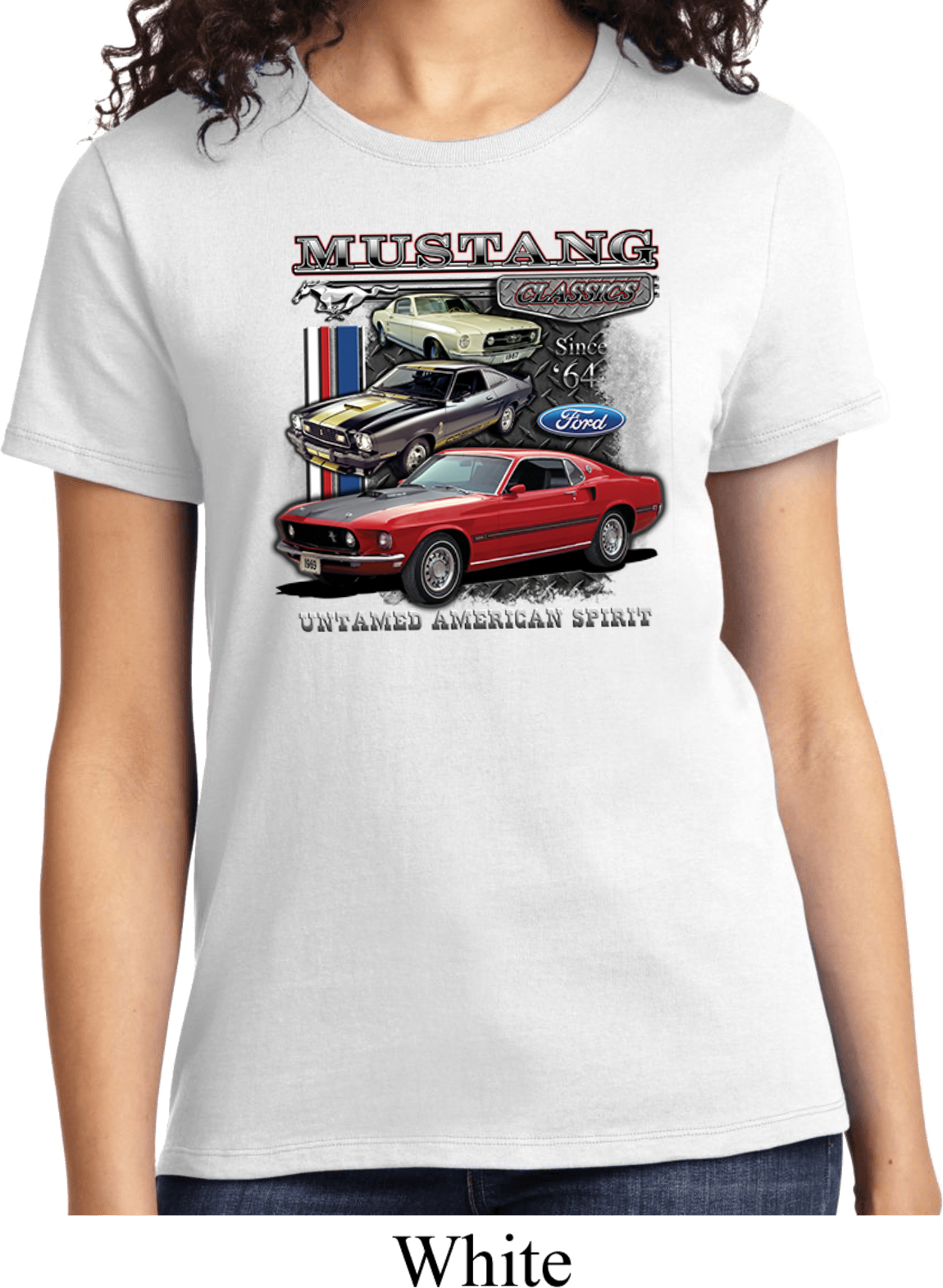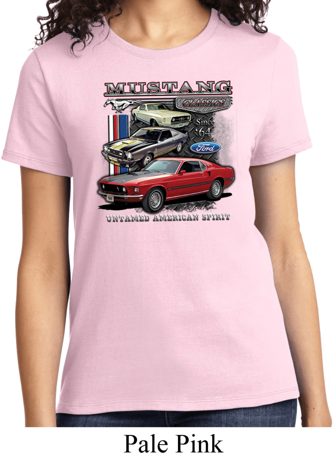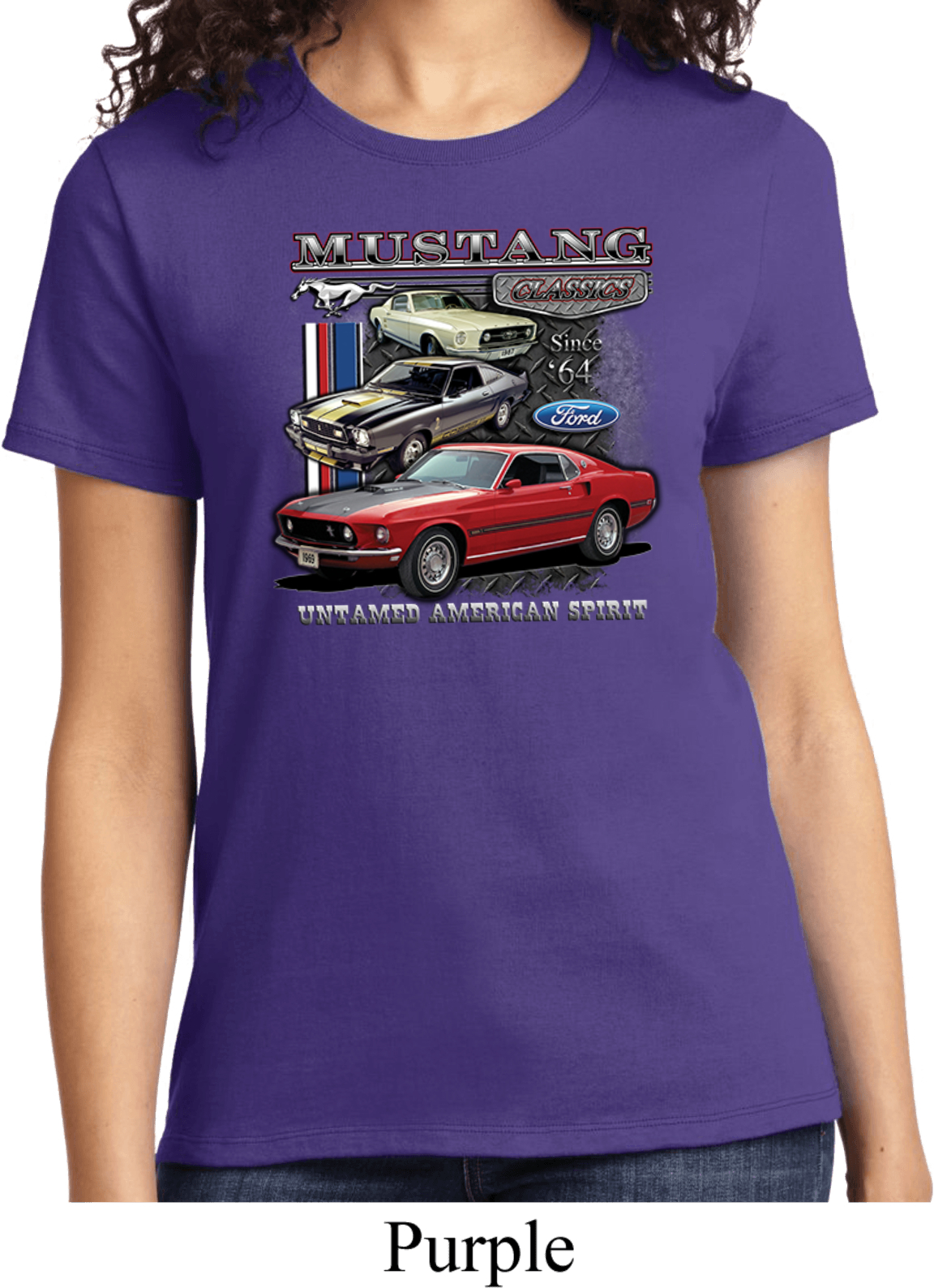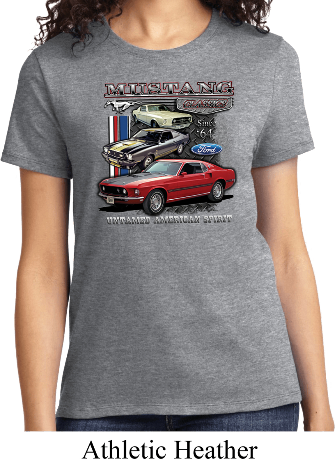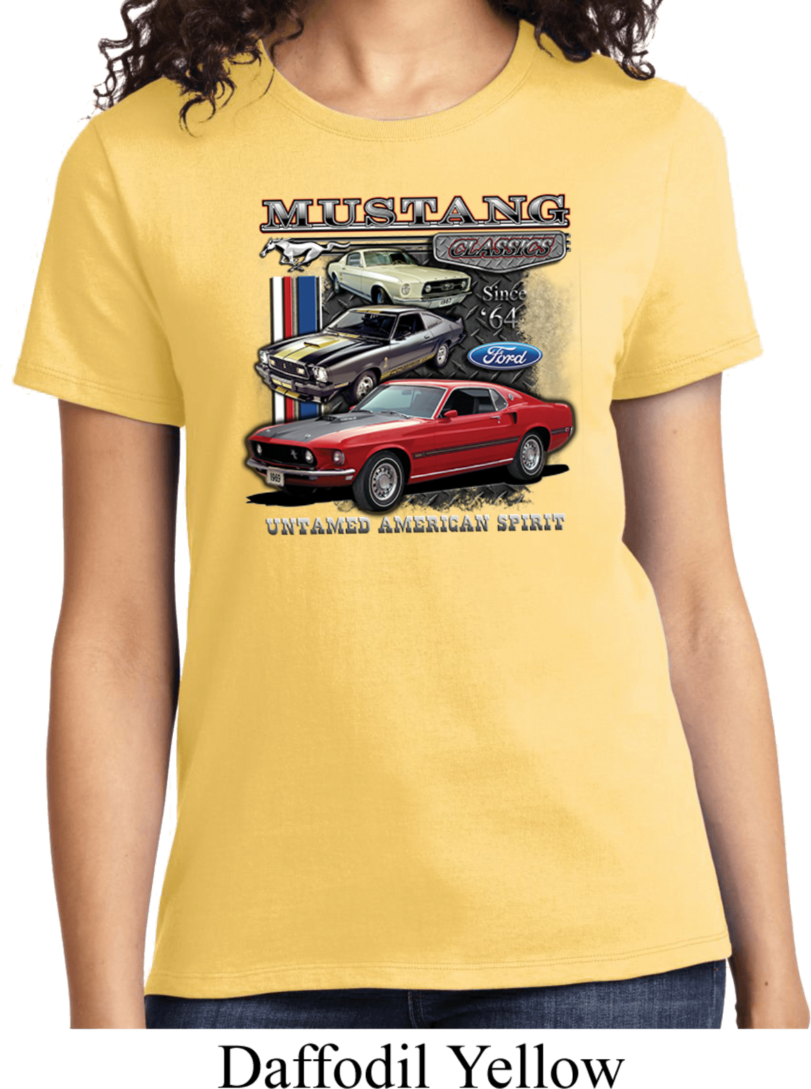 | | Ladies Ford Tee Classic Mustangs Untamed T-shirtA ladies t-shirt featuring Ford Mustang Classics since 1964, Untamed American Spirit. Our ladies shirt is made of 100% cotton. (Athletic Heather is made with a blend of cotton/poly) Available in sizes Small through 4XL. Machine wash cold with like colors; dry low heat. ![]() |