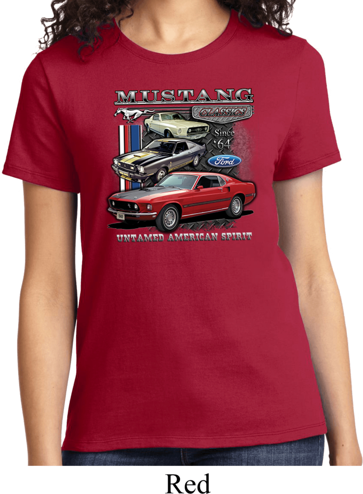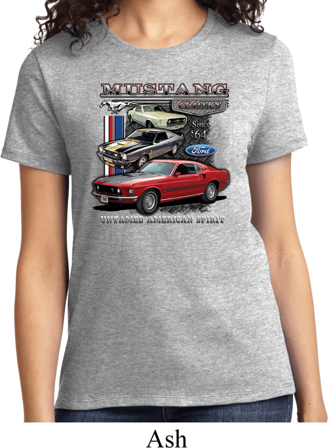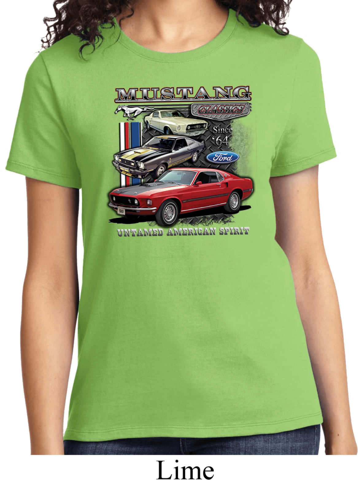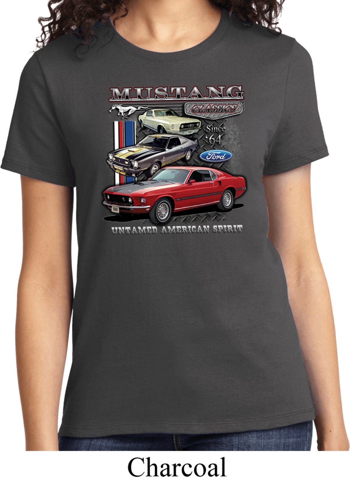 | | Ladies Ford Tee Classic Mustangs Untamed T-shirtA ladies t-shirt featuring Ford Mustang Classics since 1964, Untamed American Spirit. Our ladies shirt is made of 100% cotton. (Athletic Heather is made with a blend of cotton/poly) Available in sizes Small through 4XL. Machine wash cold with like colors; dry low heat. ![]() |