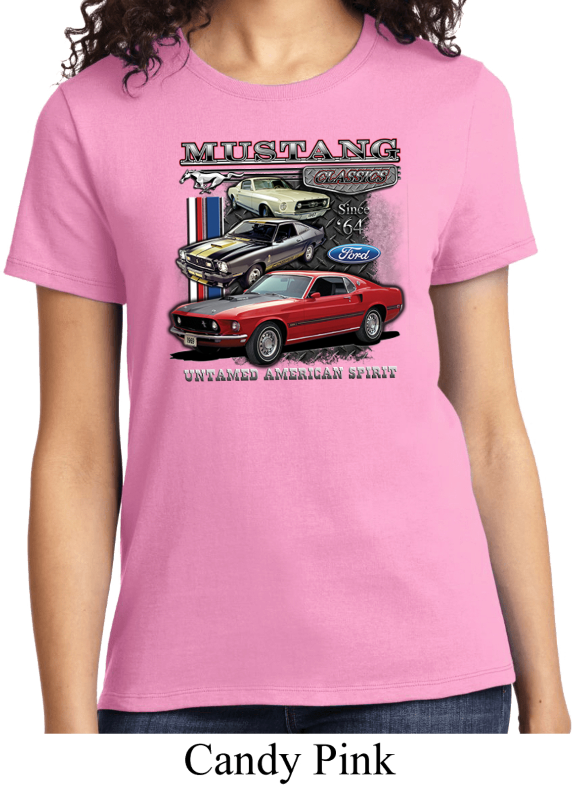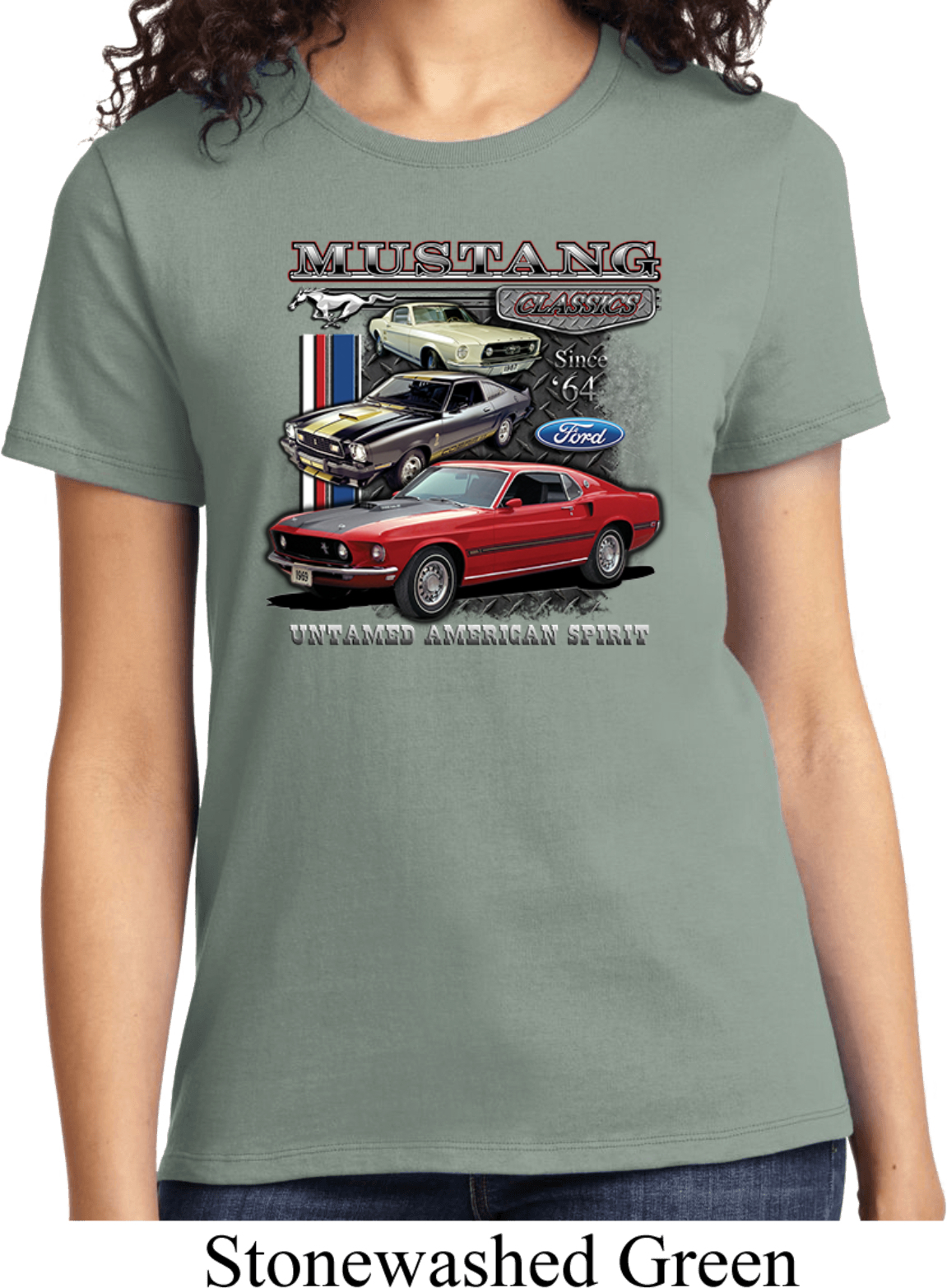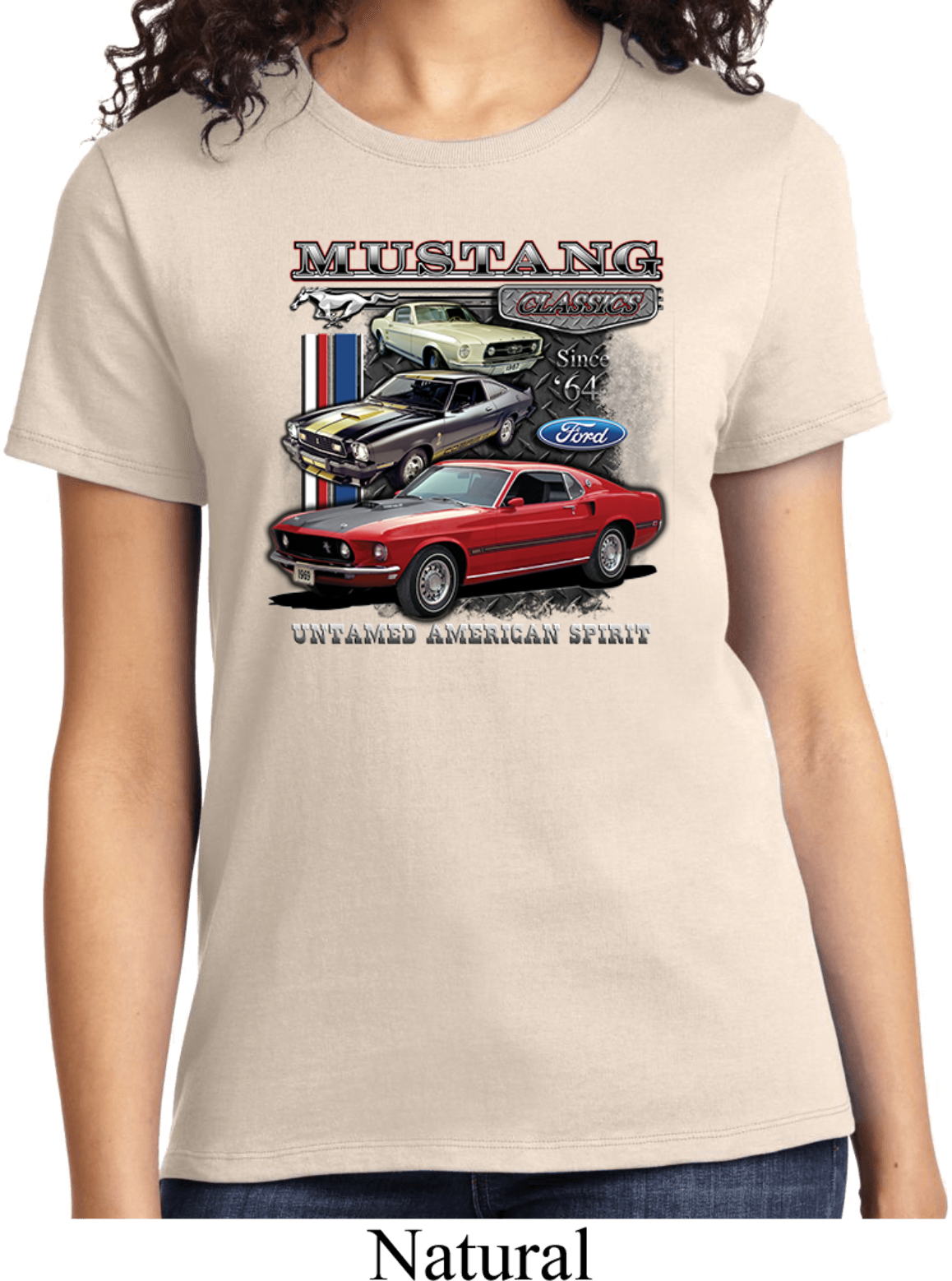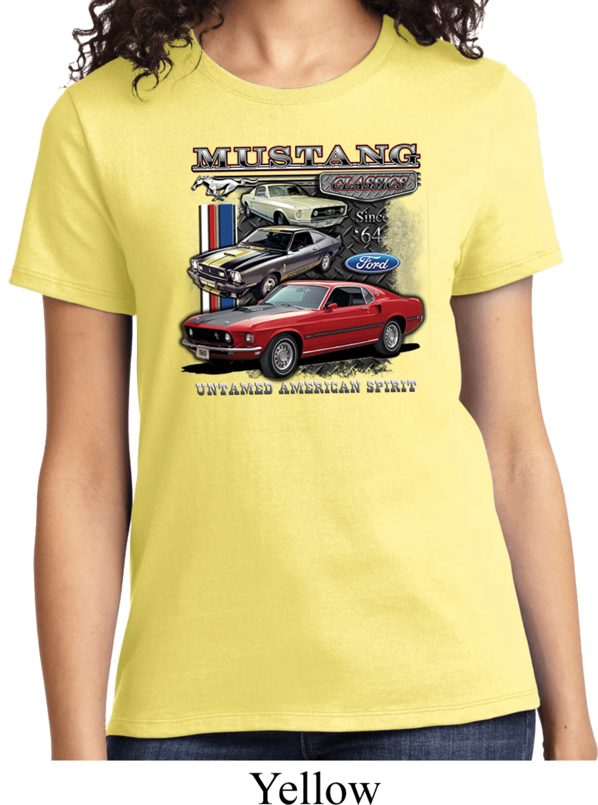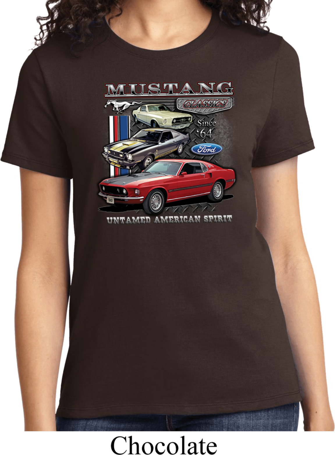| | Ladies Ford Tee Classic Mustangs Untamed T-shirtA ladies t-shirt featuring Ford Mustang Classics since 1964, Untamed American Spirit. Our ladies shirt is made of 100% cotton. (Athletic Heather is made with a blend of cotton/poly) Available in sizes Small through 4XL. Machine wash cold with like colors; dry low heat. ![]() |